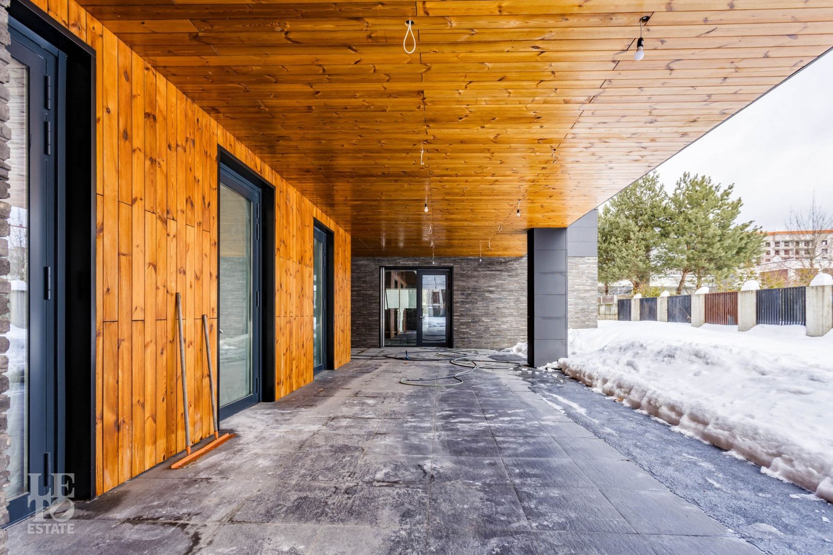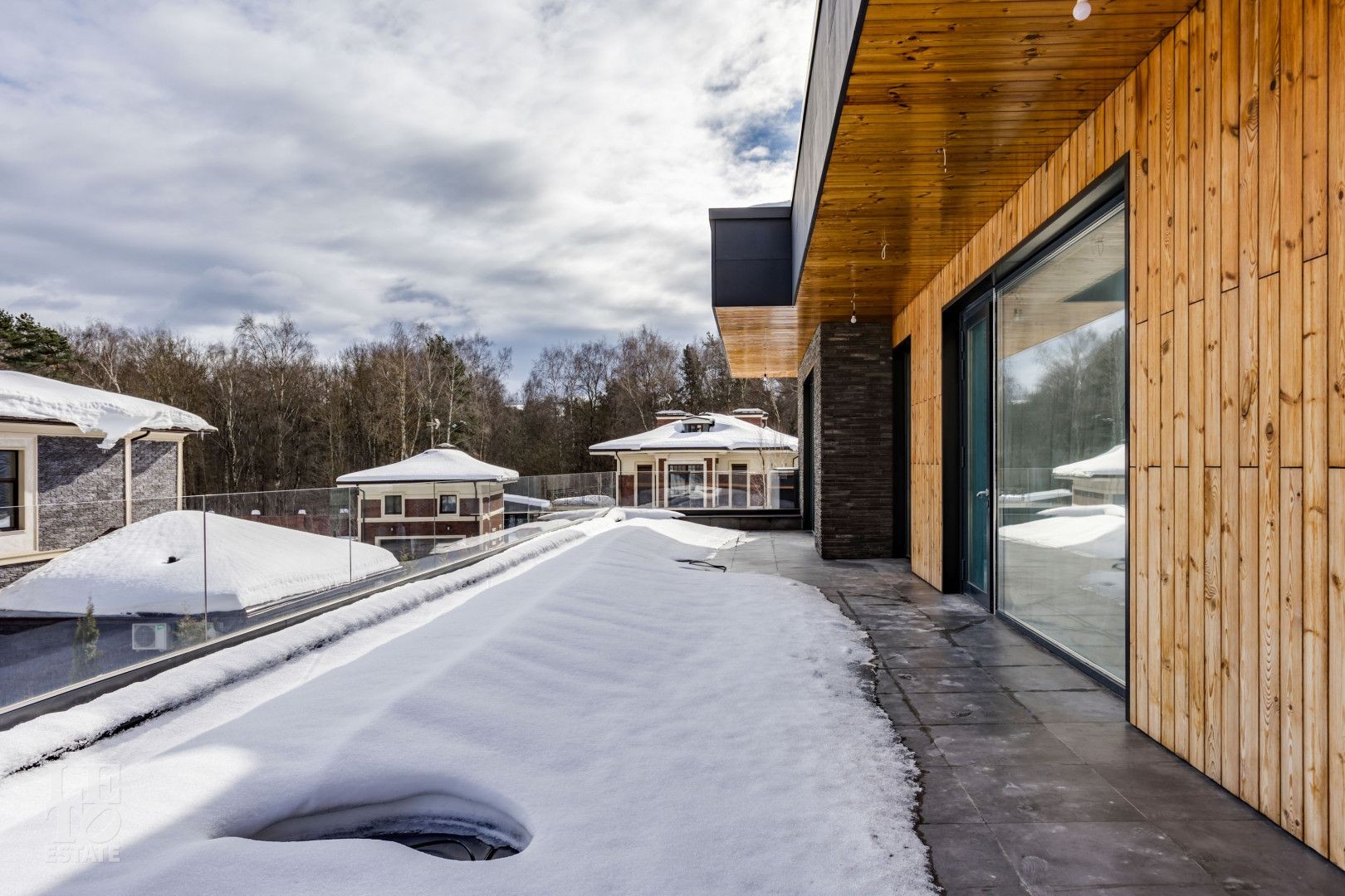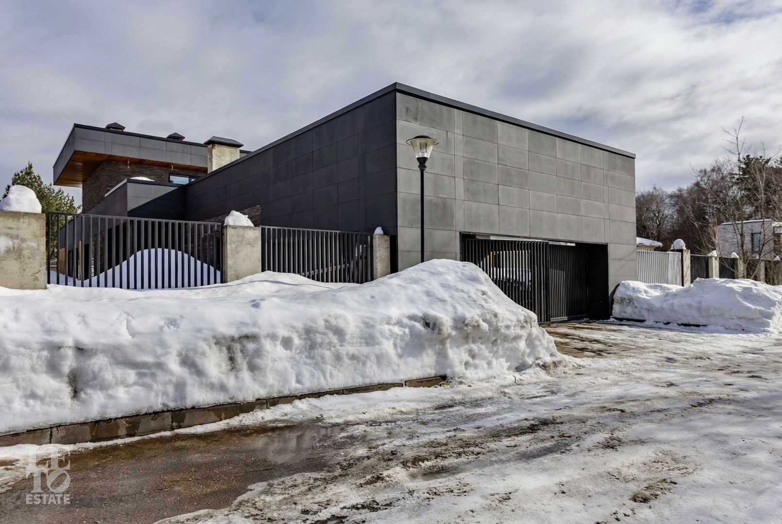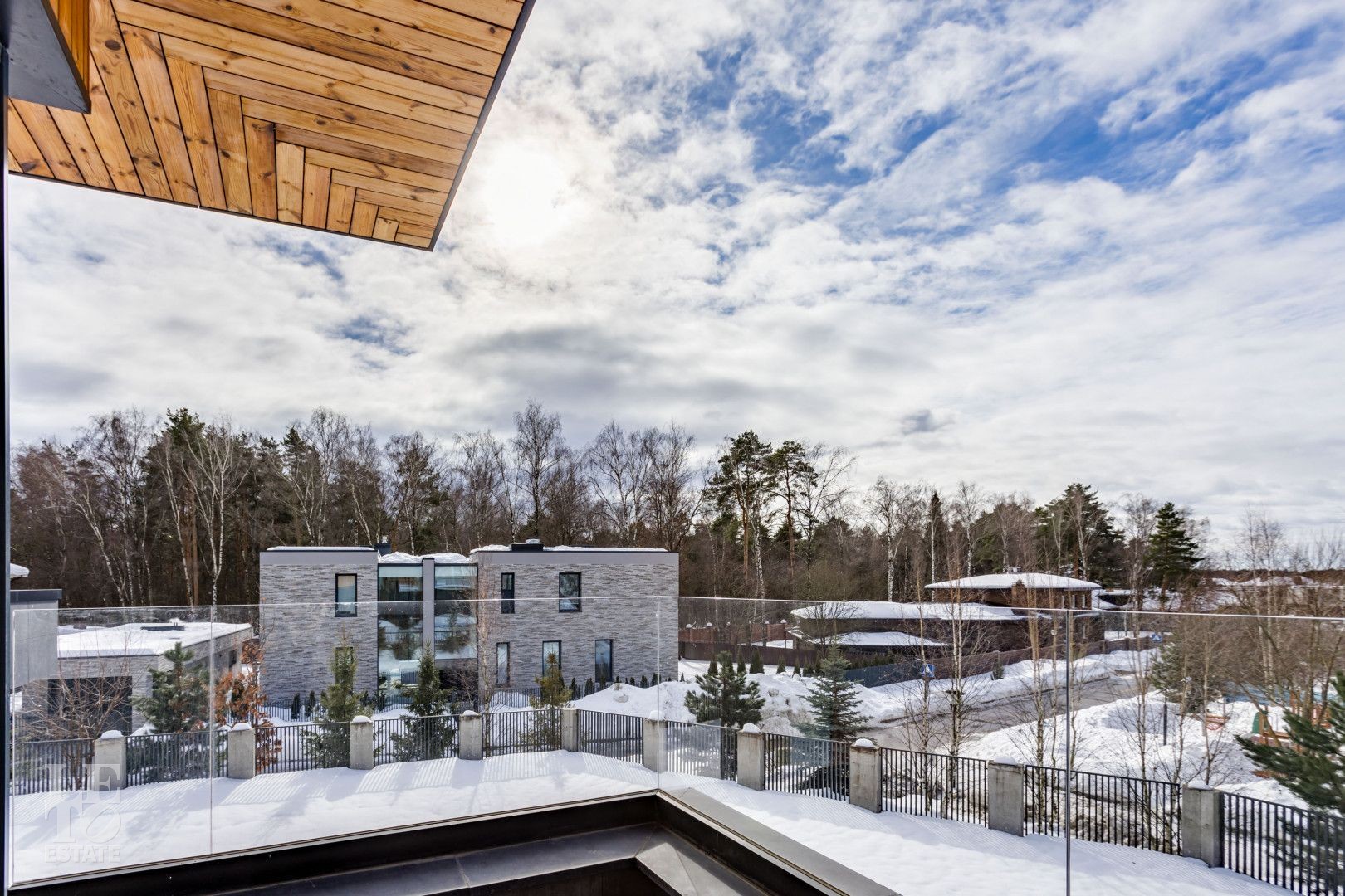 Просторный участок площадью 25 соток с хвойными и лиственными деревьями позволяет воплотить любые ландшафтные задумки. Современный многоуровневый фасад с отделкой из дерева, камня и темных панелей гармонично вписан в природное окружение. На придомовой территории уже выполнены дорожки и установлено декоративное ограждение с воротами. Развитая инфраструктура поселка и его близость к столице делают это место идеальным для постоянного проживания.