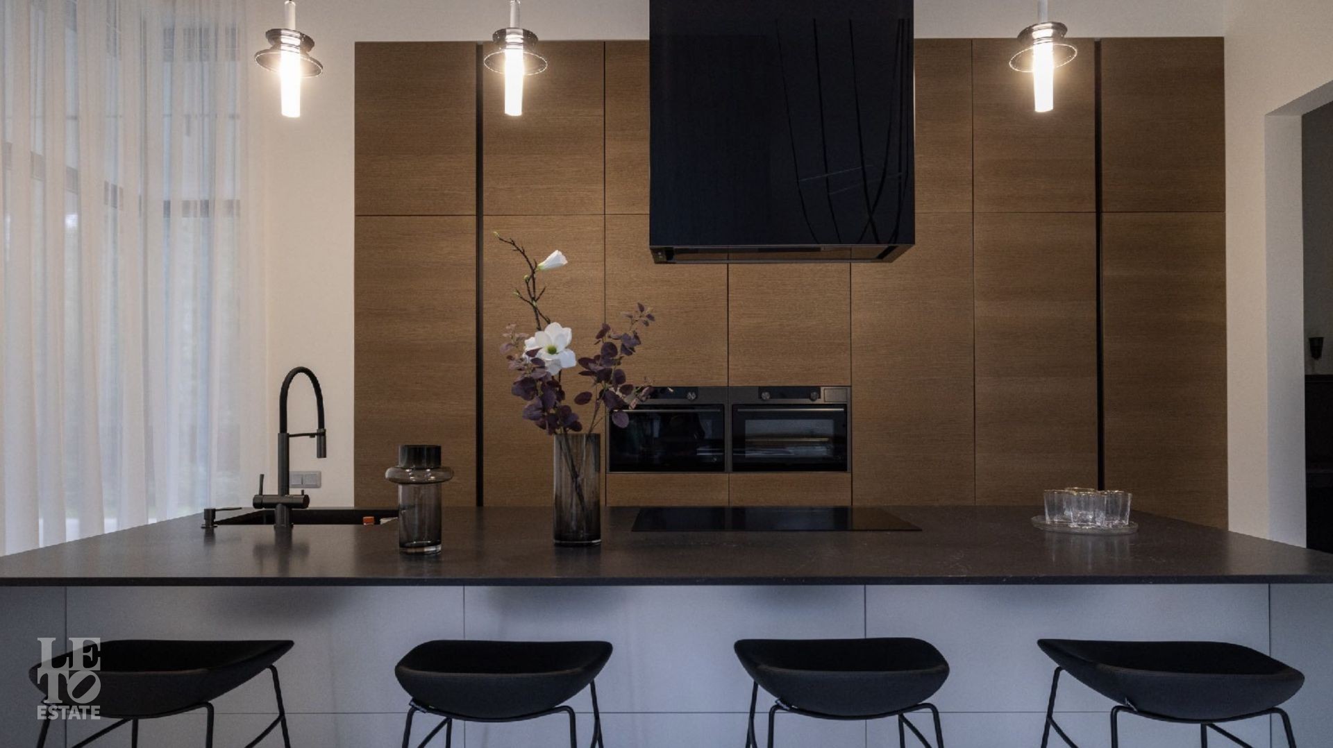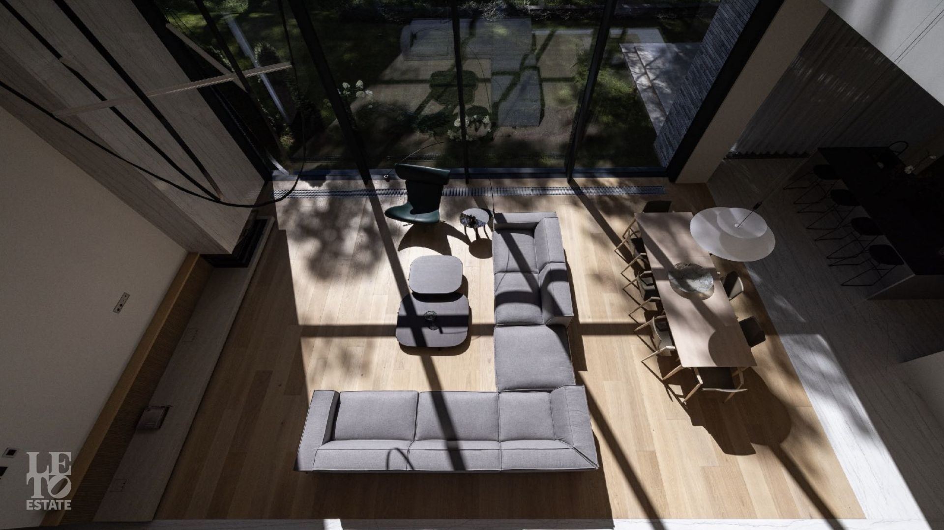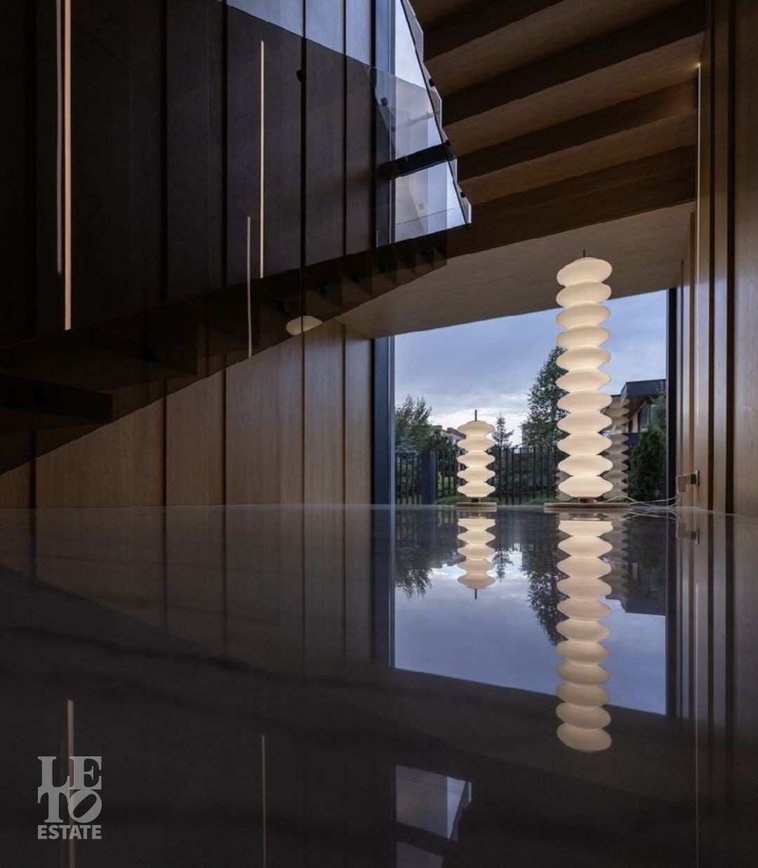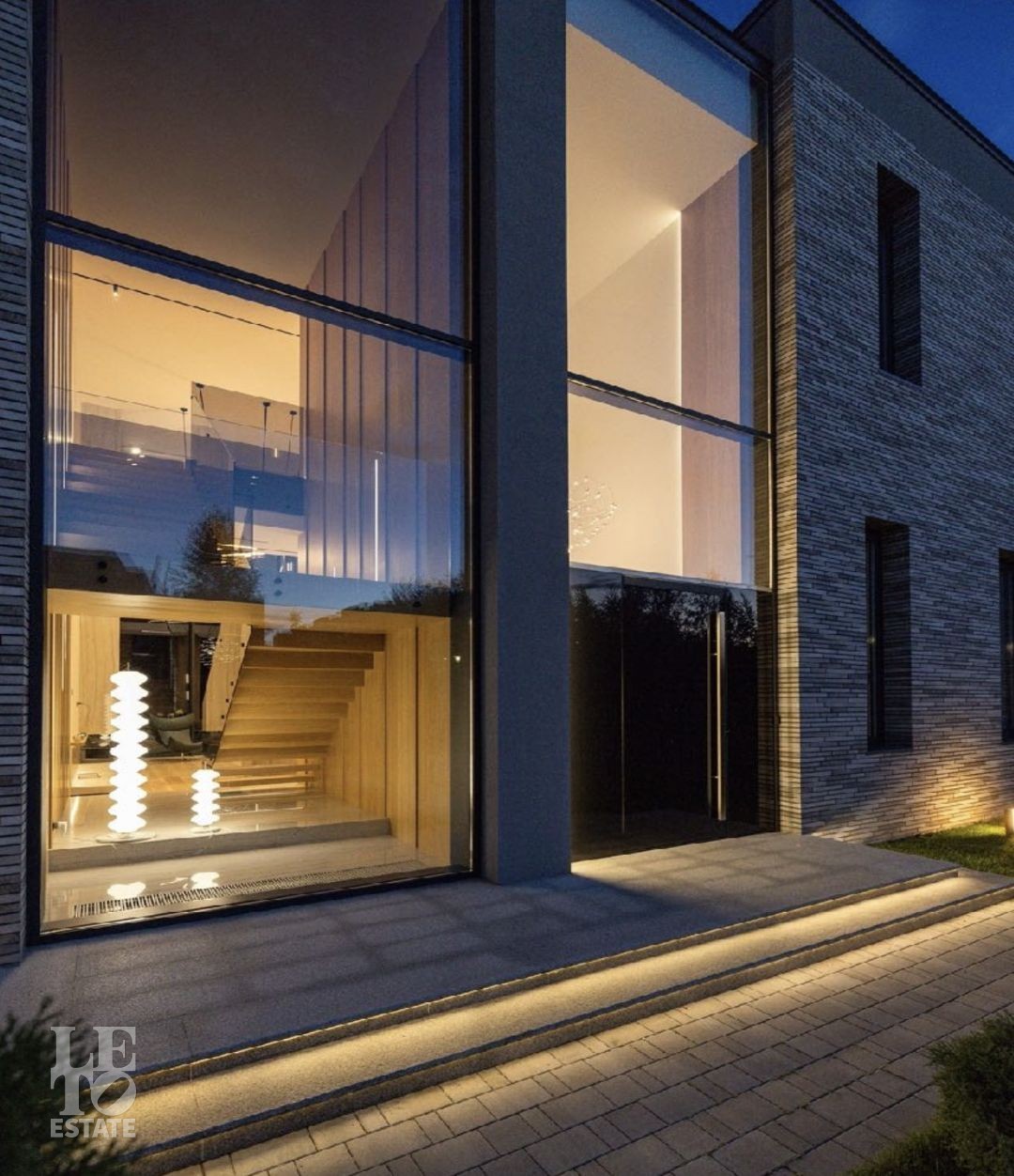 Дом 586 кв метров с панорамным остеклением и вторым светом располагается на участке 21 сотка, который примыкает к лесу.