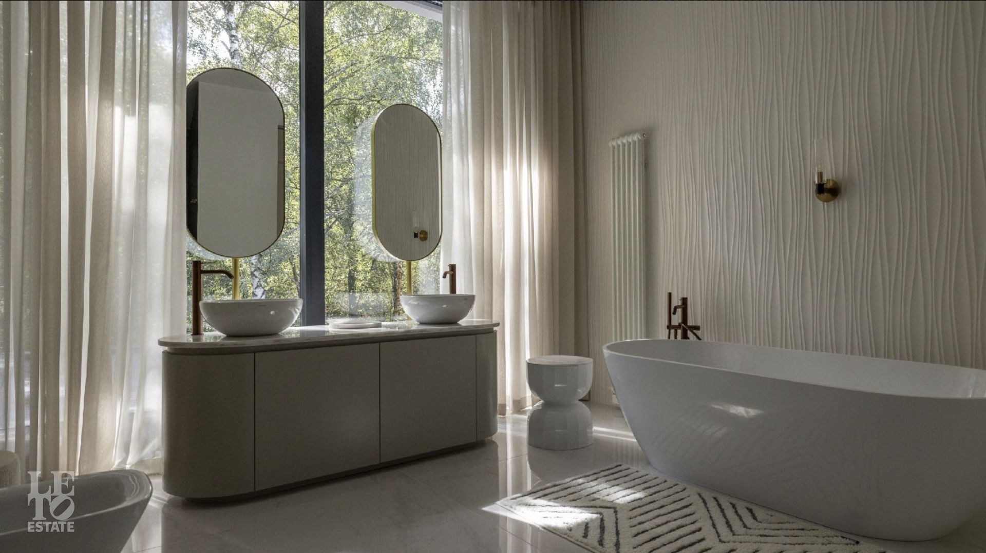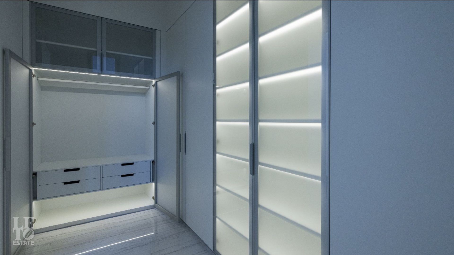 Второй этаж: мастер спальня с санузлом и гардеробной, спальня c cанузлом и гардеробной комнатой, две детские комнаты с санузлами и встроенными гардеробными.