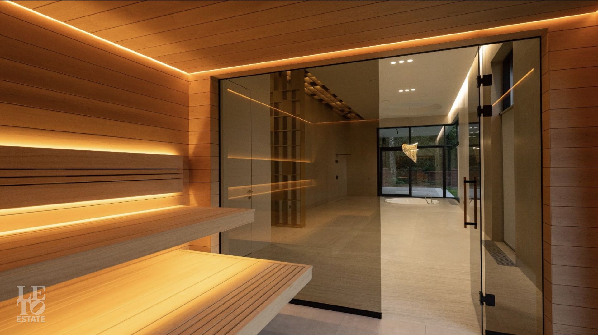 Первый этаж: прихожая с гардеробной комнатой, кухня столовая с выходом на патио, гостиная с камином и вторым светом, спальня с санузлом и гардеробной, СПА-зона с сауной, гостевой санузел, постирочная;