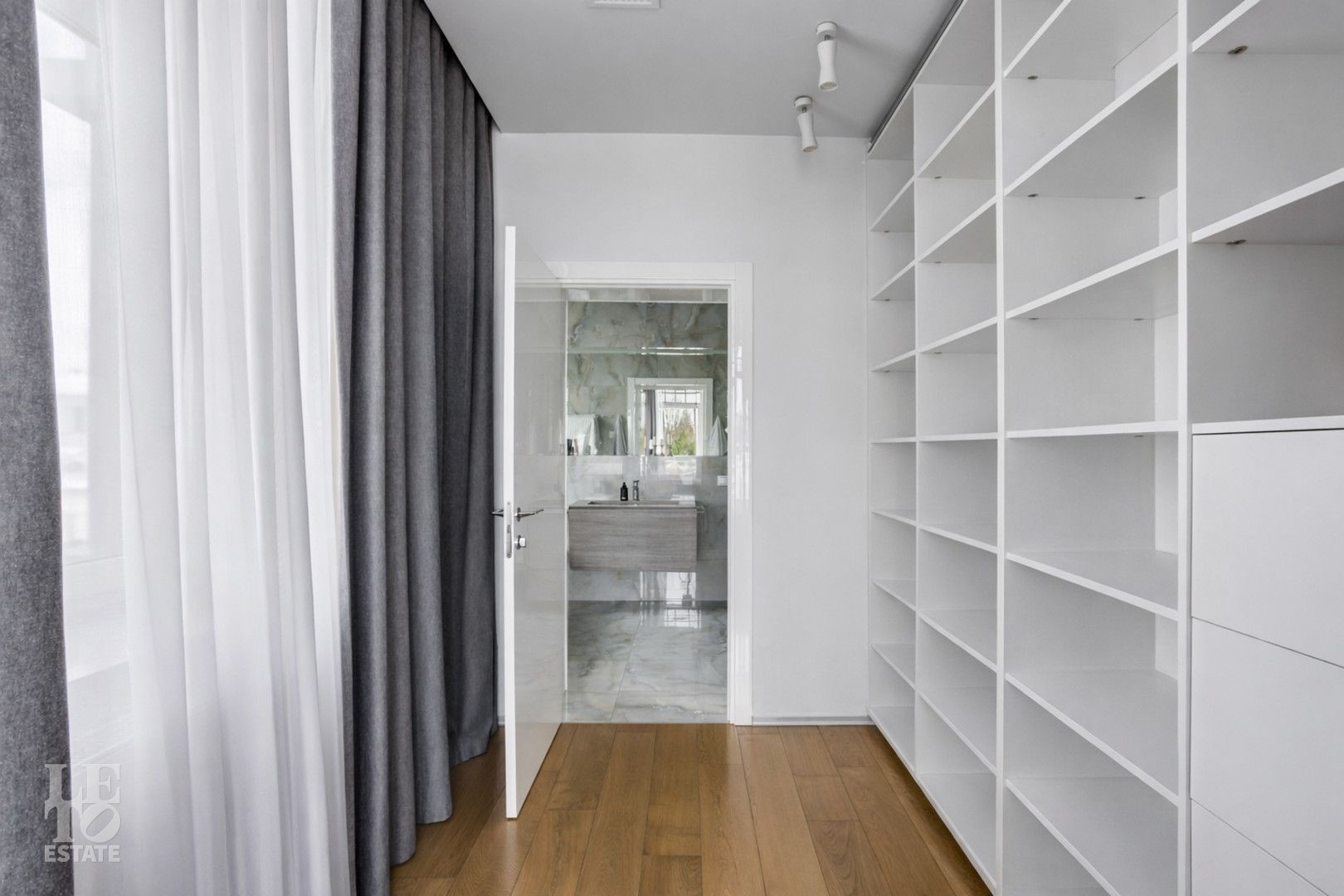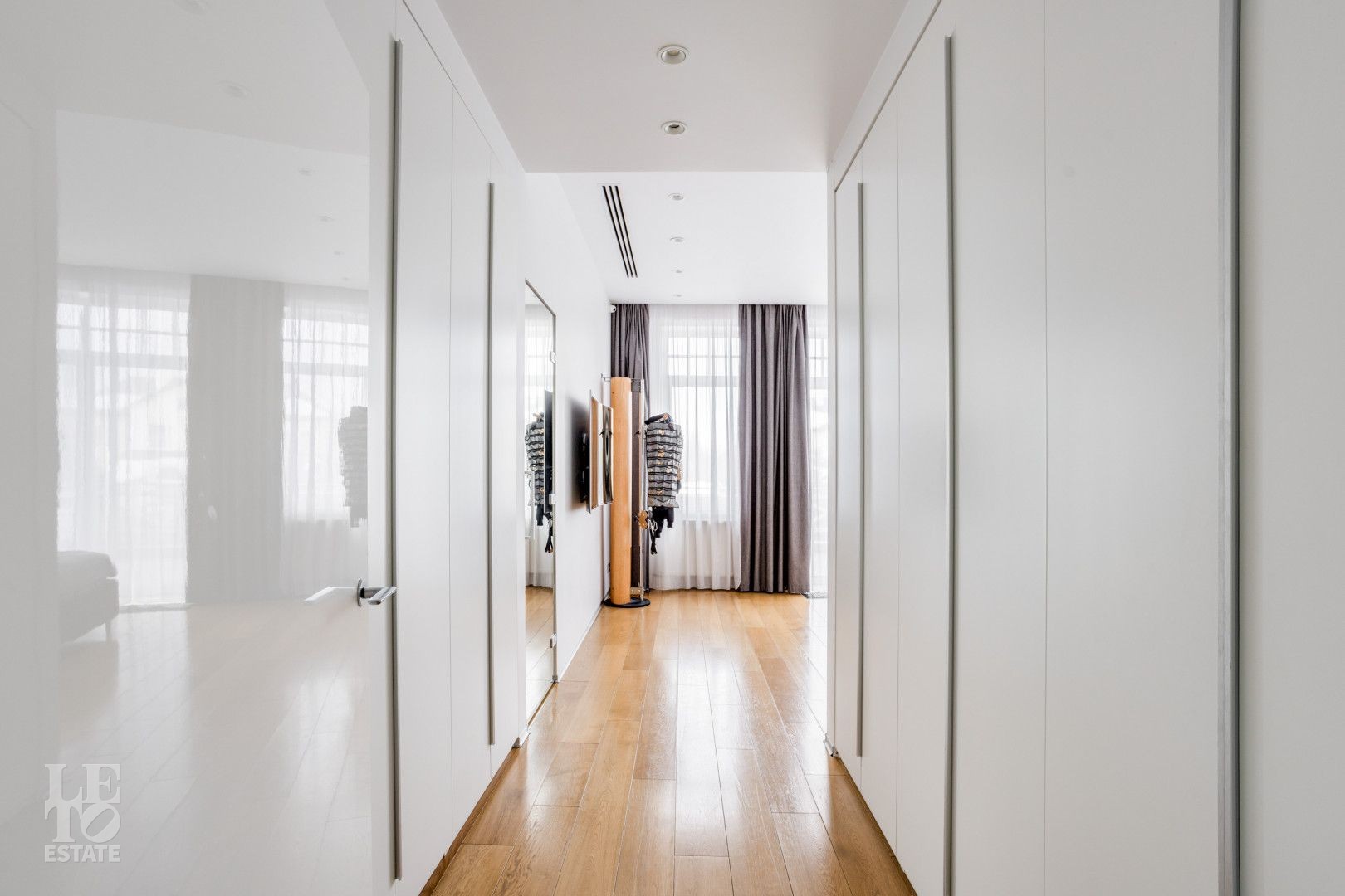 Второй этаж: четыре спальни с гардеробными и санузлами.