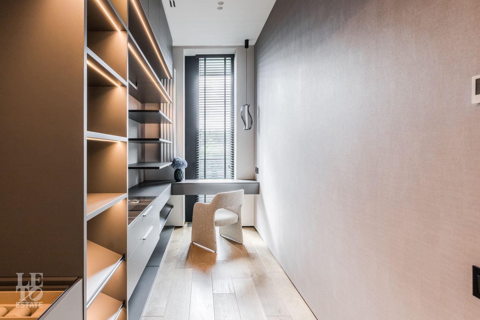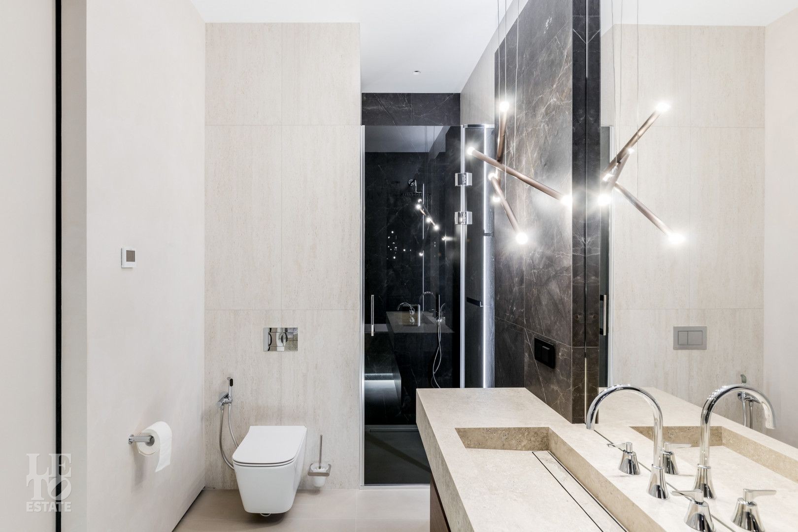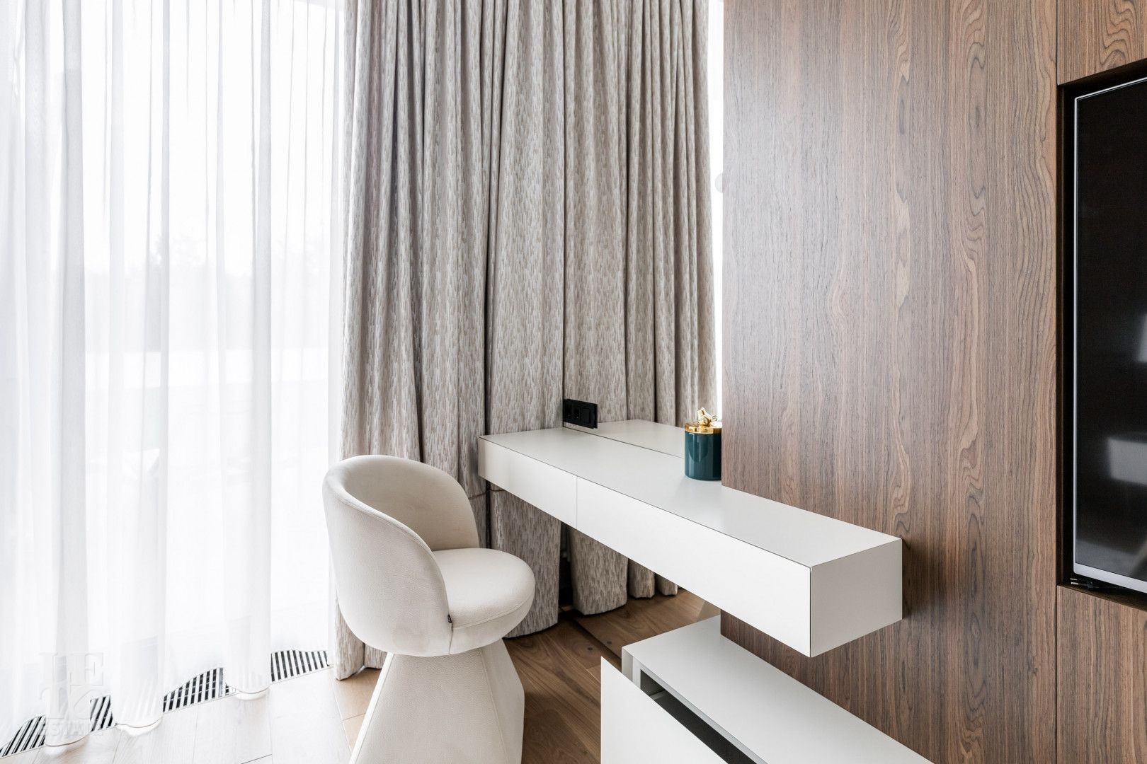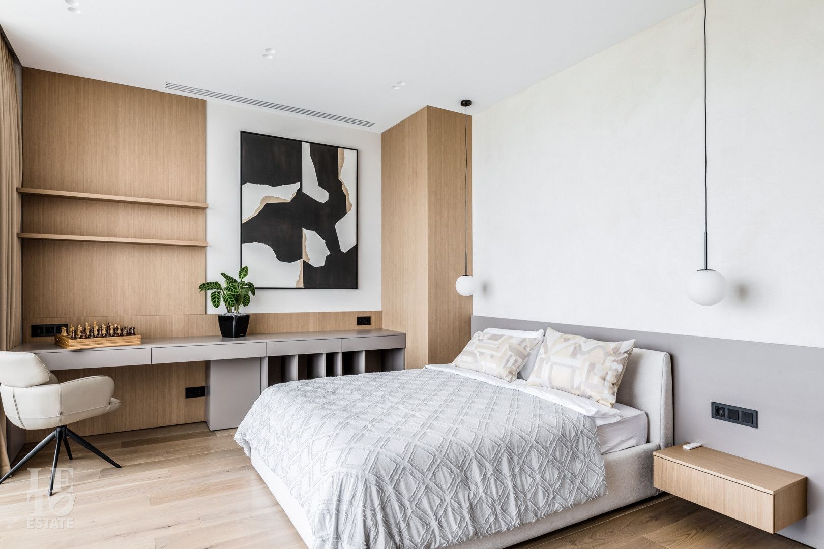 Современный интерьер выполнен в светлых тонах и создает атмосферу уюта и спокойствия. Отделка выполнена из премиальных материалов: итальянская плитка ITALON LAMINAM, Imola Infinity Brazil, Ariostea Marm, Mirage Ginger и др. На стенах использована декоративная штукатурка; напольное покрытие — паркет из дубовой доски; текстиль — из Италии.