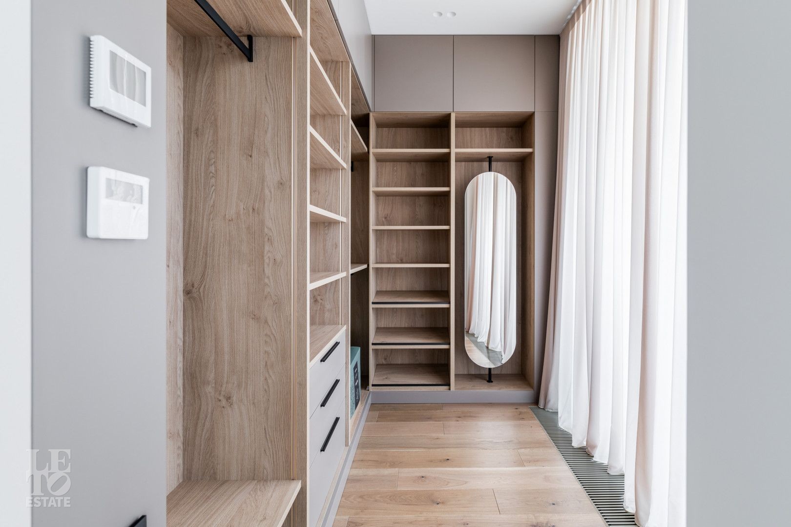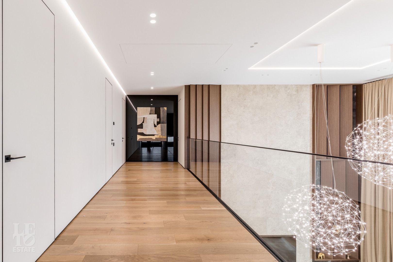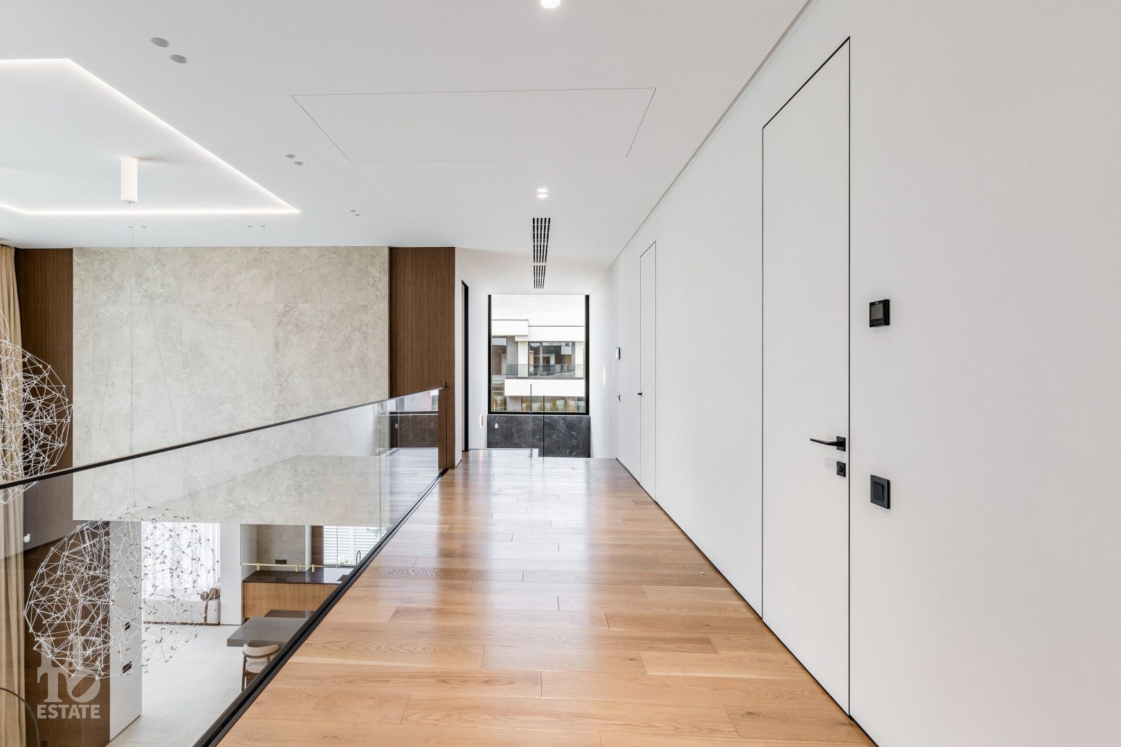 Внутреннее пространство оформлено с вниманием к деталям, обеспечивая максимальное удобство и стиль. На кухне установлена бытовая техника ASKO; сантехника — Ramon Soler (Испания); установлены двери скрытого монтажа; ванны итальянского бренда Salini; кровати — Costa Bella.