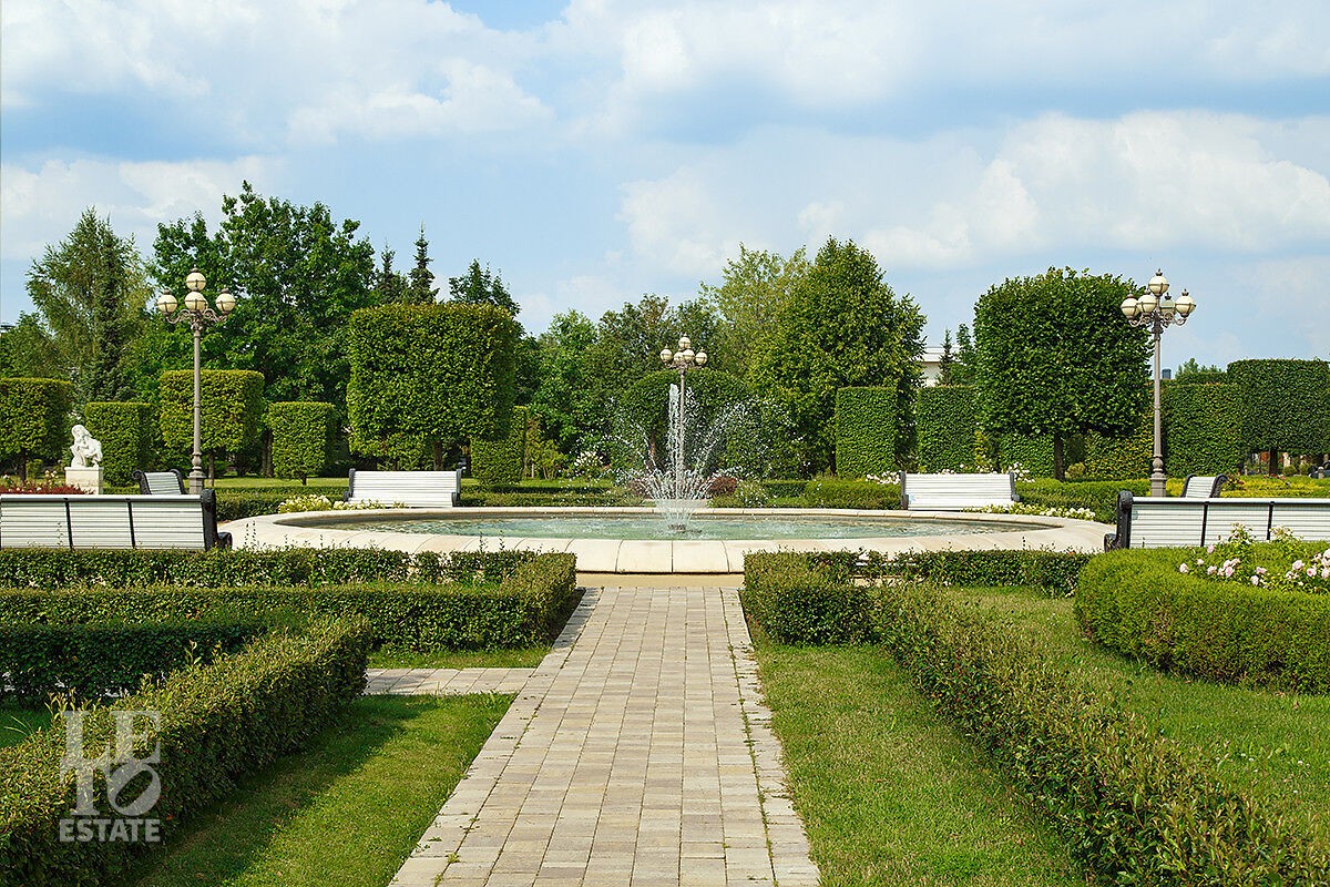 Поселок разделен на зоны: тихую и оживленную. В приватной части — минимум общественных территорий и максимум уединения. Парковая зона с павильонами, беседками и фонтанами соединяется с сосновым бором, простирающимся до Николиной Горы. По всей территории проложены прогулочные тропинки и велодорожки. В оживленной части магазины, ресторанный комплекс, пляж, спортивная и детская площадки, теннисные корты.