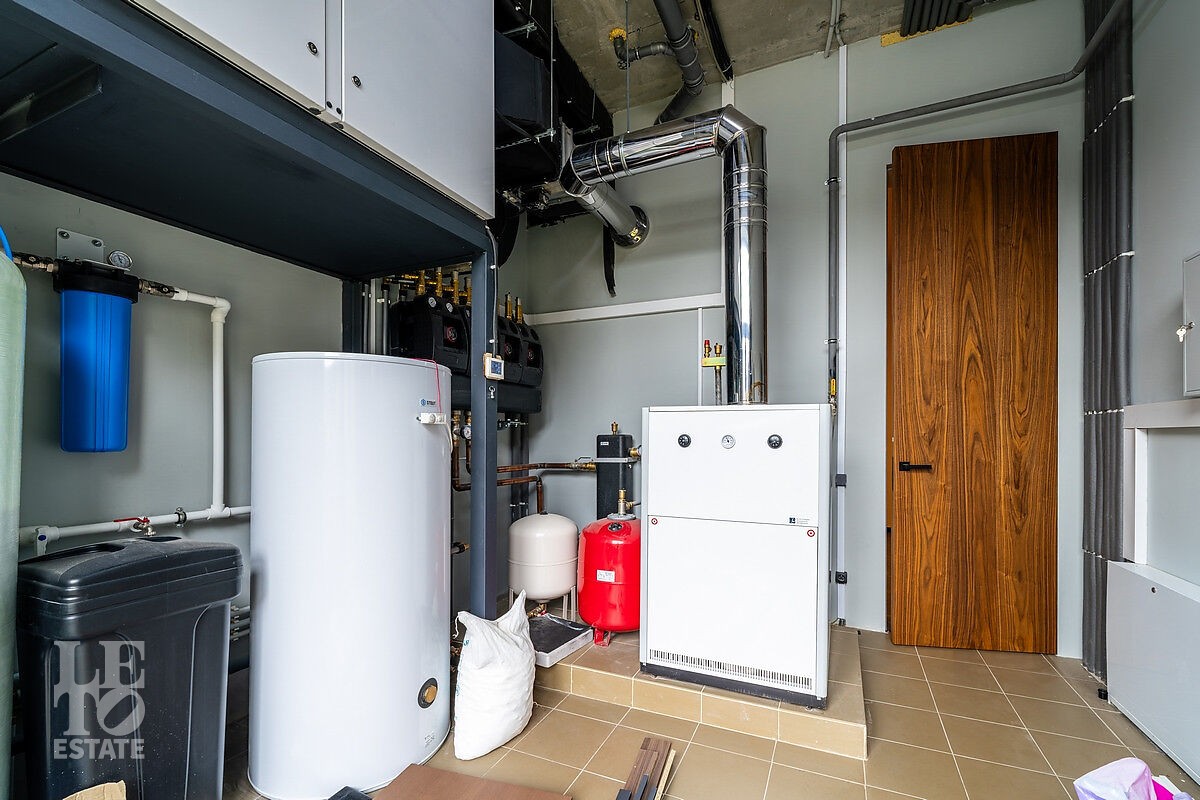 В дом заведены и разведены все центральные коммуникации. Сделан теплый пол в санузлах и зоне прихожей, канальное кондиционирование. Оборудована котельная, установлено дорогостоящее оборудование.