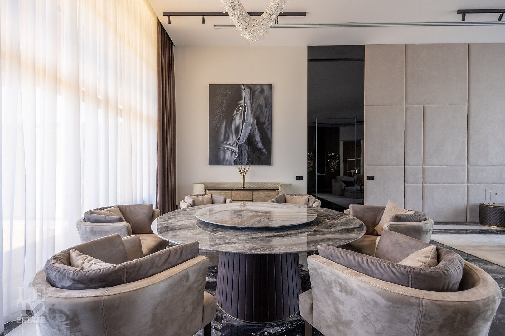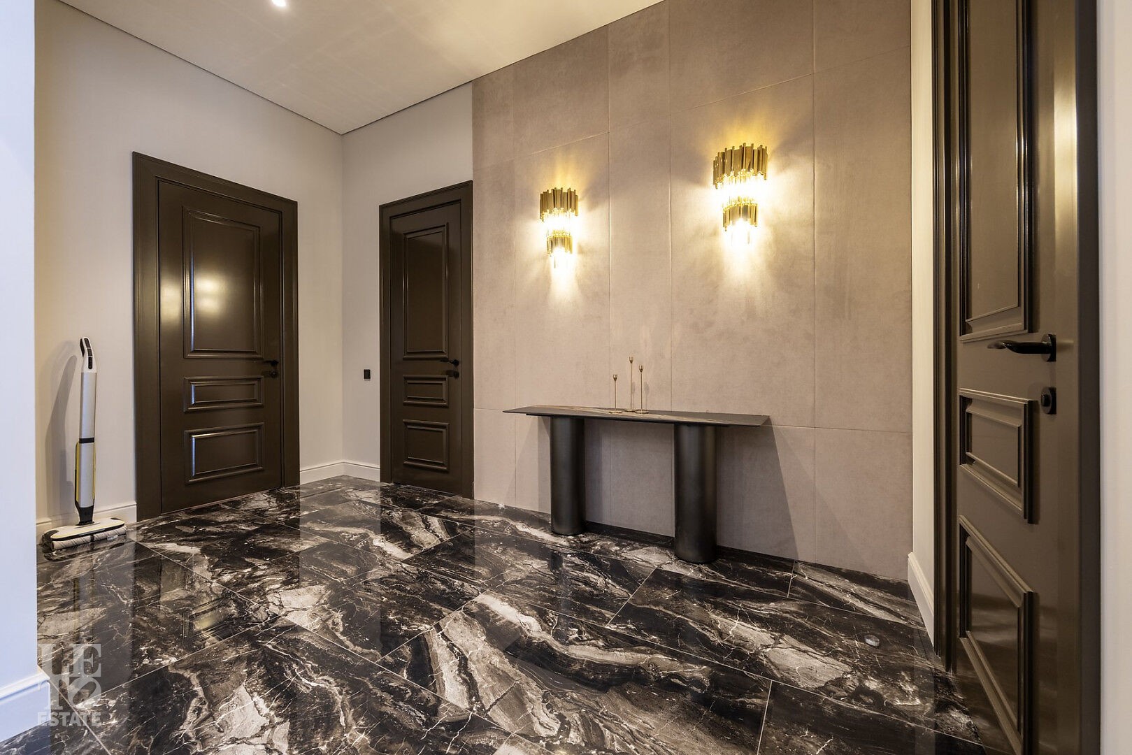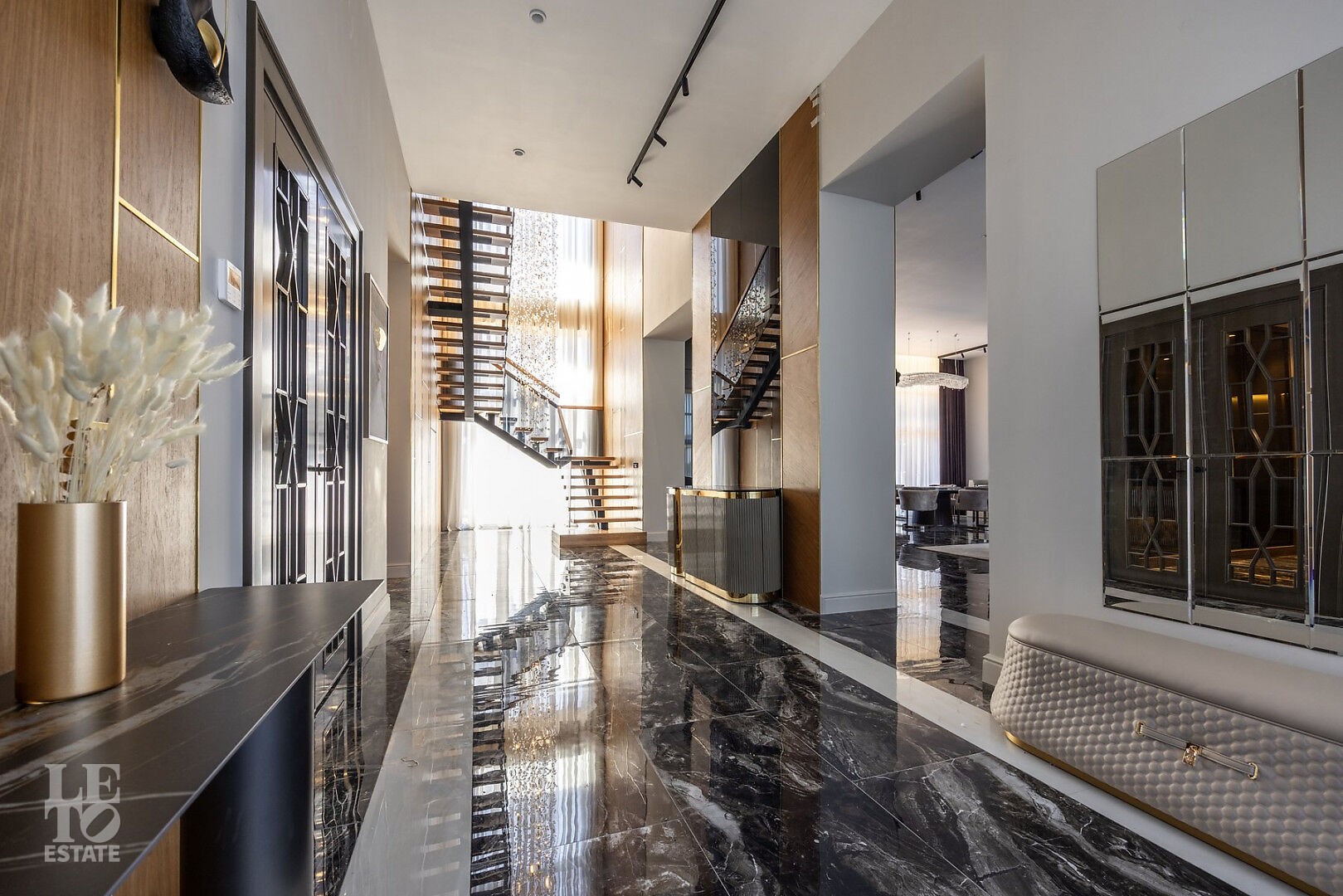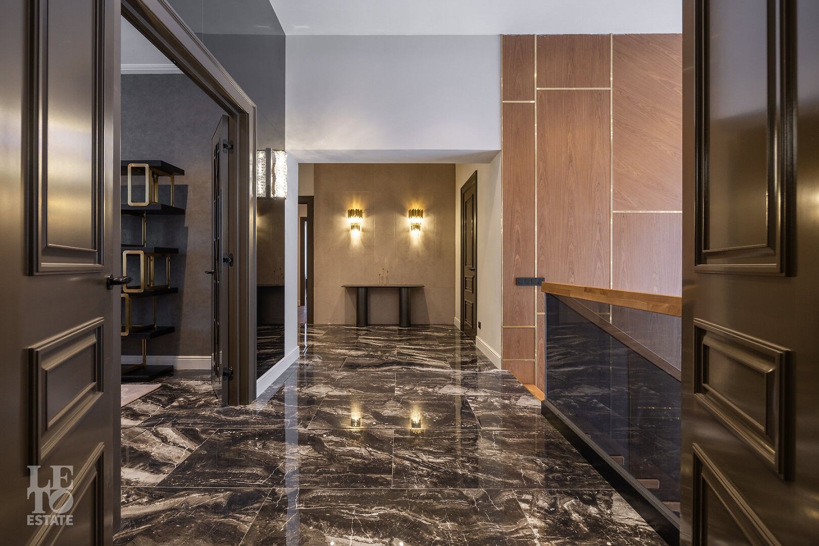 Отделка выполнена по индивидуальному проекту. Интерьер продуман до мелочей. Эксклюзивные дизайнерские решения придают уникальность внутреннему пространству дома.