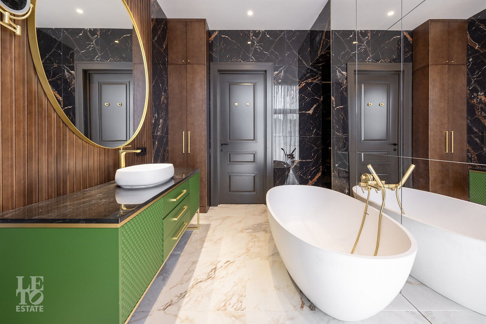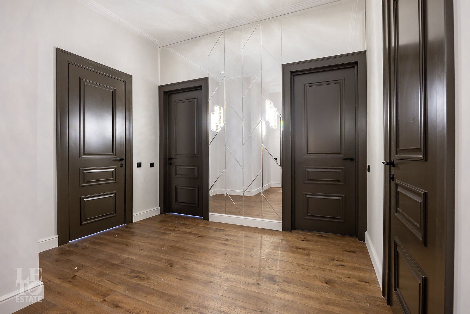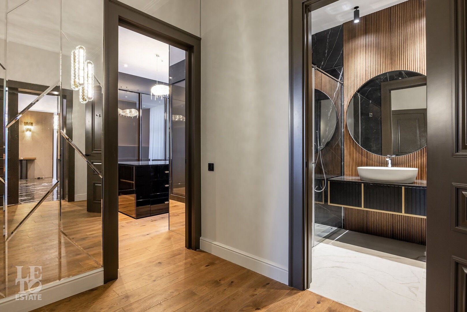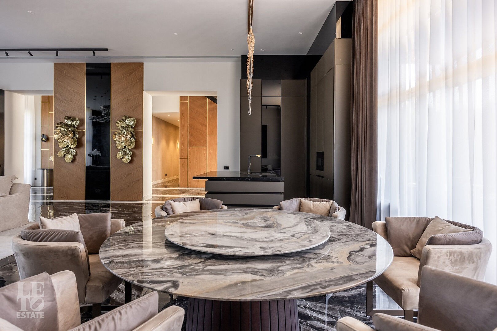 Отделка выполнена по индивидуальному проекту. Интерьер продуман до мелочей. Эксклюзивные дизайнерские решения придают уникальность внутреннему пространству дома.