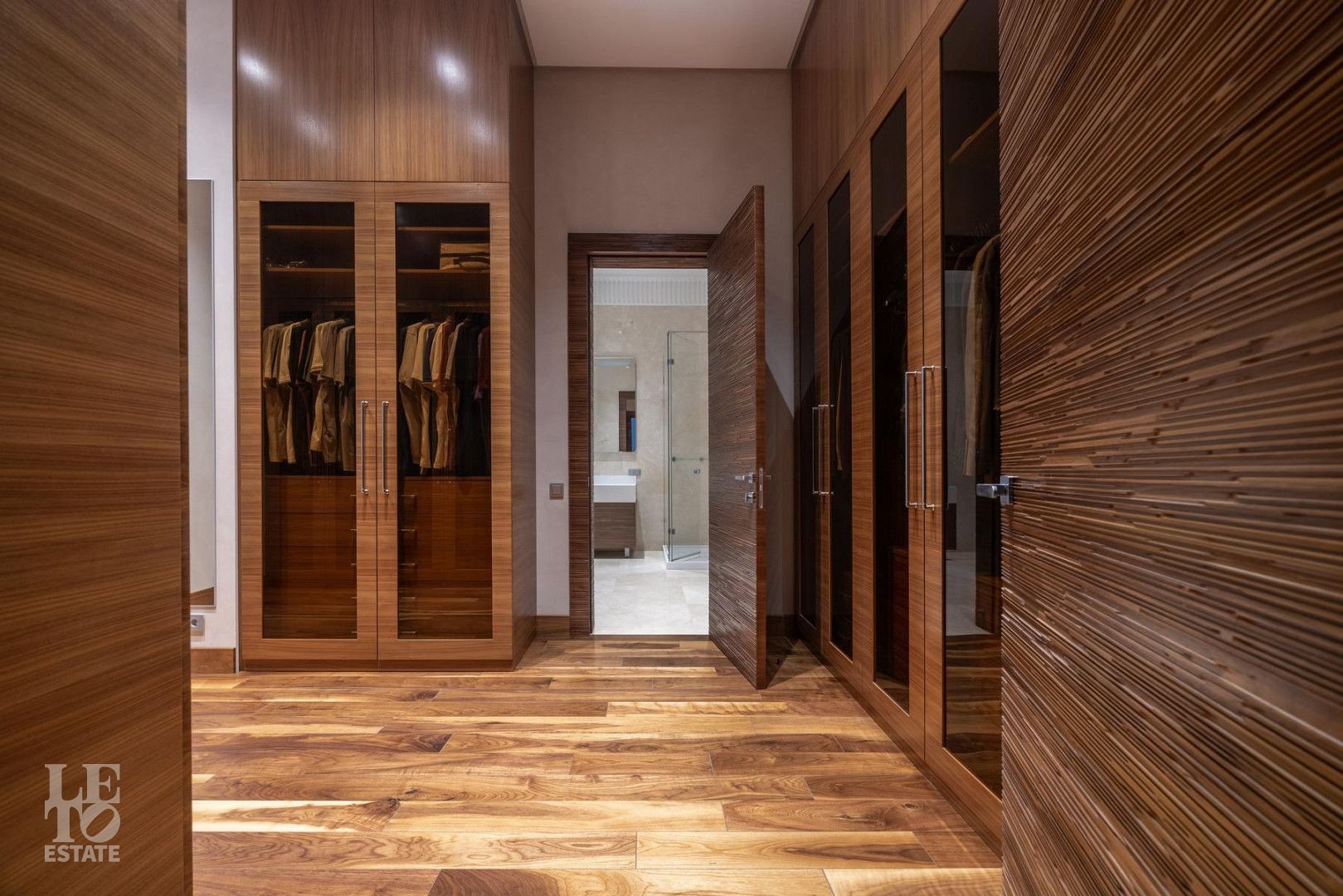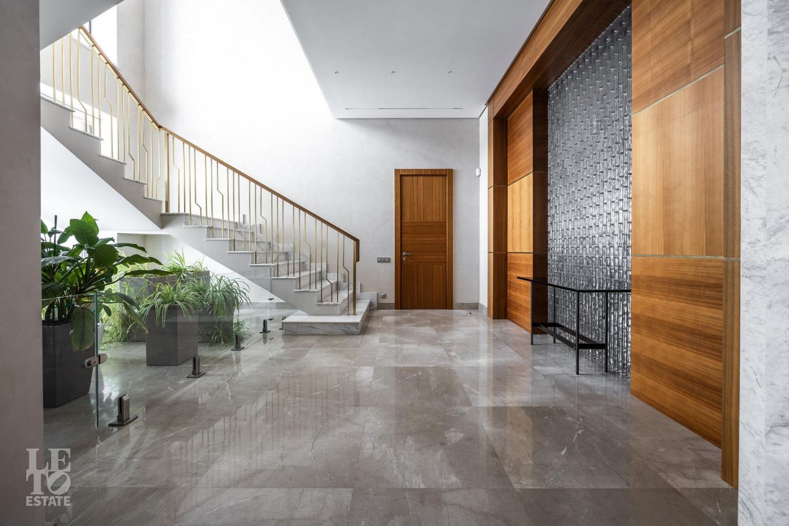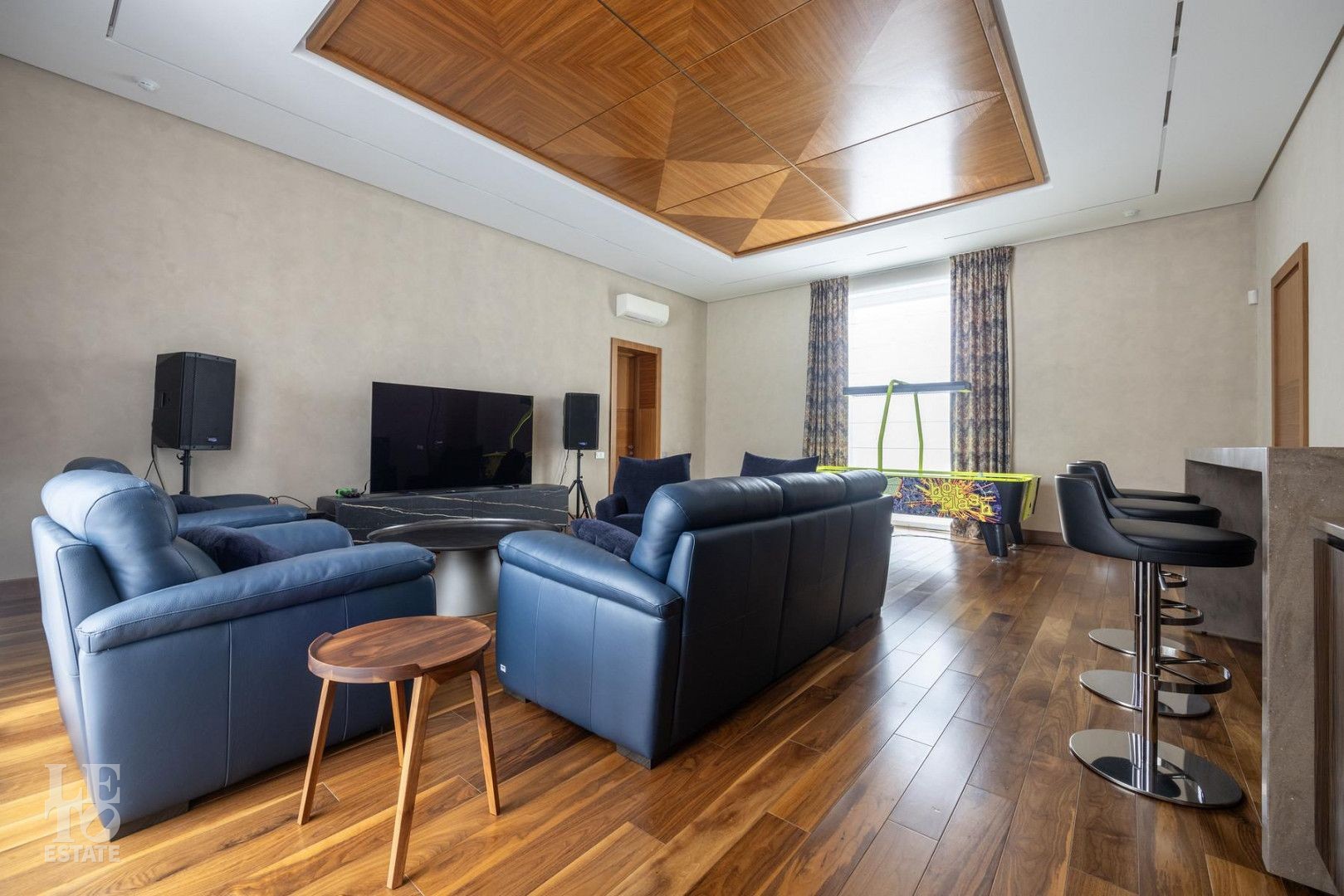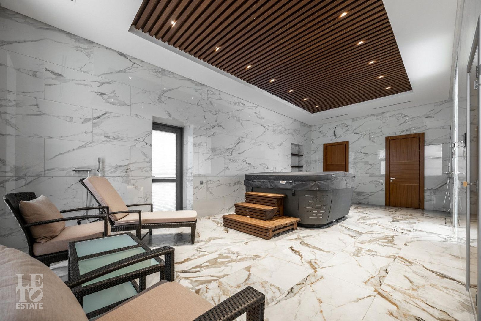 В доме выполнена отделка по индивидуальному проекту, в современном стиле с использованием дорогих, качественных материалов. Благодаря высоким потолкам и большим окнам в пол пространство наполнено воздухом и светом. Эксклюзивные дизайнерские решения придают уникальность внутреннему пространству дома. Это изысканный особняк, где роскошь царствует в каждой детали, а максимальный комфорт становится вашим постоянным спутником в этом великолепном доме.