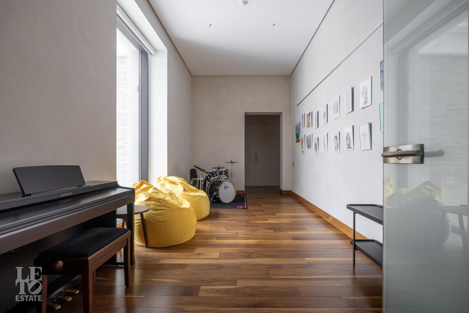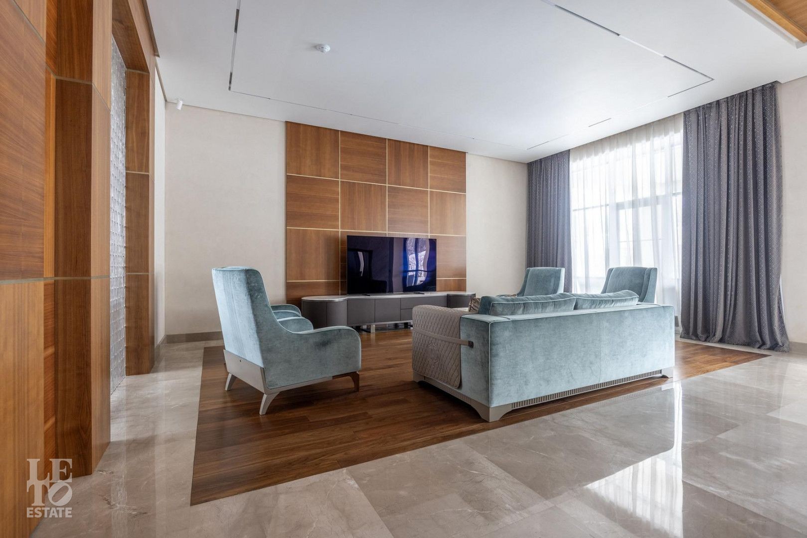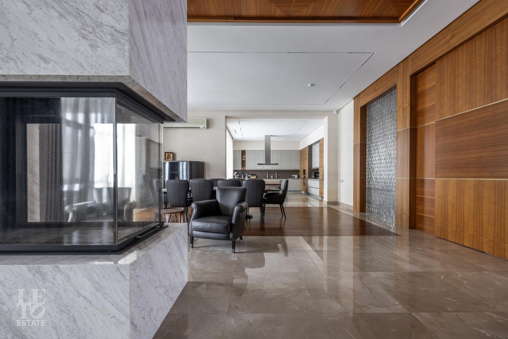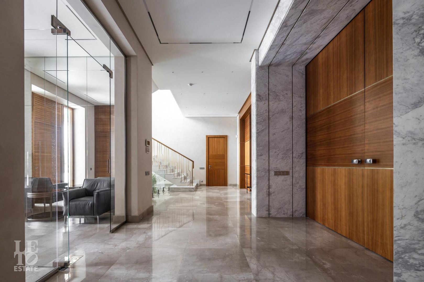В доме выполнена отделка по индивидуальному проекту, в современном стиле с использованием дорогих, качественных материалов. Благодаря высоким потолкам и большим окнам в пол пространство наполнено воздухом и светом. Эксклюзивные дизайнерские решения придают уникальность внутреннему пространству дома. Это изысканный особняк, где роскошь царствует в каждой детали, а максимальный комфорт становится вашим постоянным спутником в этом великолепном доме.