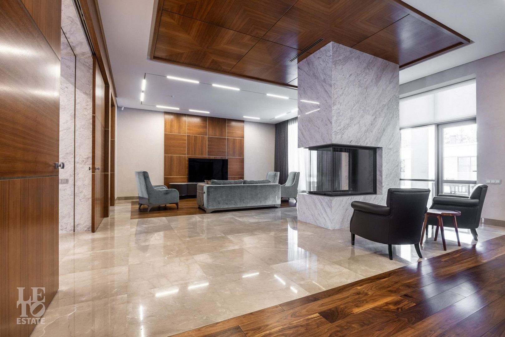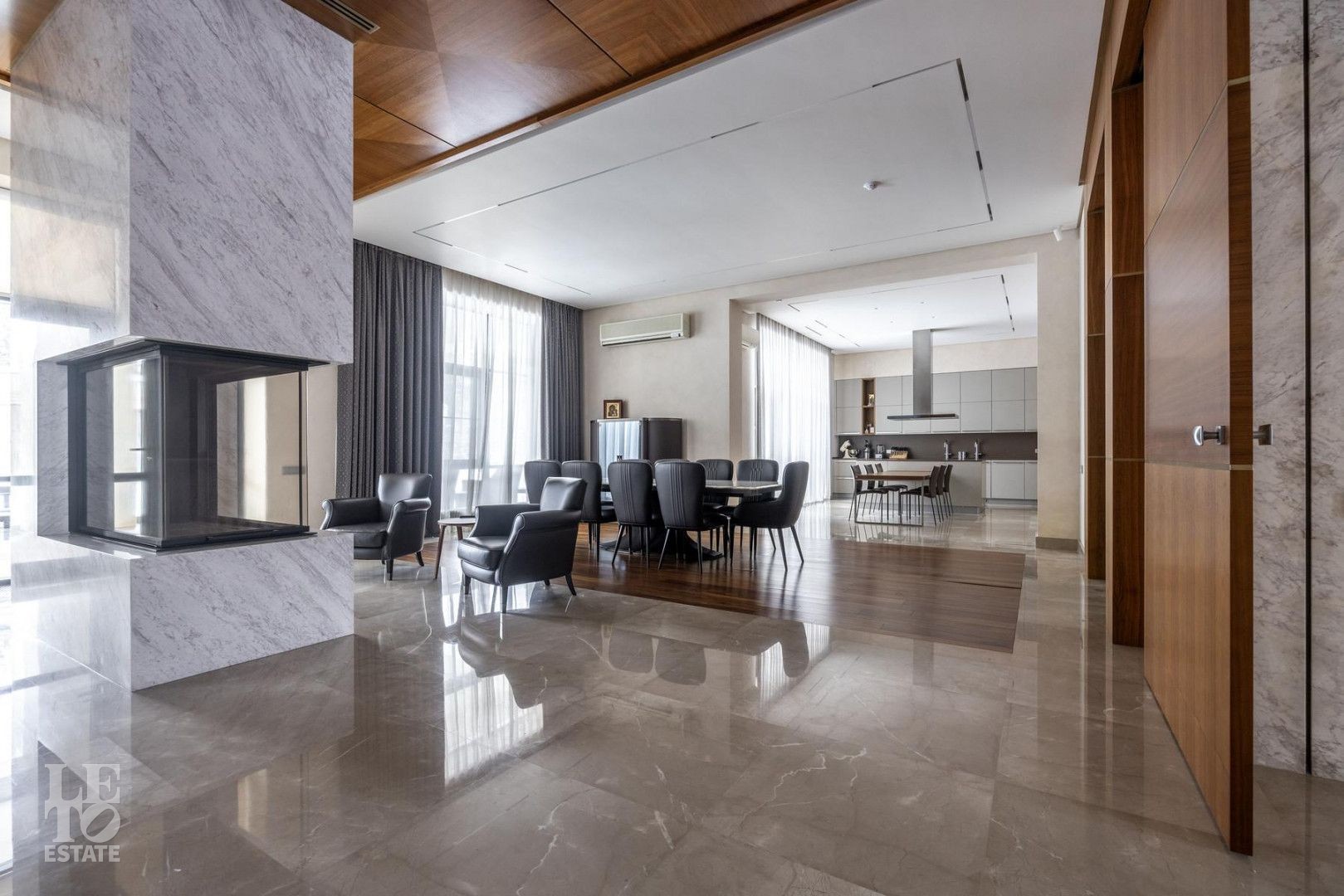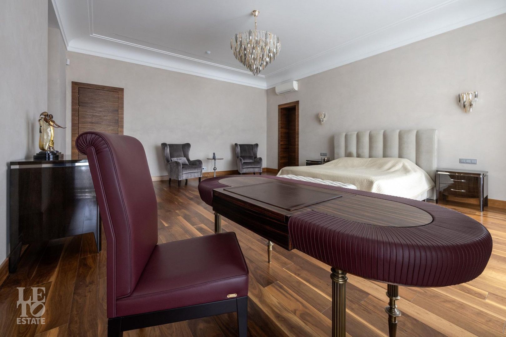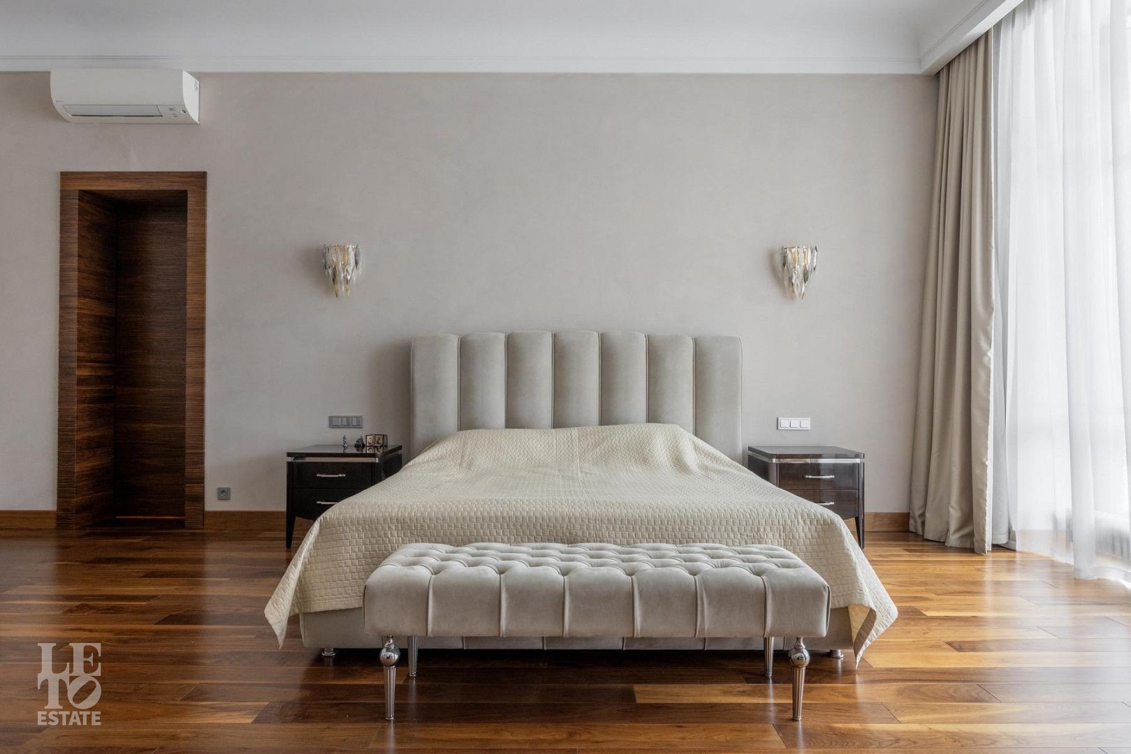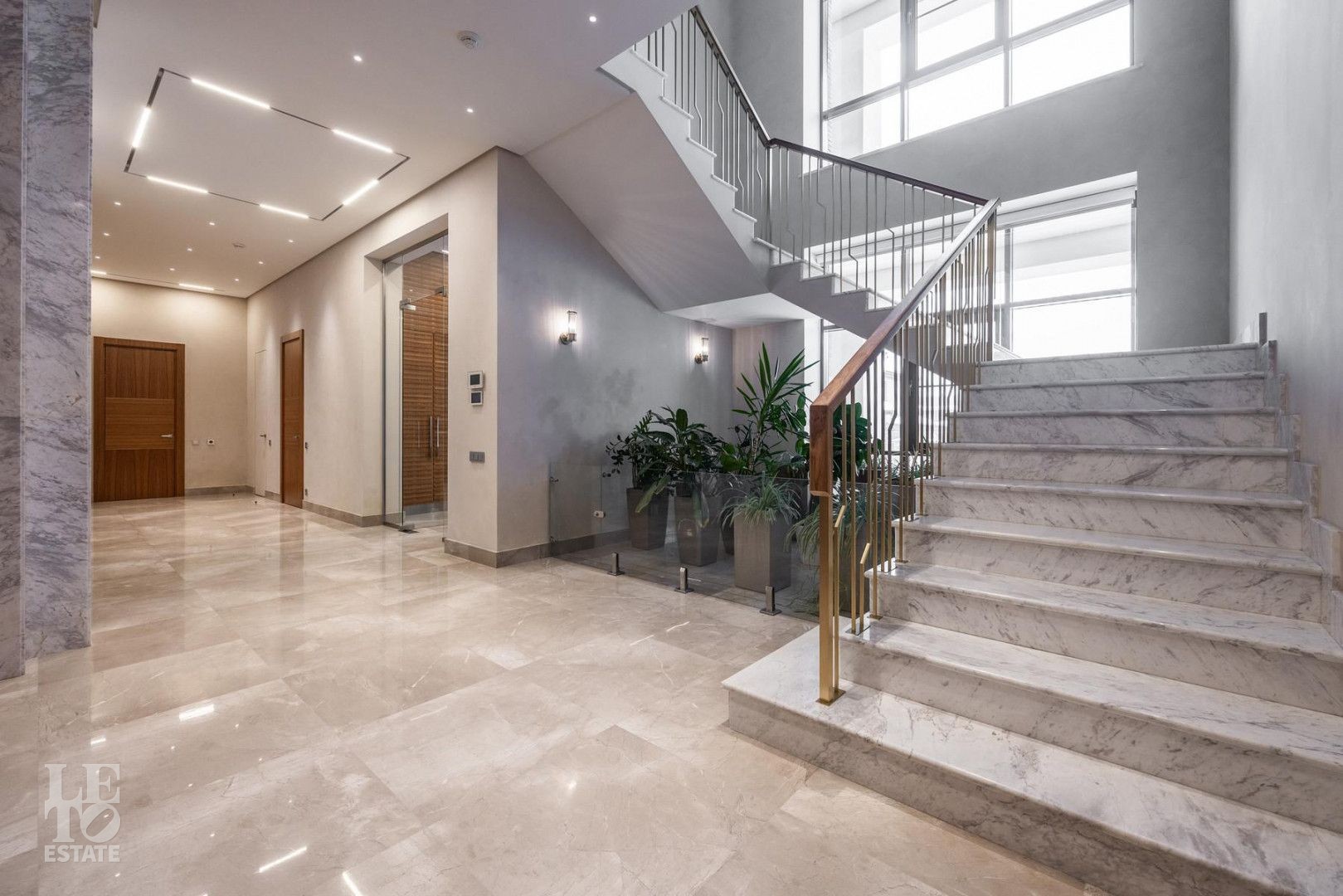 В доме выполнена отделка по индивидуальному проекту, в современном стиле с использованием дорогих, качественных материалов. Благодаря высоким потолкам и большим окнам в пол пространство наполнено воздухом и светом. Эксклюзивные дизайнерские решения придают уникальность внутреннему пространству дома. Это изысканный особняк, где роскошь царствует в каждой детали, а максимальный комфорт становится вашим постоянным спутником в этом великолепном доме.