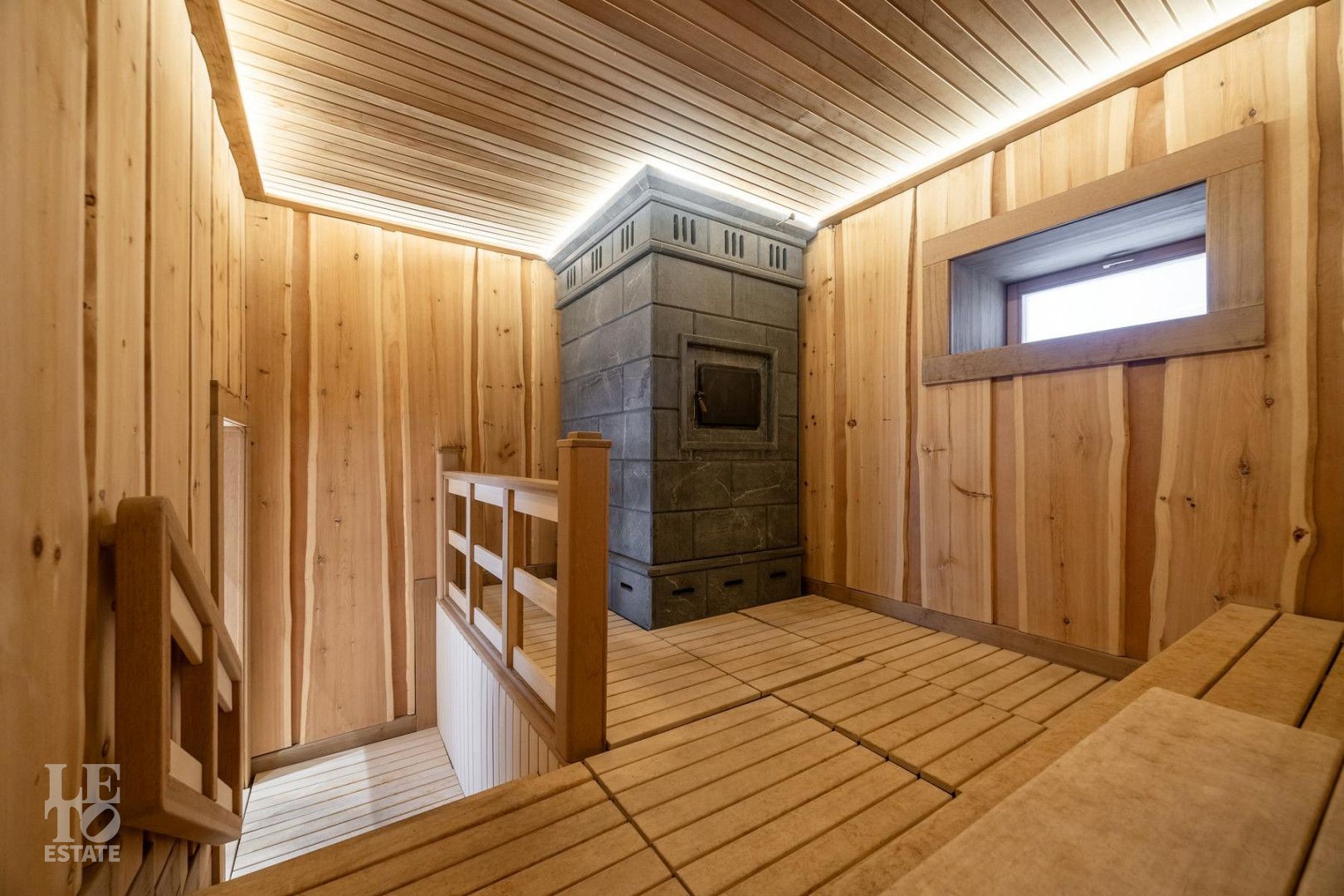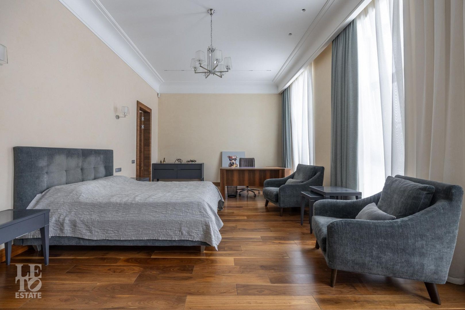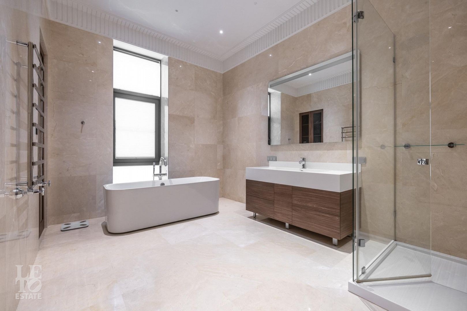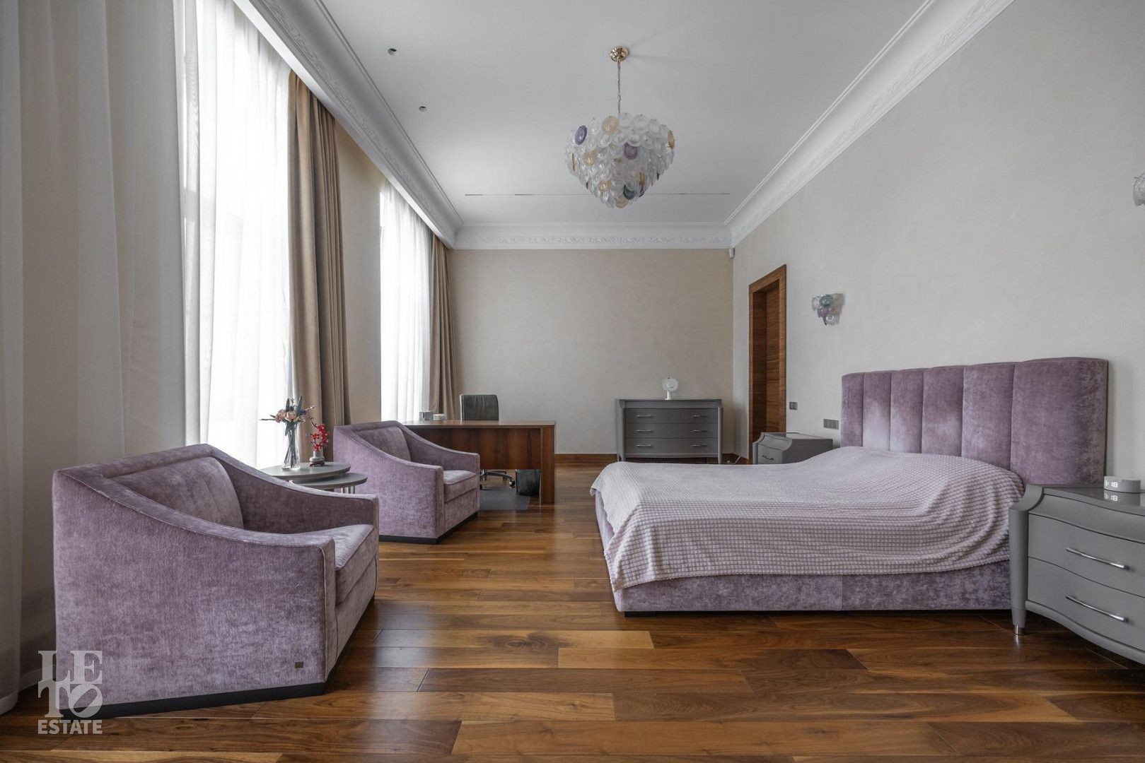 В доме выполнена отделка по индивидуальному проекту, в современном стиле с использованием дорогих, качественных материалов. Благодаря высоким потолкам и большим окнам в пол пространство наполнено воздухом и светом. Эксклюзивные дизайнерские решения придают уникальность внутреннему пространству дома. Это изысканный особняк, где роскошь царствует в каждой детали, а максимальный комфорт становится вашим постоянным спутником в этом великолепном доме.