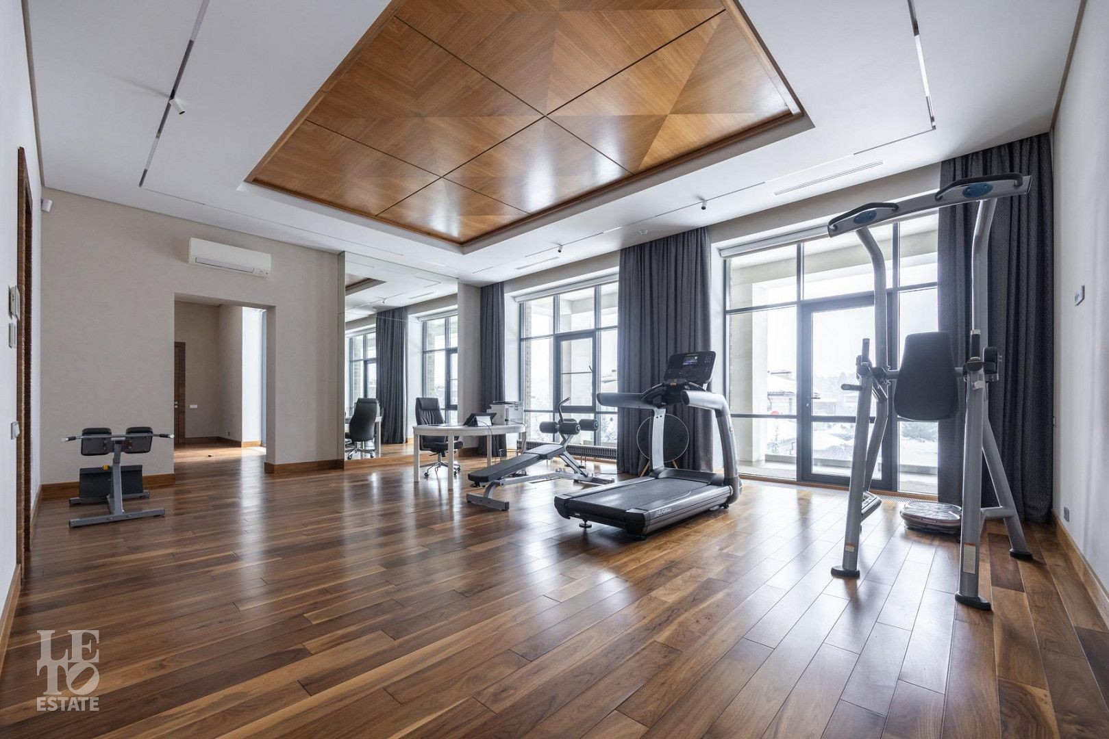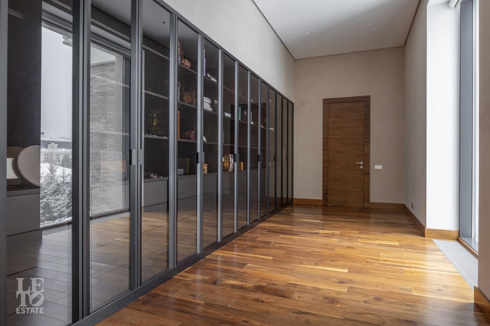 Второй этаж: 2 мастер-спальни, каждая со своей гардеробной и ванной комнатами, 2 спальни, каждая со своим санузлом, кабинет, тренажерный зал.