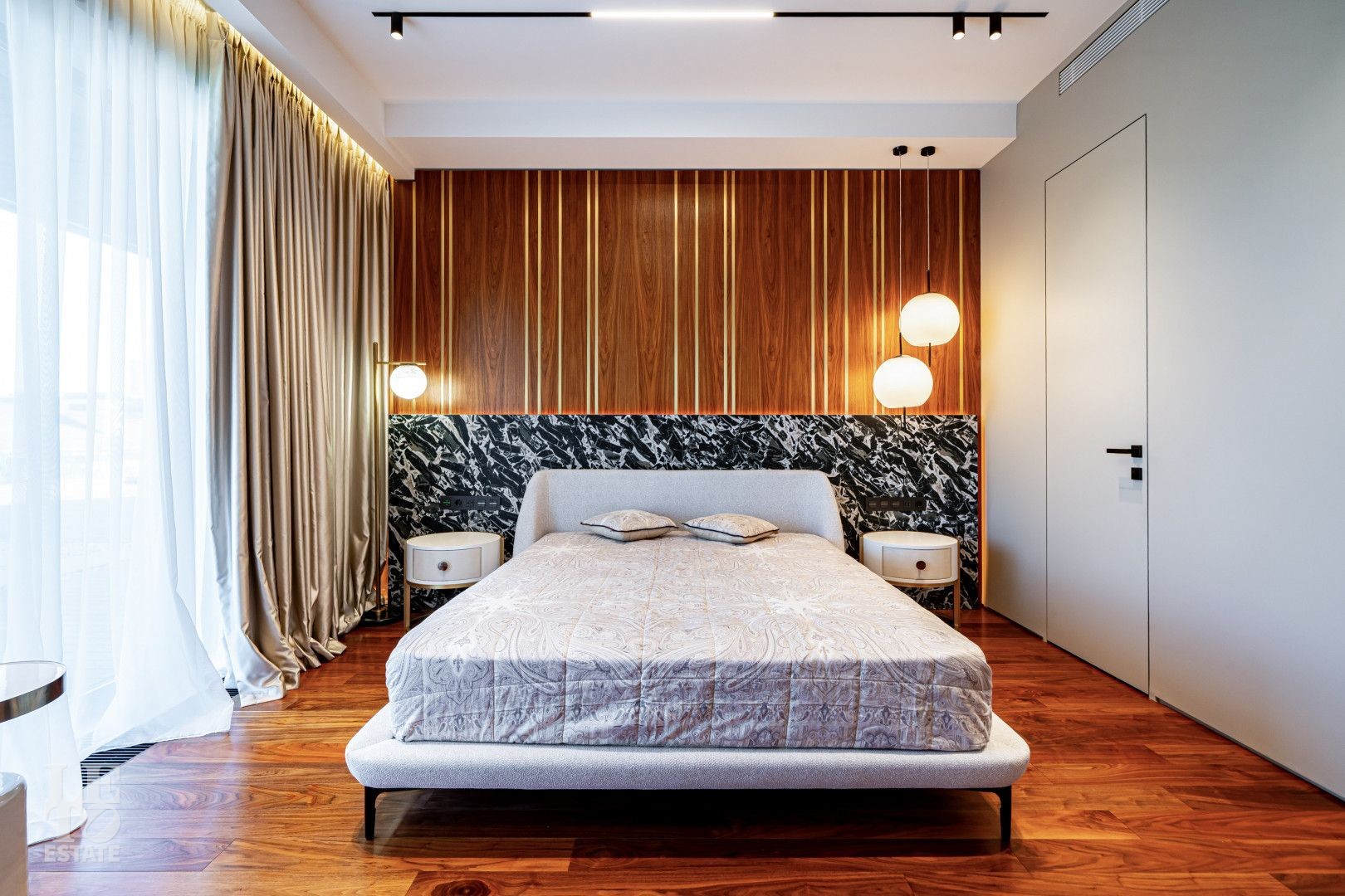 Кухня оснащена техникой Bosch, холодильниками Liebherr, а каждая спальня — телевизорами Samsung.