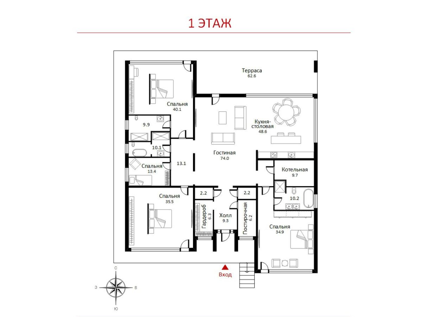 4 спальни