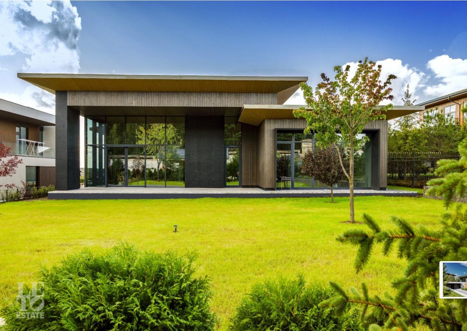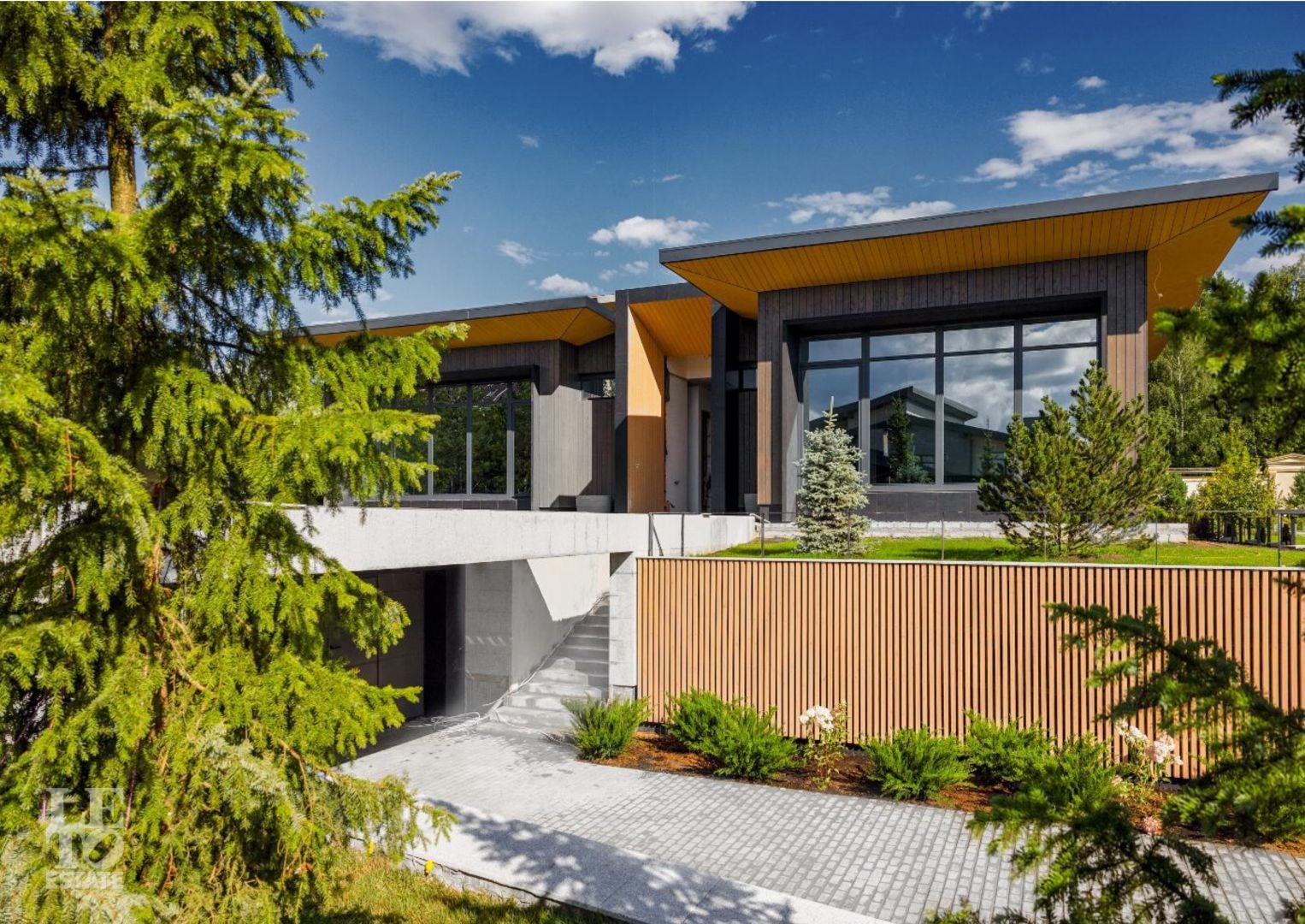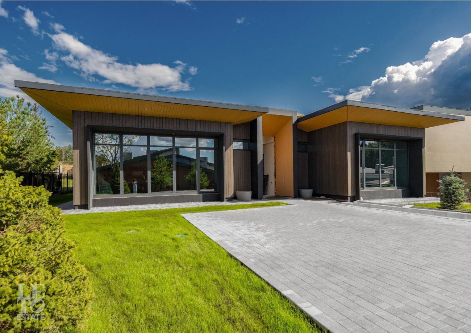 Вашему вниманию представляется современный одноэтажный дом авторской архитектуры в стиле минимализм в коттеджном поселке Ренессанс парк, расположенном в 19 км от МКАД по Новорижскому шоссе.