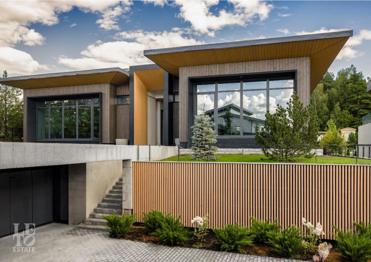 На территории обустроен гараж с паркингом на два машино-места. Все помещения расположены на одном уровне, что обеспечивает максимальную функциональность и удобство проживания.