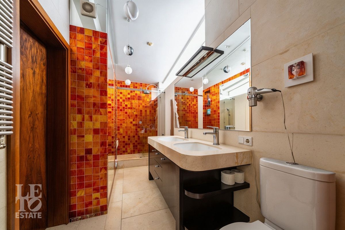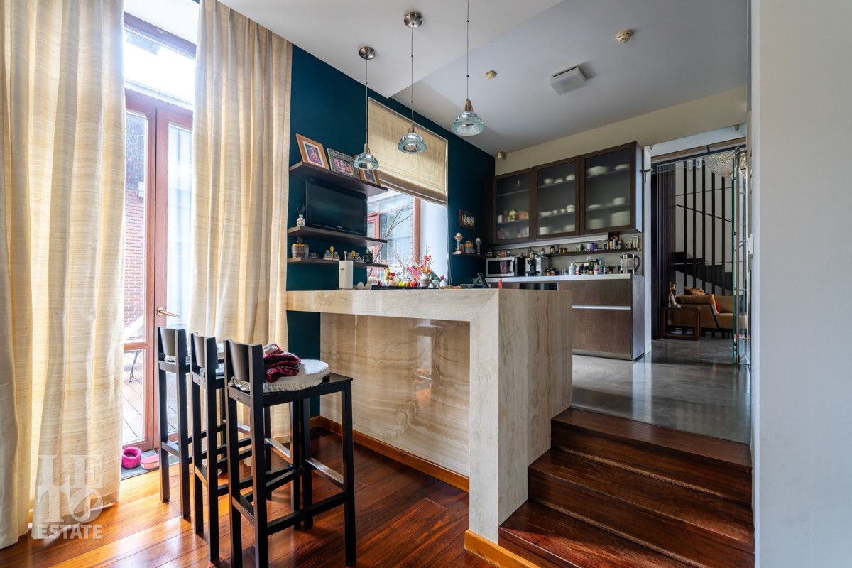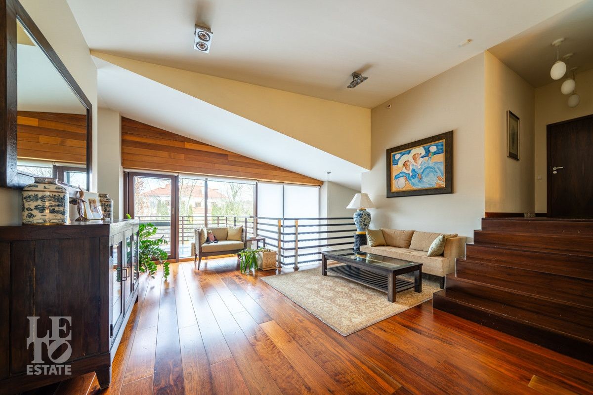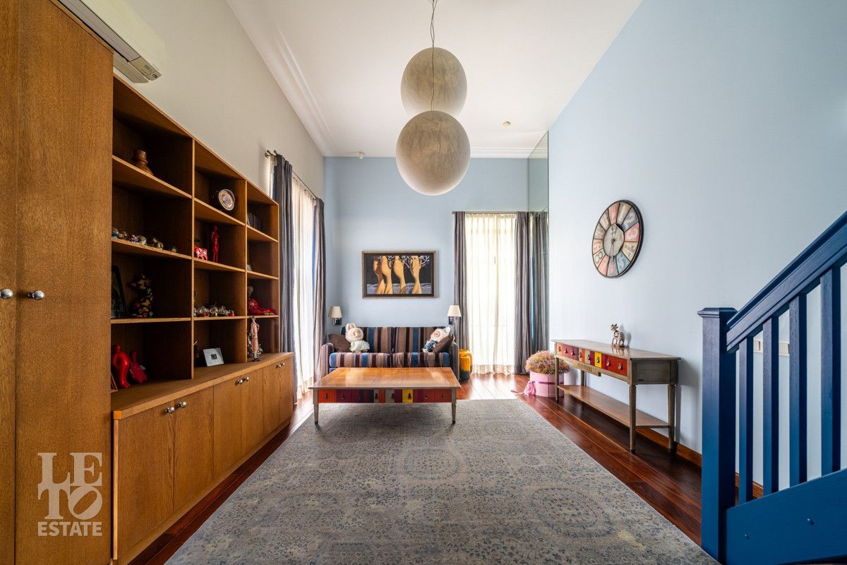 В доме выполнена дизайнерская отделка по индивидуальному проекту с использованием дорогих, качественных материалов. Благодаря высоким потолкам и большим окнам в пол пространство наполнено воздухом и светом. Эксклюзивные дизайнерские решения придают уникальность внутреннему пространству дома. Это изысканный особняк, где роскошь царствует в каждой детали, а максимальный комфорт становится вашим постоянным спутником в этом великолепном доме.