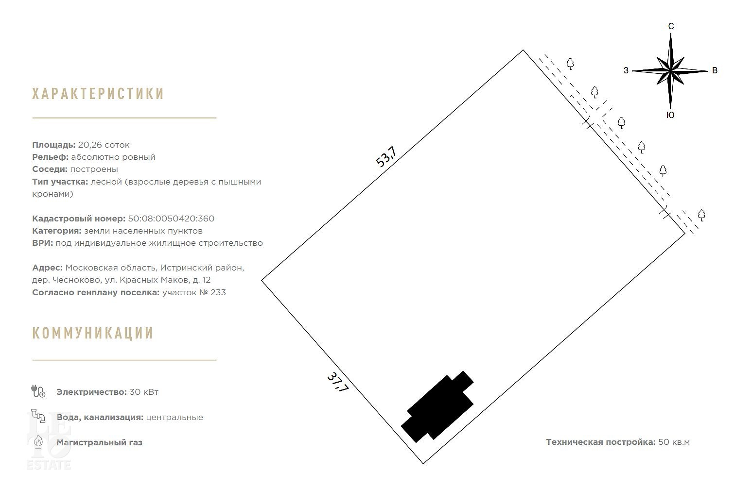 Участок готов к быстрому старту строительства: здесь уже расположено одно техническое строение площадью 50, которое подключено к теплу, оборудованы туалеты. На время строительства основного дома могут использоваться для проживания рабочих, в качестве штаба стройки или склада.