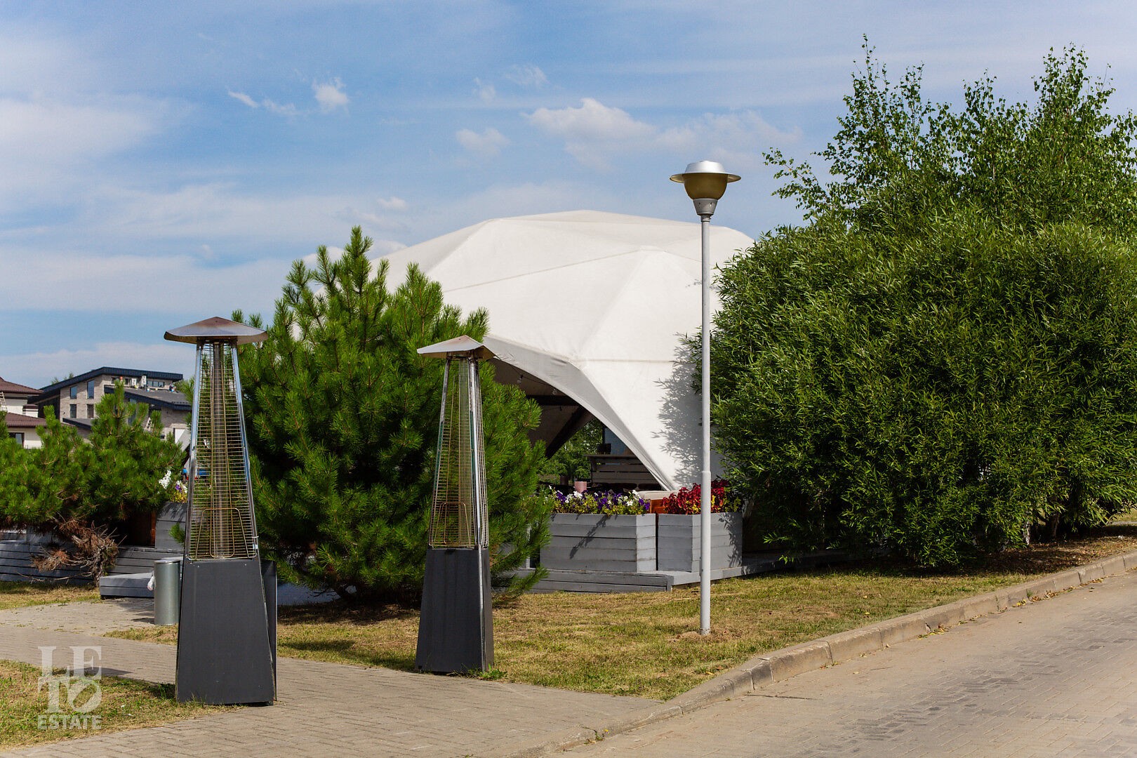 Для сохранения тишины и уединения владельцев недвижимости многие инфраструктурные объекты были вынесены за пределы загородной локации. Они расположены при въезде в жилую зону и объединены в комплекс, который включает: