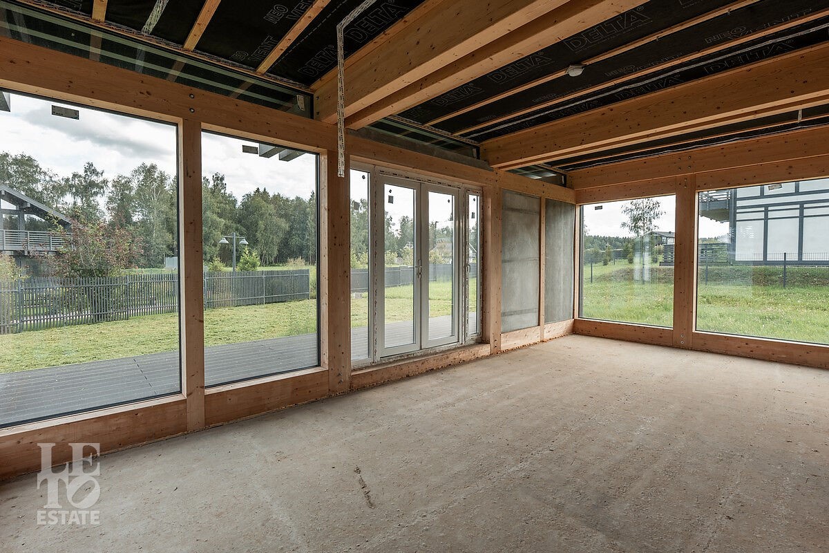 В поселке реализованы современные дома в стиле фахверк с панорамным остеклением. Из окон домов открывается впечатляющие виды на Икшинское водохранилище.