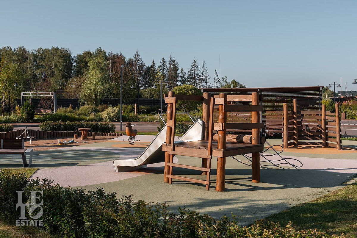 Внутренняя территория поселка обустроена по принципам безопасности, удобства и заботы о резидентах. Спортивные площадки, зоны воркаута и детские площадки способствуют созданию дружелюбной и активной среды внутри поселка. Большое количество детских садов и школ позволят проживать семьям с детьми круглогодично. По широким дорогам и благоустроенным тротуарам будет комфортно передвигаться автомобилистам и пешеходам.