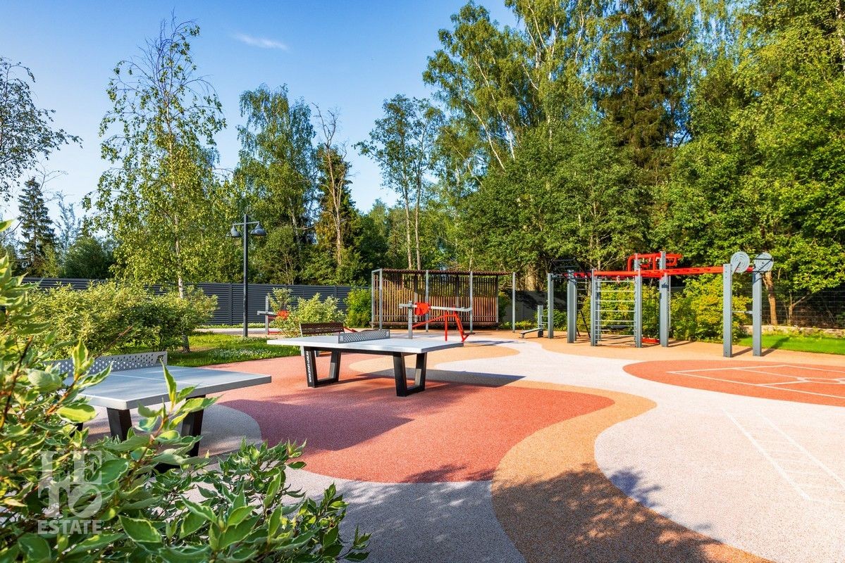 Внутренняя территория поселка обустроена по принципам безопасности, удобства и заботы о резидентах. Спортивные площадки, зоны воркаута и детские площадки способствуют созданию дружелюбной и активной среды внутри поселка. Большое количество детских садов и школ позволят проживать семьям с детьми круглогодично. По широким дорогам и благоустроенным тротуарам будет комфортно передвигаться автомобилистам и пешеходам.