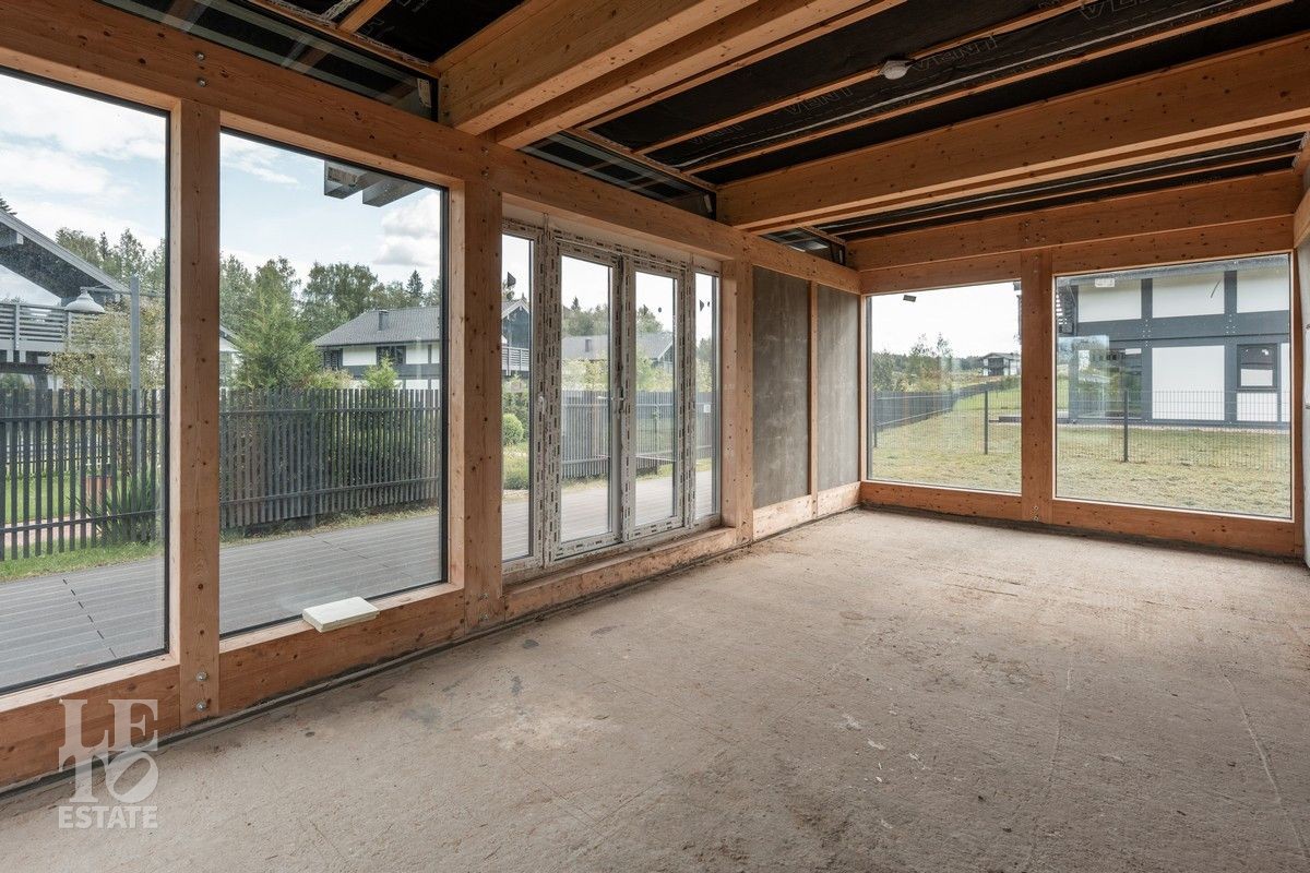 В поселке реализованы современные дома в стиле фахверк с панорамным остеклением. Из окон домов открывается впечатляющие виды на Икшинское водохранилище.