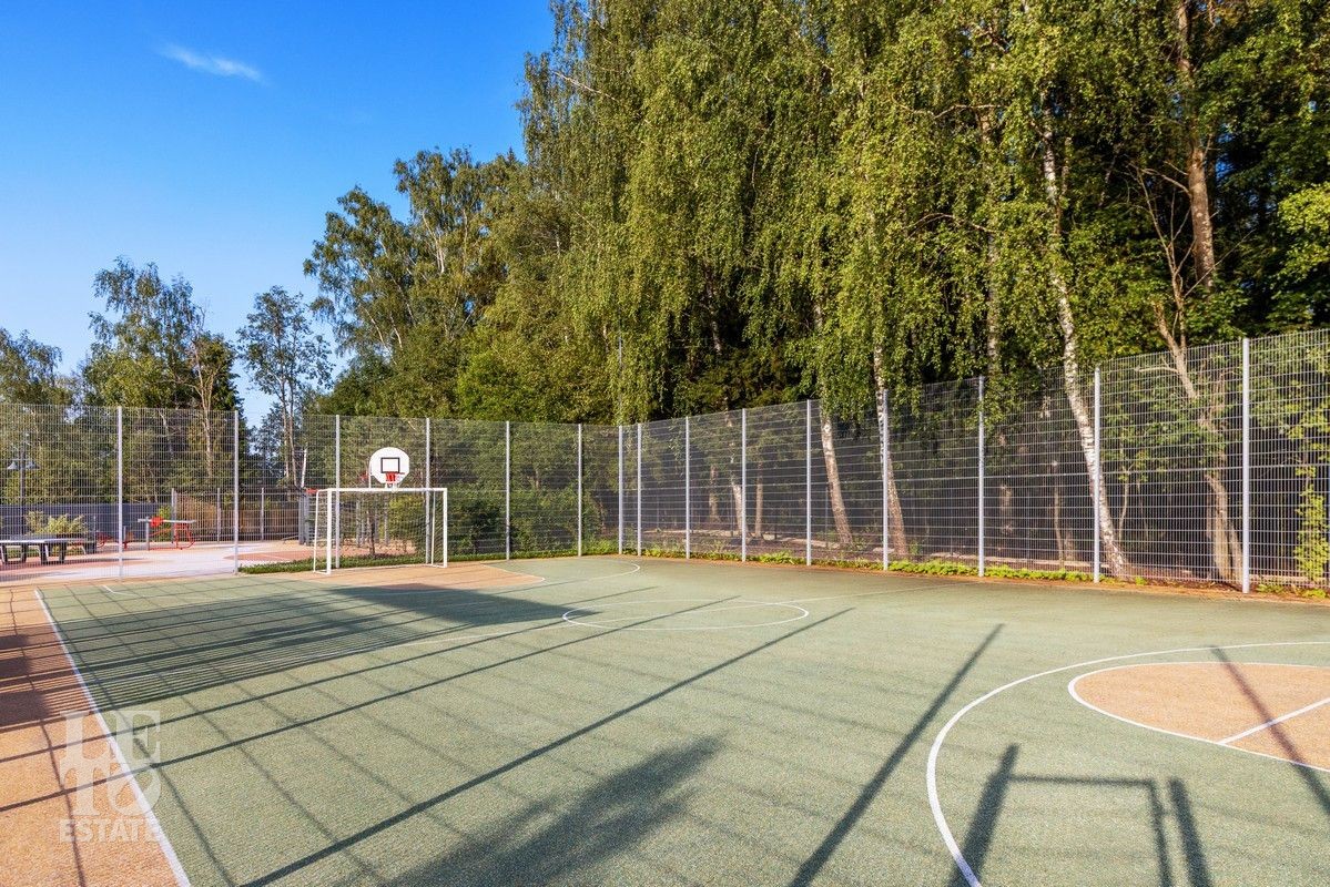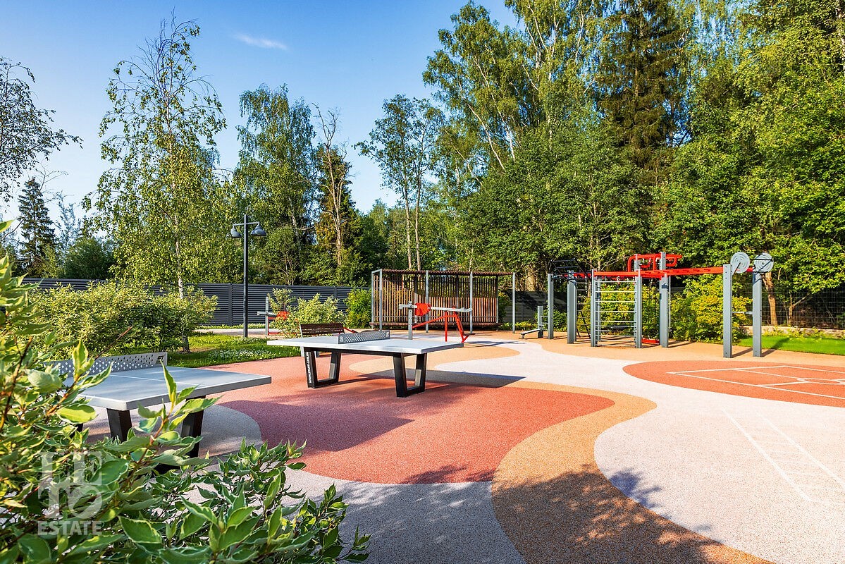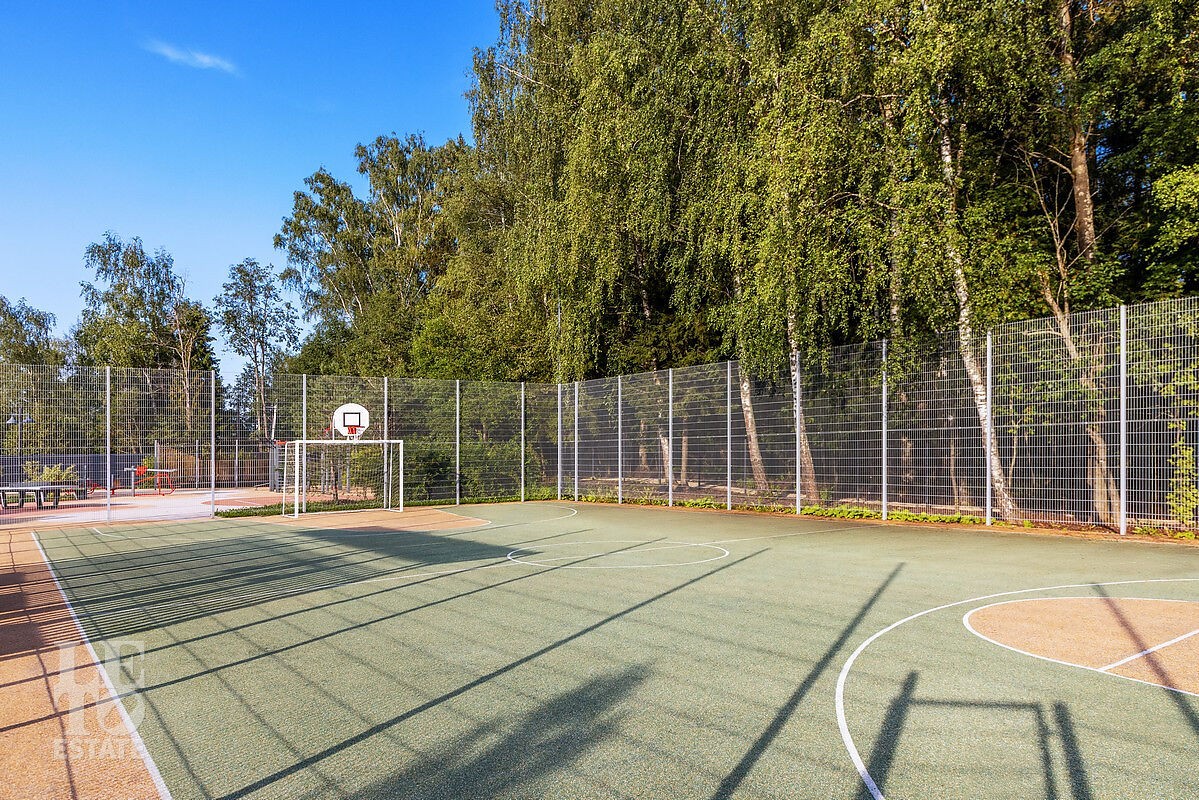 Внутренняя территория поселка обустроена по принципам безопасности, удобства и заботы о резидентах. Спортивные площадки, зоны воркаута и детские площадки способствуют созданию дружелюбной и активной среды внутри поселка. Большое количество детских садов и школ позволят проживать семьям с детьми круглогодично. По широким дорогам и благоустроенным тротуарам будет комфортно передвигаться автомобилистам и пешеходам.