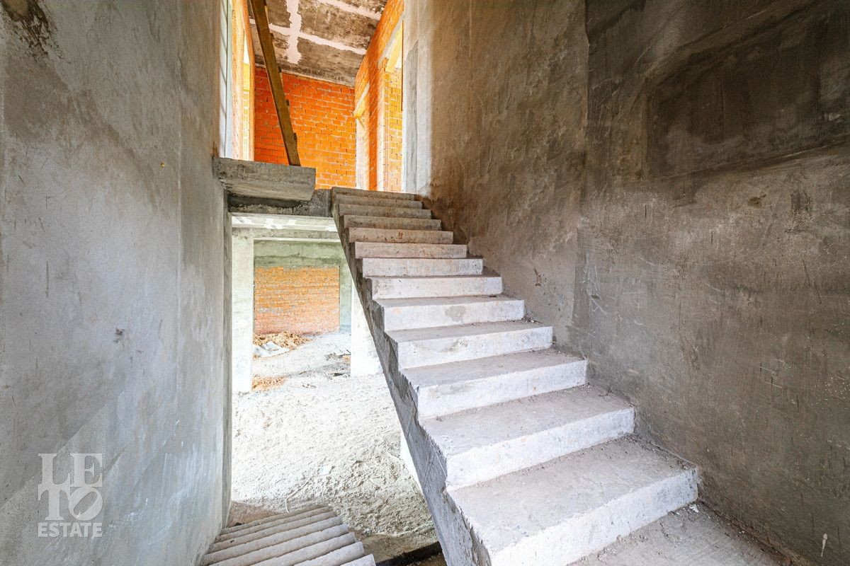 На участке 40 соток расположен дом без отделки 703 кв.м. Есть возможность достроить два дополнительных блока в дому по 500 кв.м. Залит фундамент. В доме разведены центральные коммуникации: отопление газовое ( котёл VIESSMANN 100), канализация, центральное качественное водоснабжение и канализация.
