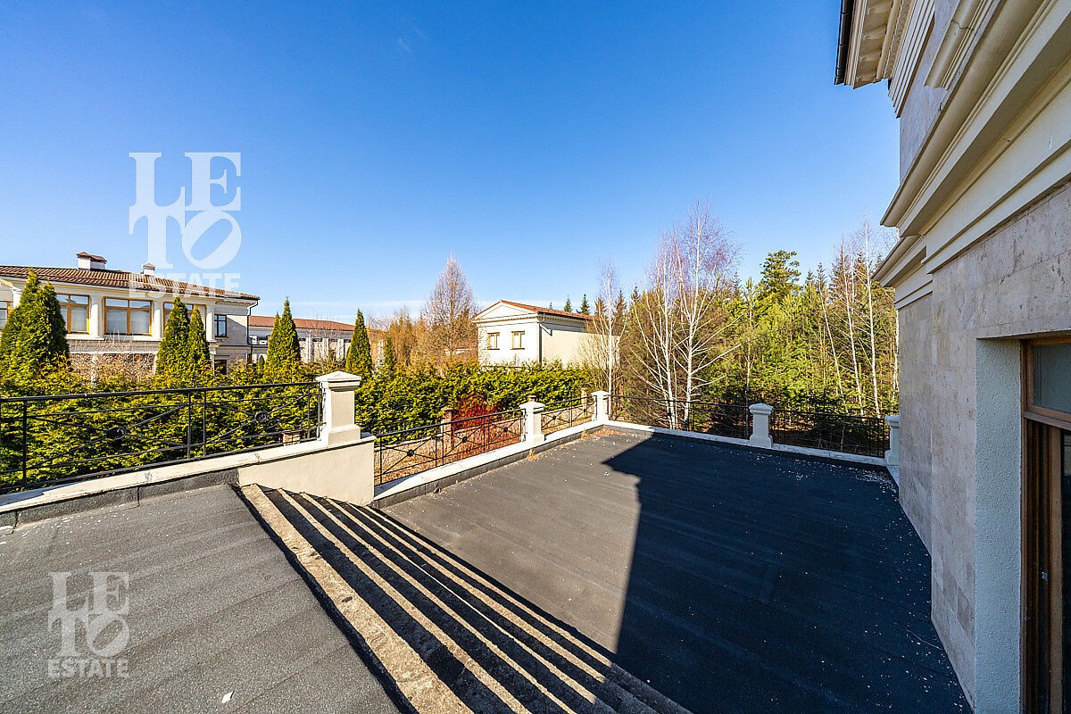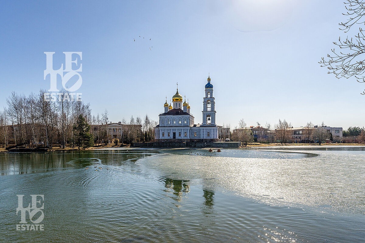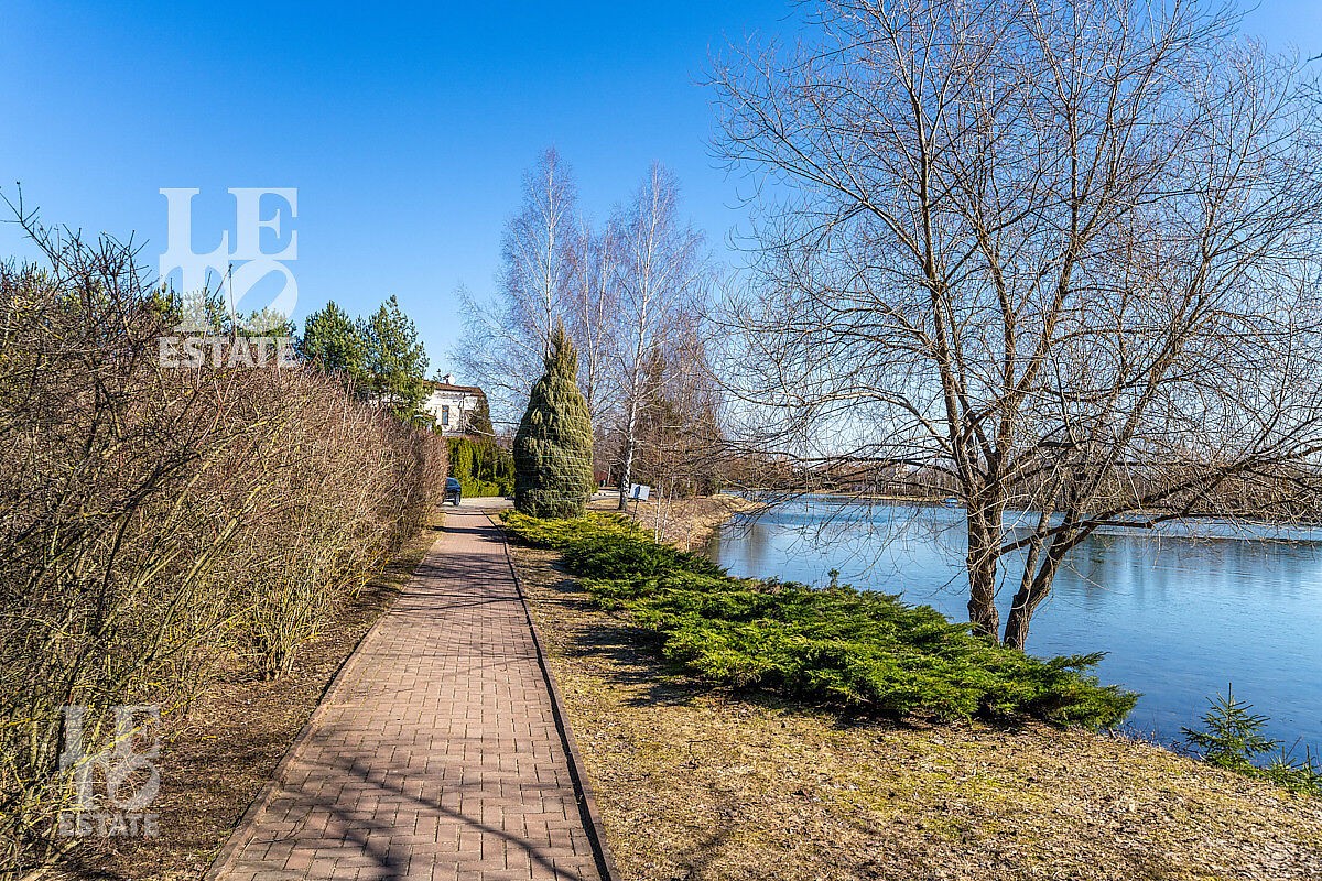 Предлагается к продаже просторный дом площадью 680 кв. м на лесном участке правильной формы в первой линии от озера в охраняемом коттеджном поселке "Резиденция Монолит", расположенном в 21 км от МКАД по Новорижскому шоссе.