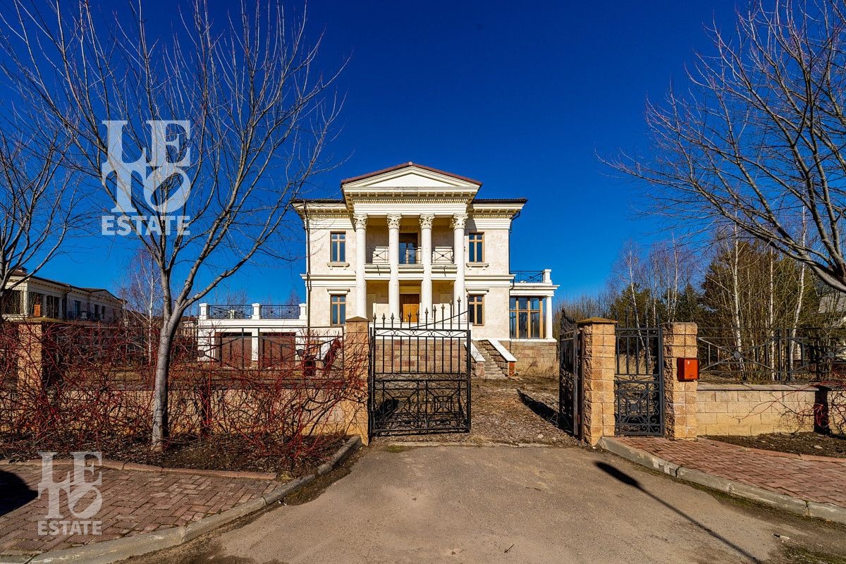 Дом построен из керамического кирпича, в классическом стиле с белоснежными колоннами и перилами балконов. Фасад отделан натуральным камнем (травертином). Дом без отделки.