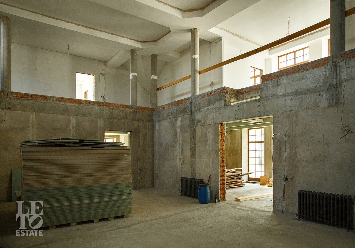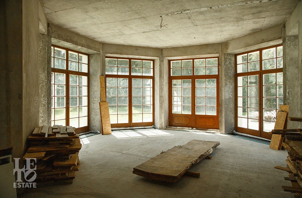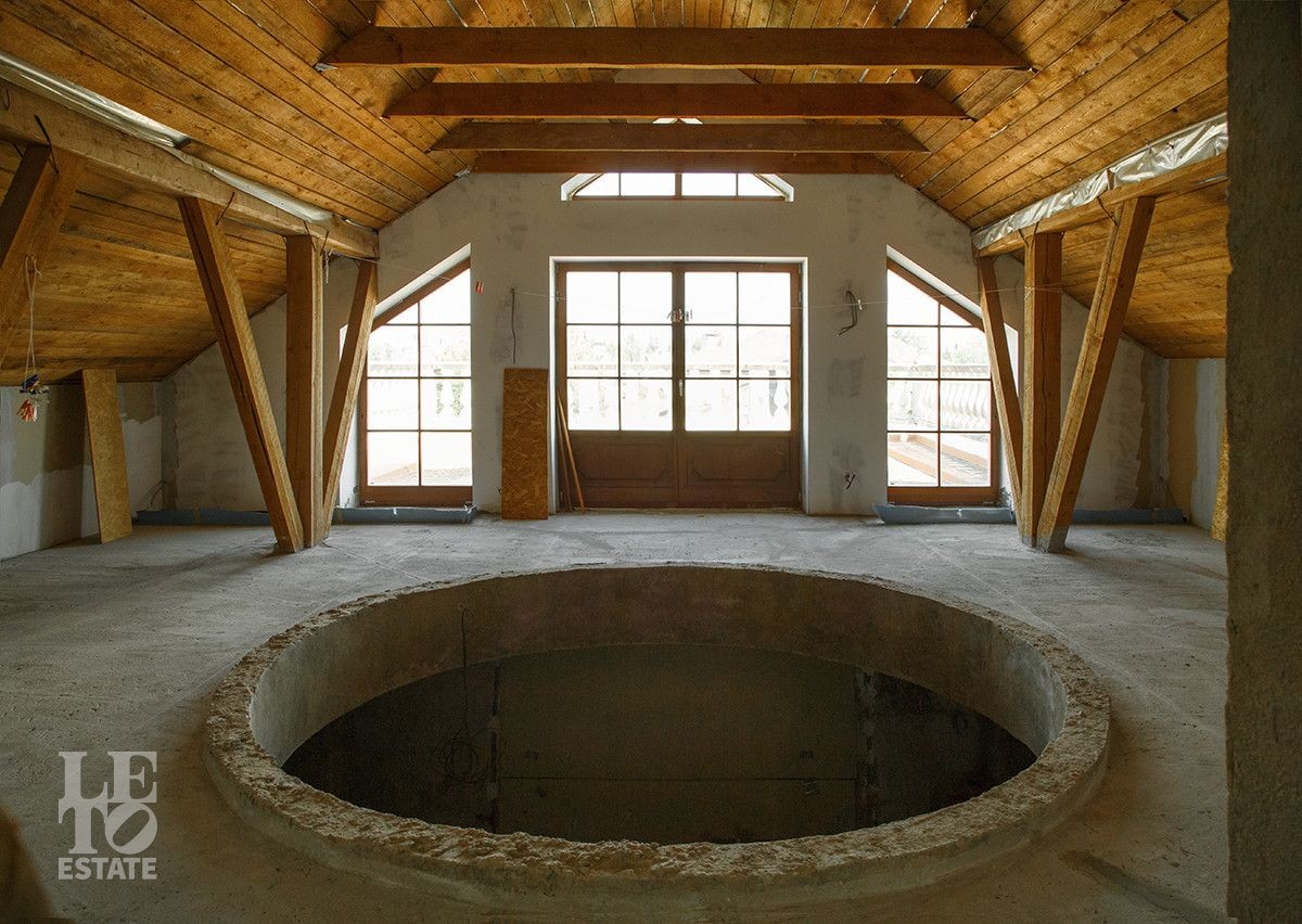 Первый этаж: мастер - спальня с двумя санузлами, кабинет с выходом на террасу, гостиная со вторым светом, каминный зал, кухня столовая, техническая кухня, зимний сад, постирочная, комната для спортивного инвентаря, спортзал, бассейн и спа зона с хаммамом.