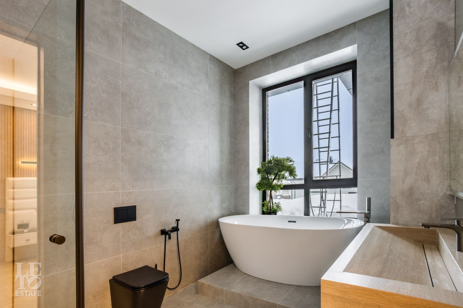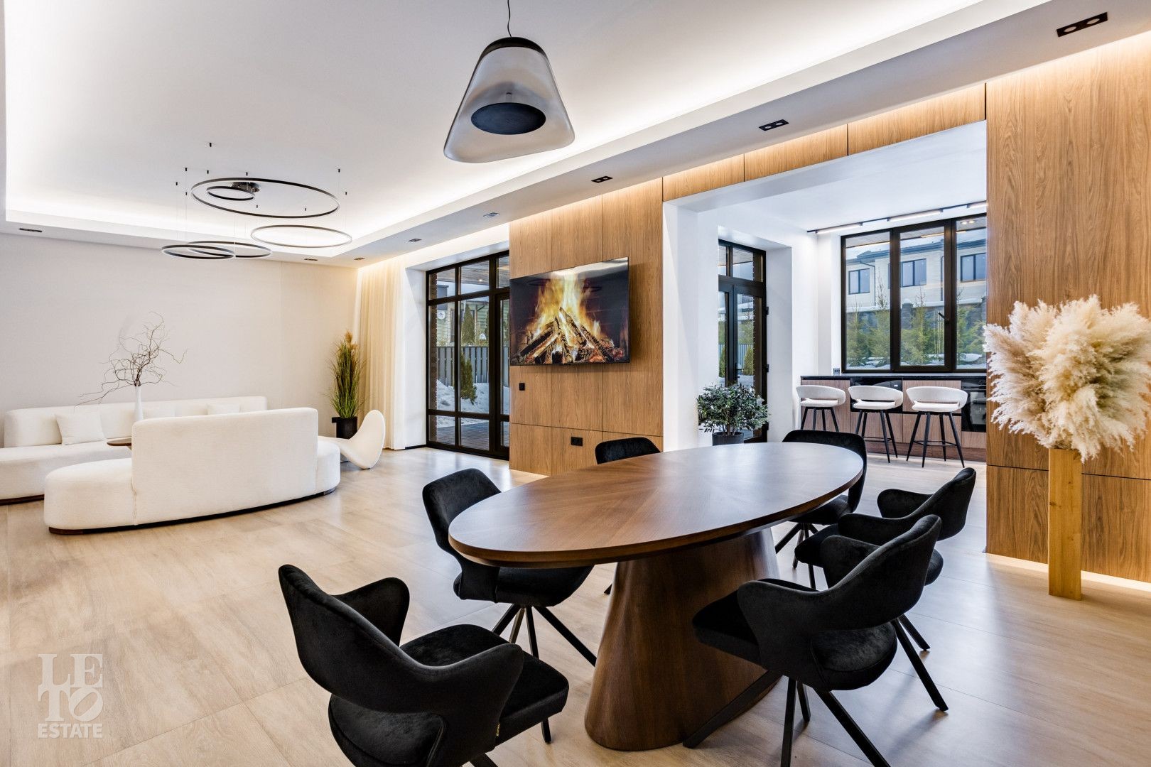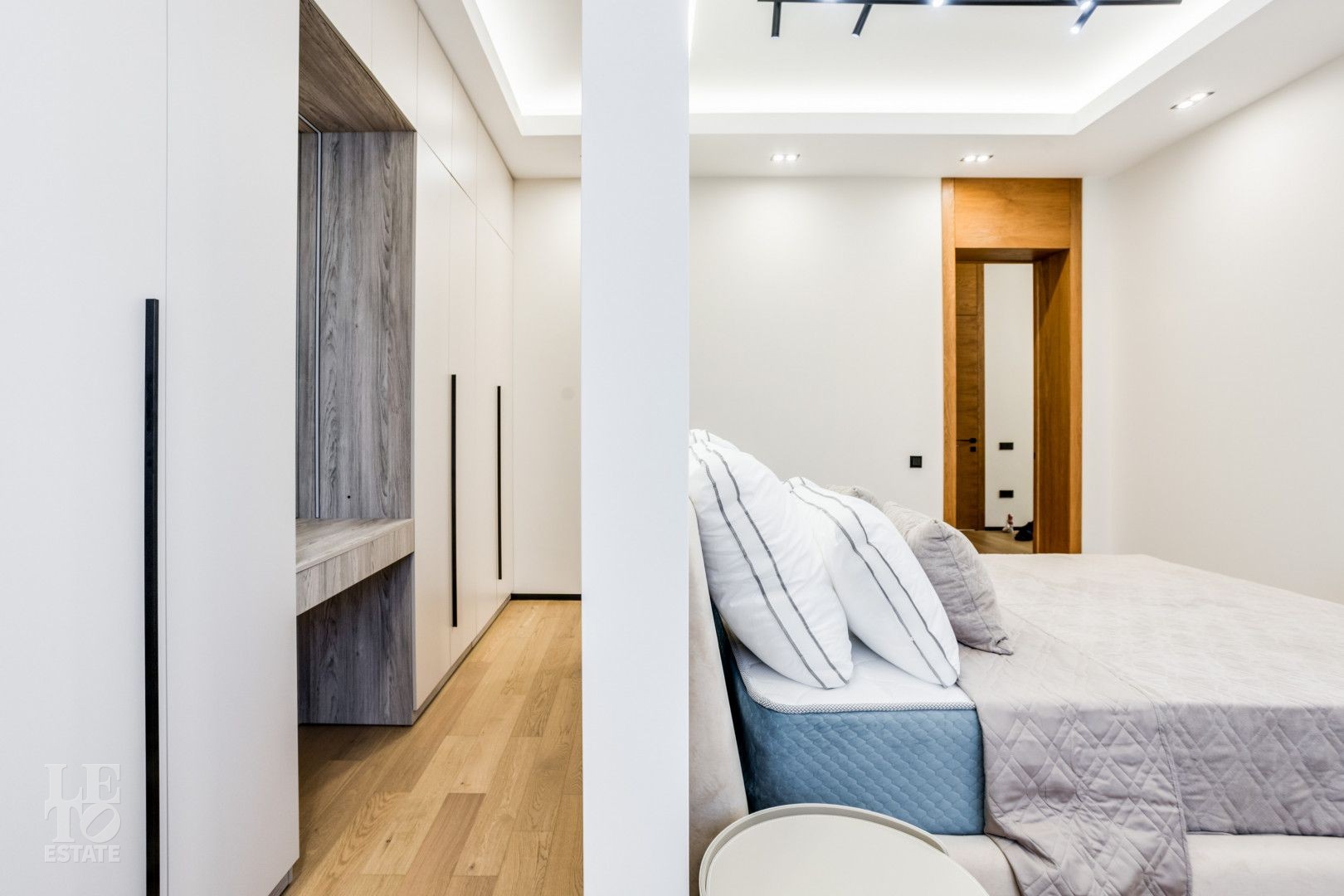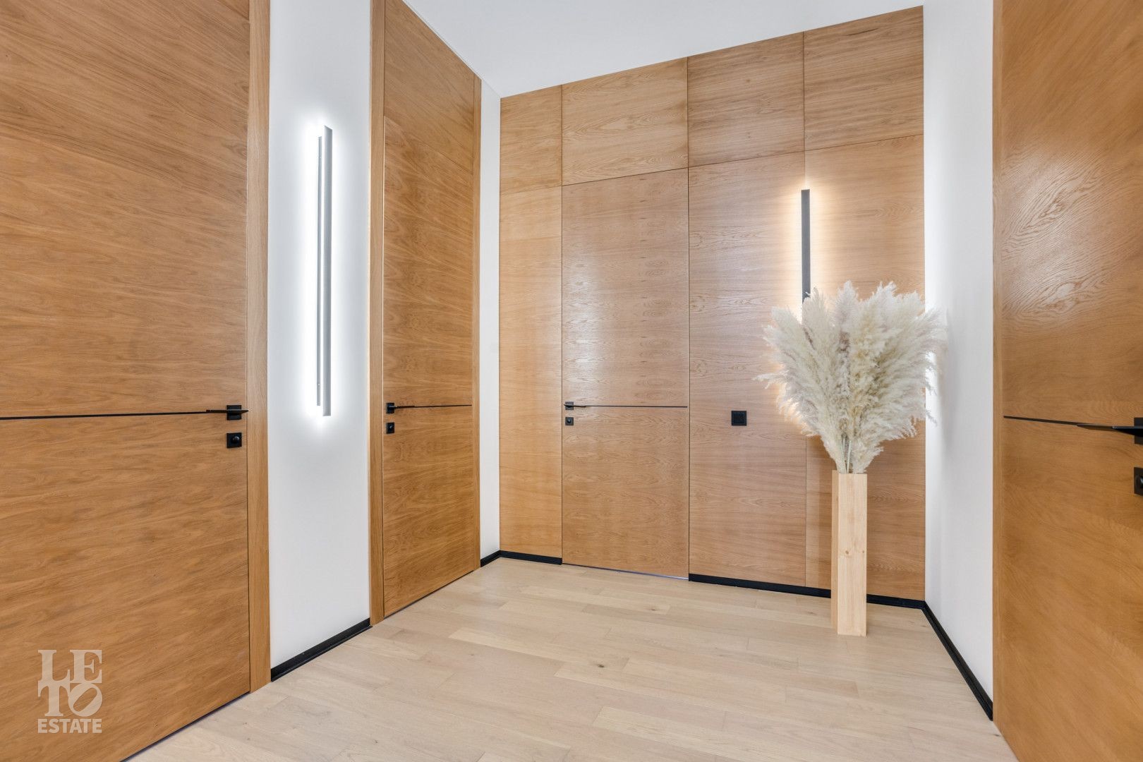 Отдельного акцента заслуживает планировка дома. Дом двухэтажный. Все пространство эргономично спланировано. Совмещенная кухня-гостиная позволит проводить теплые уютные вечера в семейном кругу, а в летнее время можно наслаждаться ужином на террасе. Также на первом этаже есть кабинет с выходом на индивидуальную террасу. Второй этаж отведен для спален.