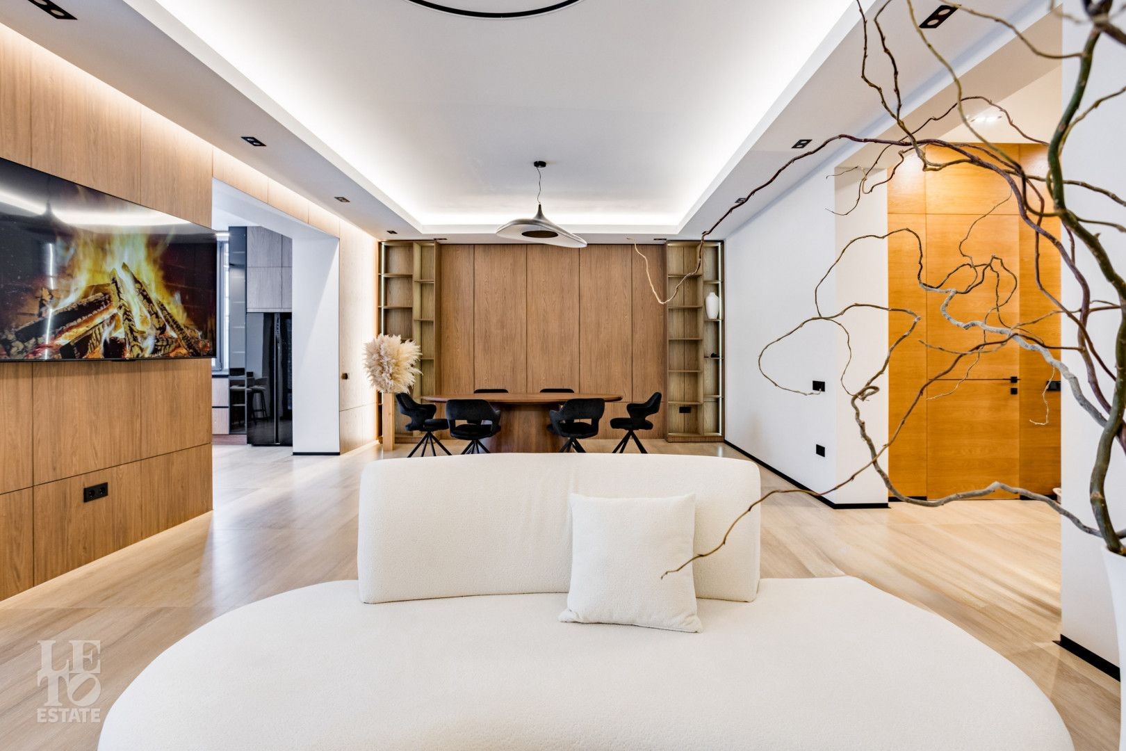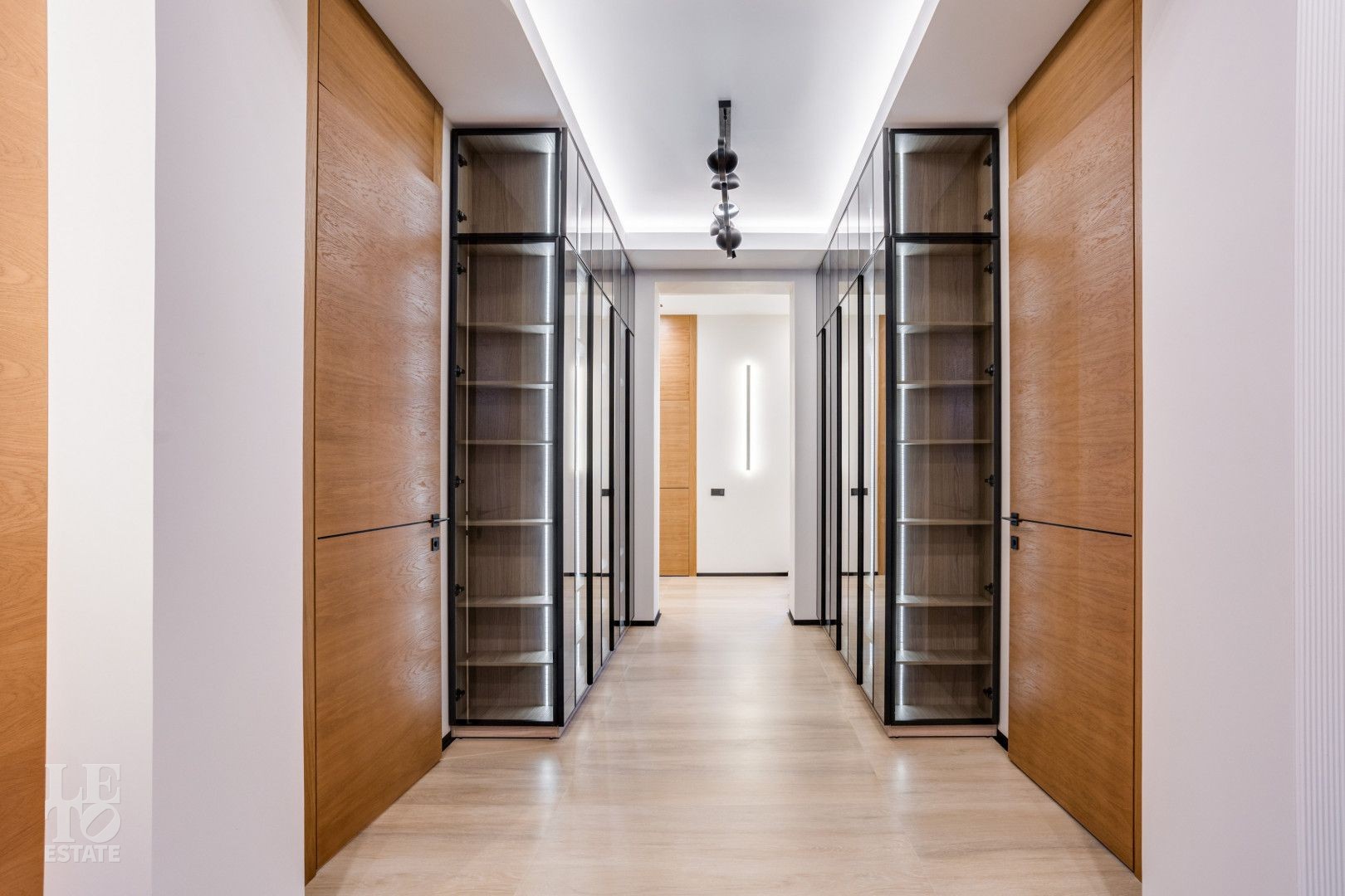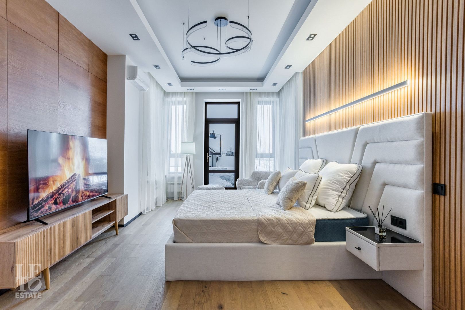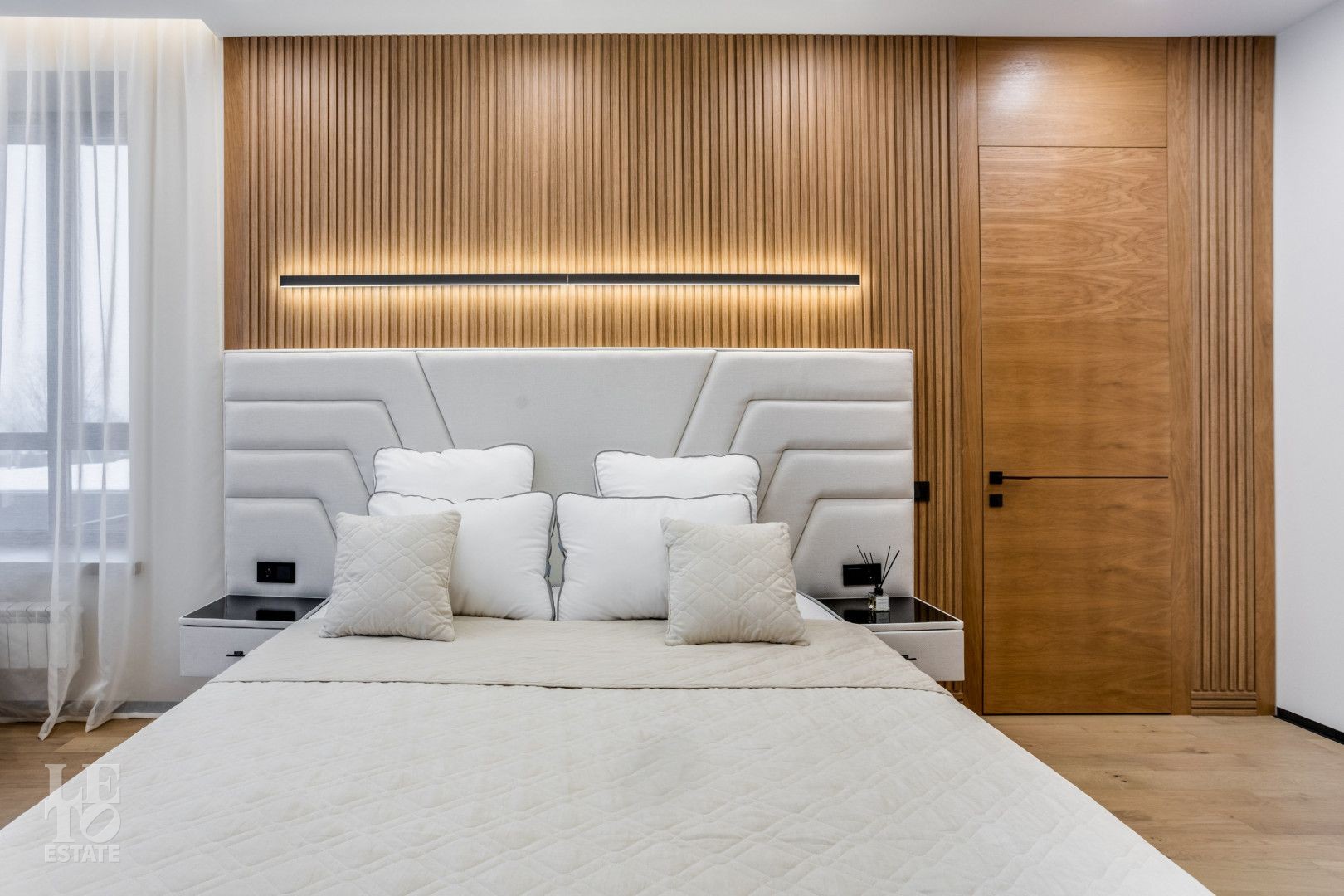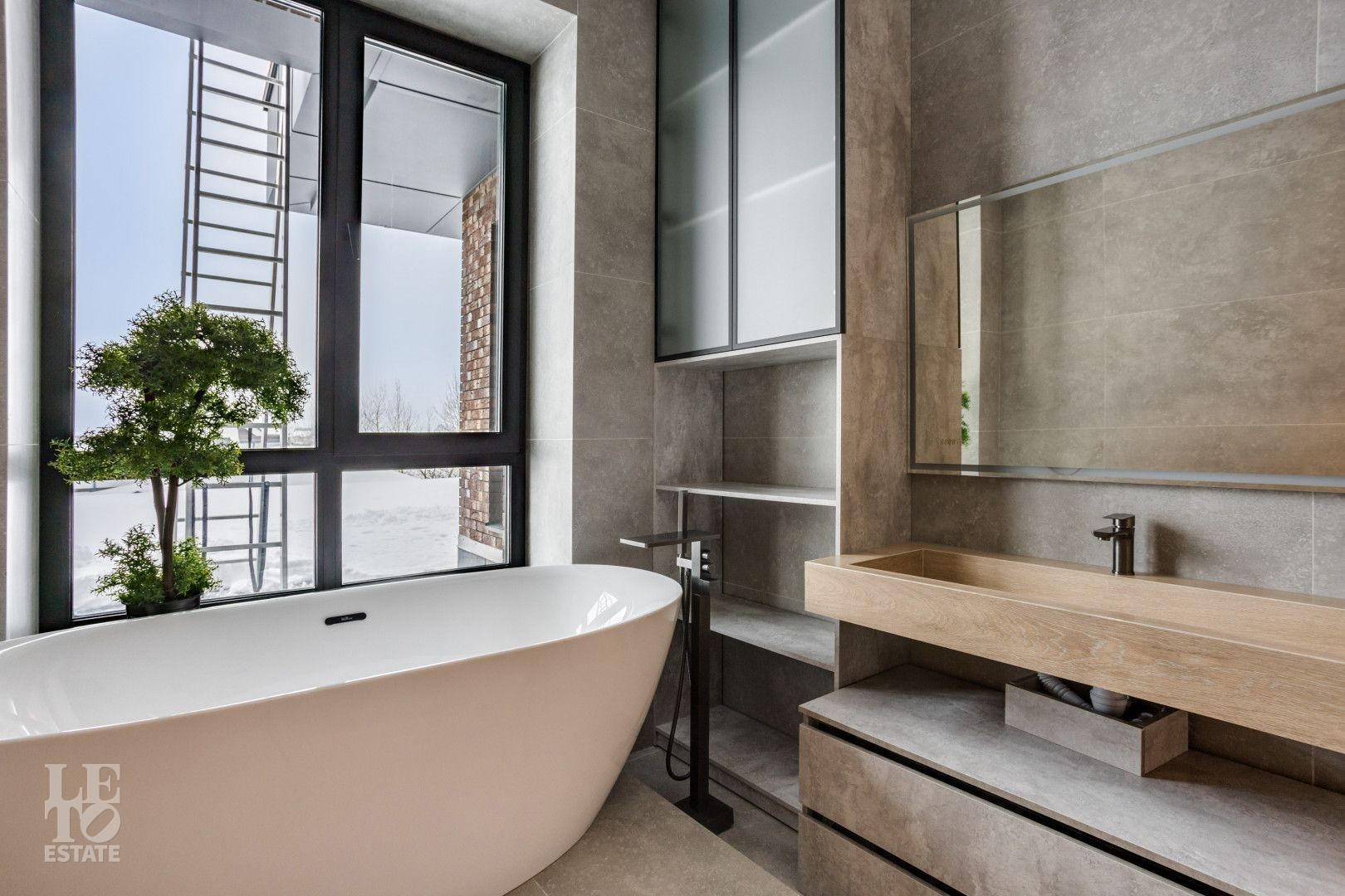 Отдельного акцента заслуживает планировка дома. Дом двухэтажный. Все пространство эргономично спланировано. Совмещенная кухня-гостиная позволит проводить теплые уютные вечера в семейном кругу, а в летнее время можно наслаждаться ужином на террасе. Также на первом этаже есть кабинет с выходом на индивидуальную террасу. Второй этаж отведен для спален.