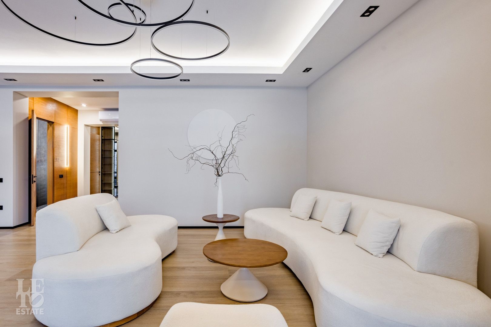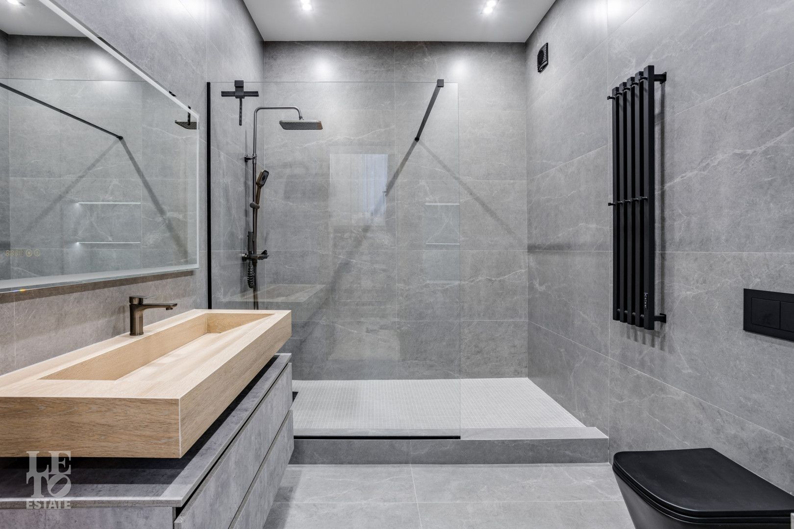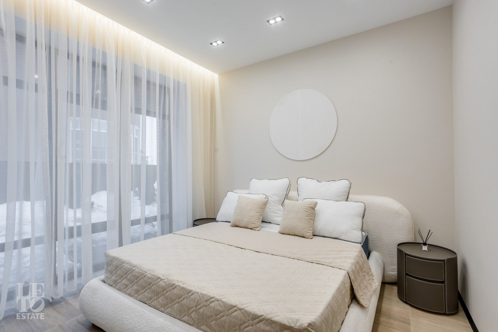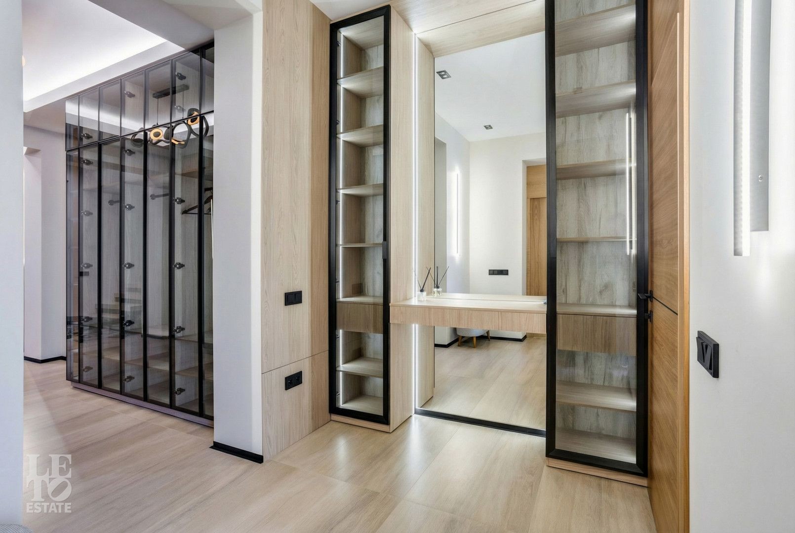 Отдельного акцента заслуживает планировка дома. Дом двухэтажный. Все пространство эргономично спланировано. Совмещенная кухня-гостиная позволит проводить теплые уютные вечера в семейном кругу, а в летнее время можно наслаждаться ужином на террасе. Также на первом этаже есть кабинет с выходом на индивидуальную террасу. Второй этаж отведен для спален.