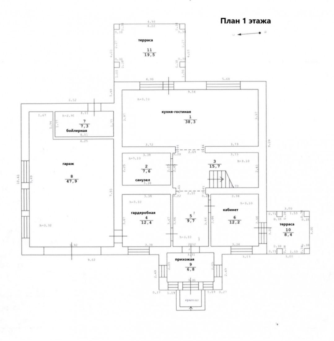 Первый этаж: прихожая, гардеробная, кухня-гостиная, терраса, кабинет, терраса, гостевой санузел, гараж на два машино-места, бойлерная;