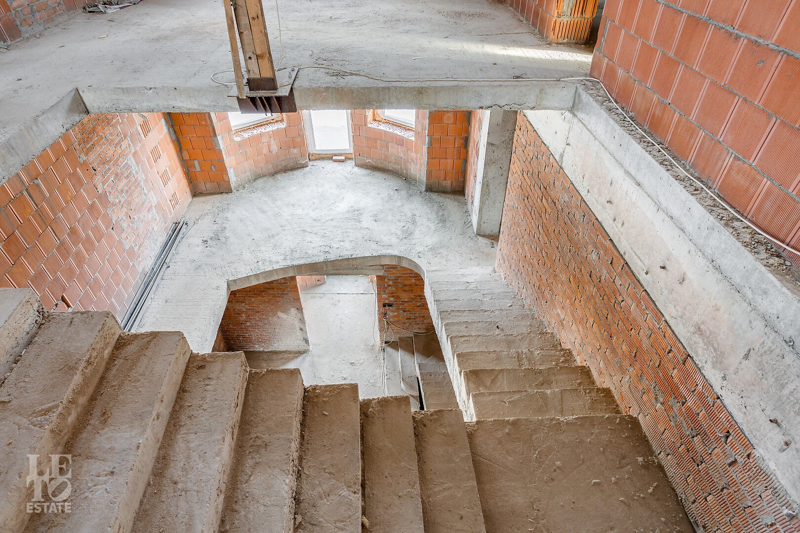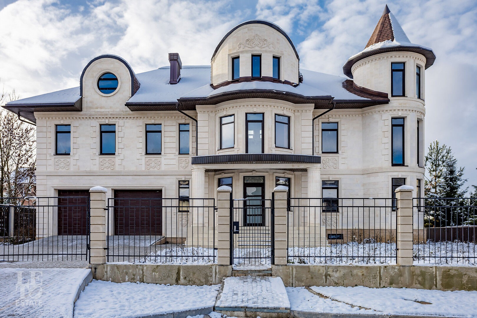 Дом построен из высококачественных материалов: стены из керамических блоков, фасад облицован натуральным камнем, цокольный этаж монолитный бетон. Полностью выполнена гидроизоляция, что гарантирует абсолютно сухой цокольный этаж.