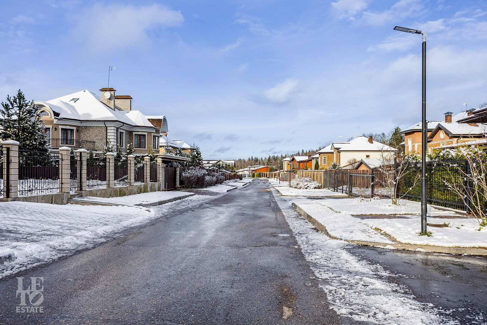 Удобные дорожные развязки внутри поселка полностью заасфальтированы, как и подъезды к самим домовладениям. Широкие прогулочные дорожки вымощены брусчаткой. Вся территория коттеджного поселка имеет искусственное освещение, которое включается с наступлением сумерек и работает до рассвета.