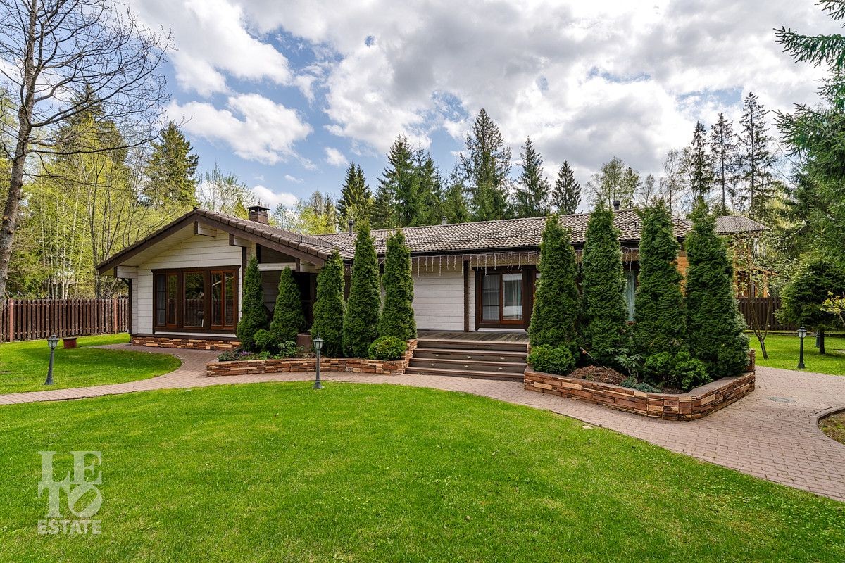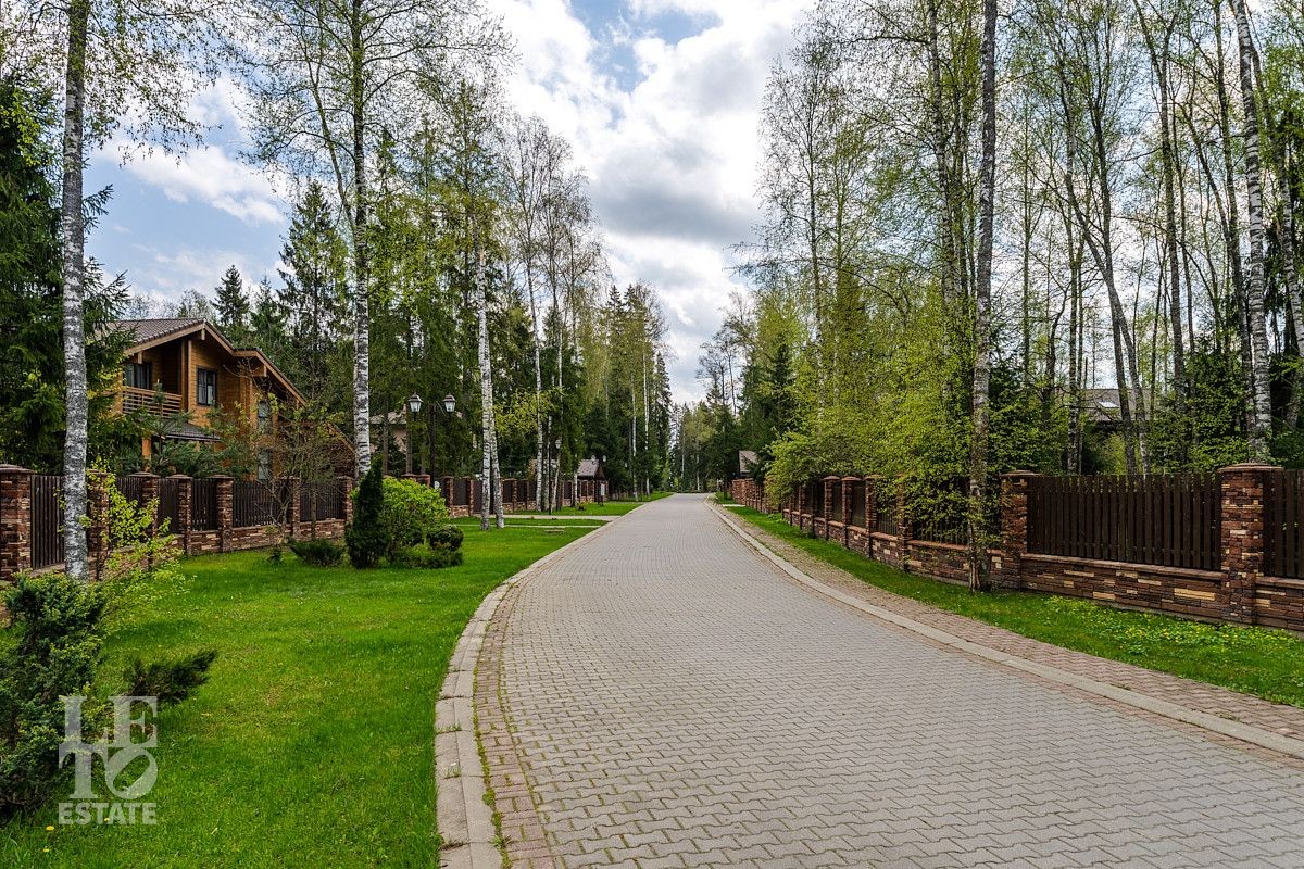 На участке правильной формы площадью 21 сотка выполнен ландшафтный дизайн, сделан дренаж, есть уличное освещение территории. Все коммуникации в поселке – центральные.