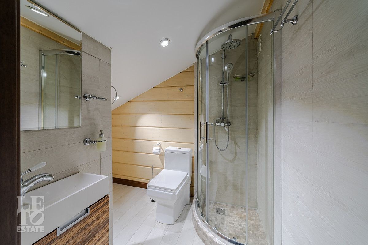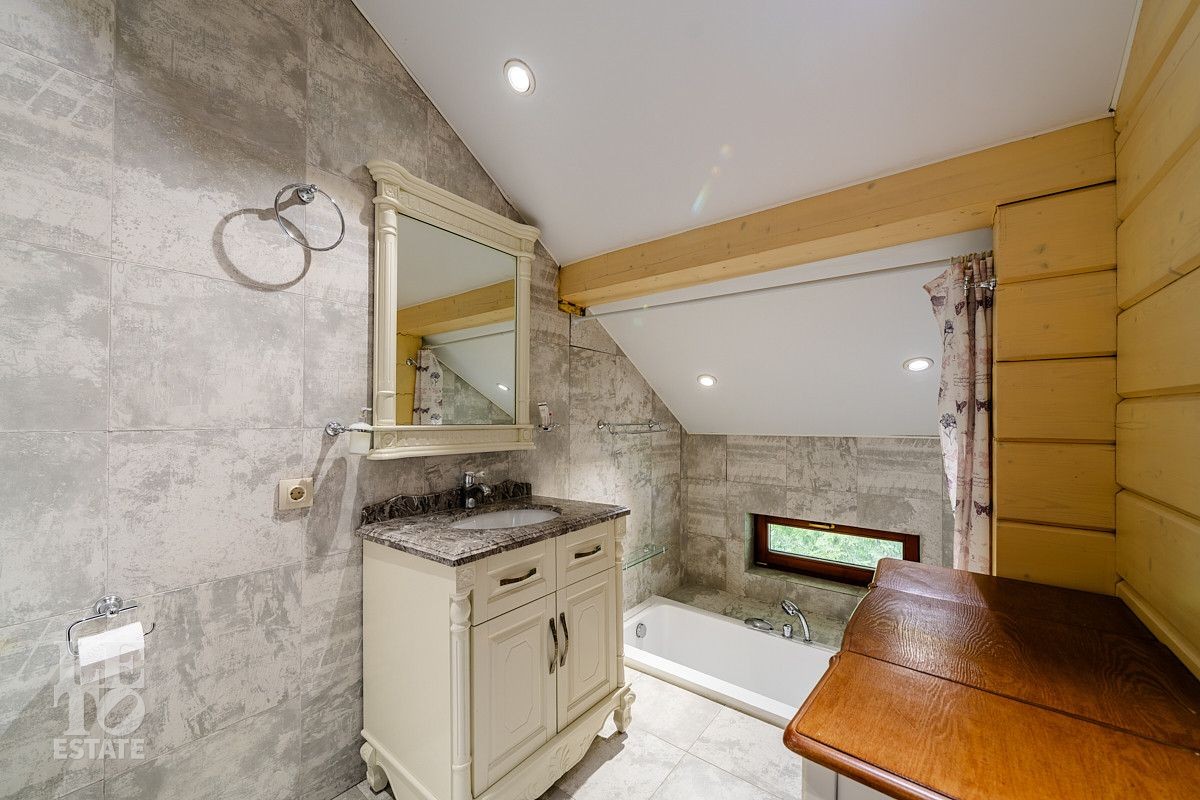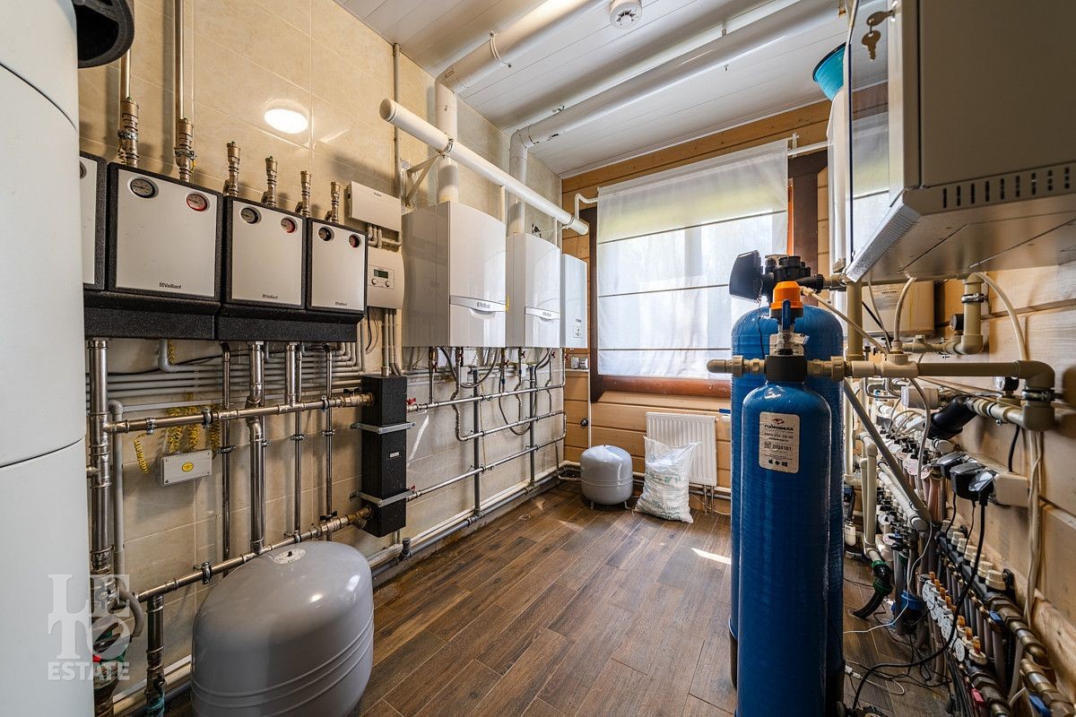 Дом из бруса построен в 2015 году, полностью обустроен и мебелирован. Кровля – натуральная черепица BRAAS. Окна – панорамные. На первом этаже водяный теплые полы, на втором этаже – в санузлах. Пол – дубовая паркетная доска. В доме приточно-вытяжная вентиляция. Установлены системы водоочистки и водоподготовки. Выполнена качественная внутренняя отделка.