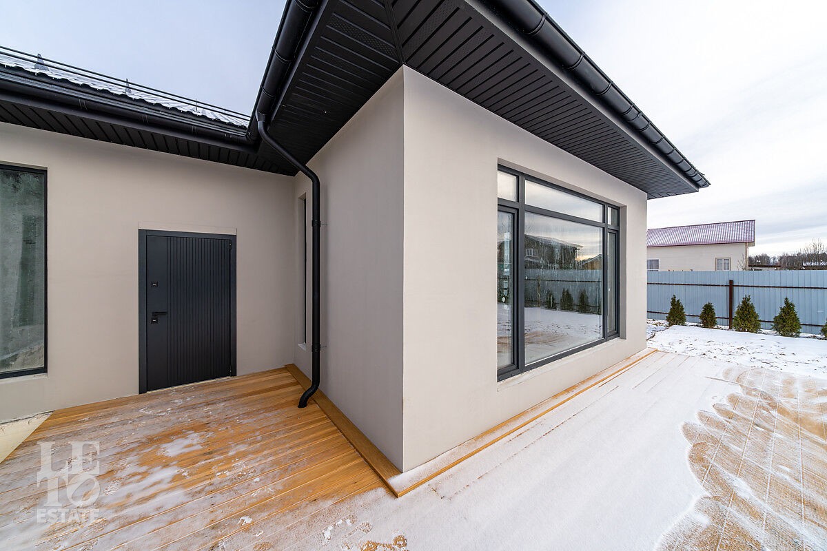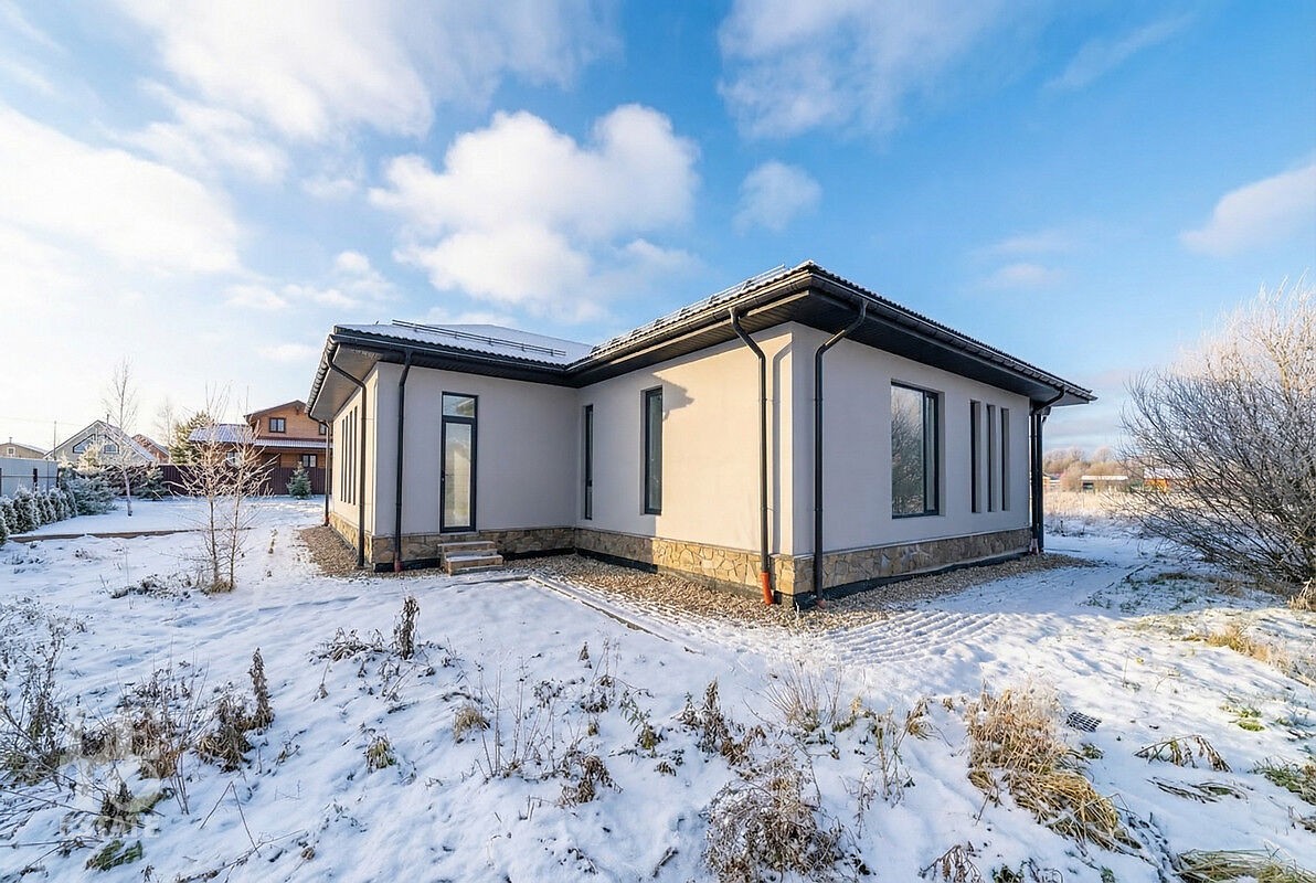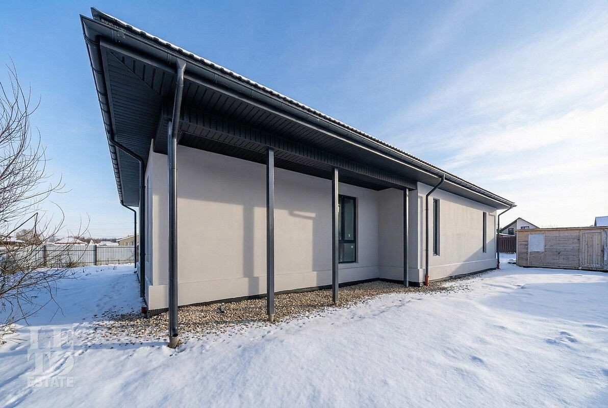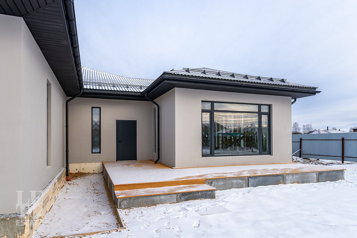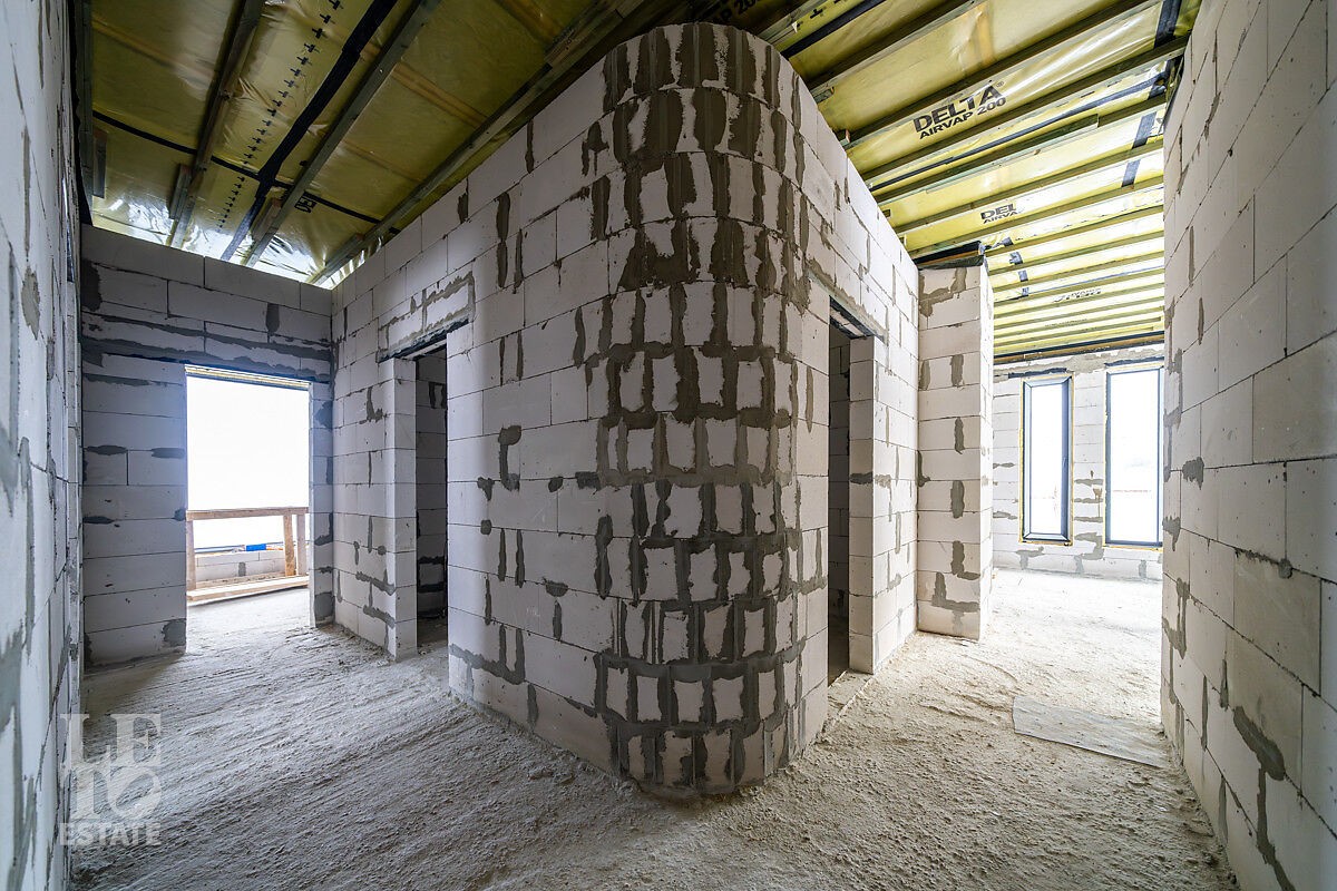 Новый дом построен из блоков с высокими потолками, толщина стен 40 см., матовая кровля фирмы Grand Line, профнастил для кровель 0,45 мм. Продумана планировка и расстановка мебели для комфортного проживания. Во всём доме заложен тёплый пол, грамотно разделённый на секции, также сделаны дополнительные выводы для батарей в каждой комнате. Дом с тёплым гаражом, установлены автоматические ворота с дистанционным управлением. По периметру сделан дренаж. Все центральные коммуникации: газоснабжение, электричество, водопровод и канализация проходят по границе участка.