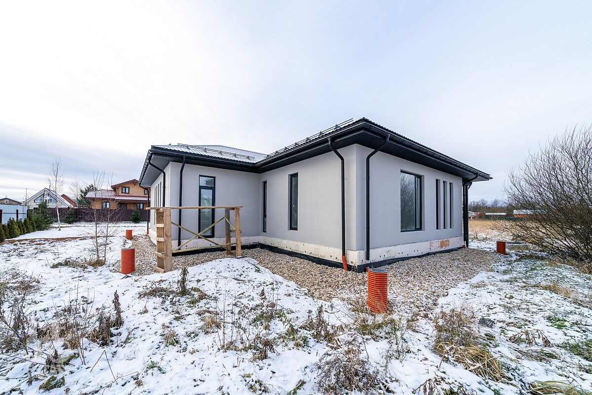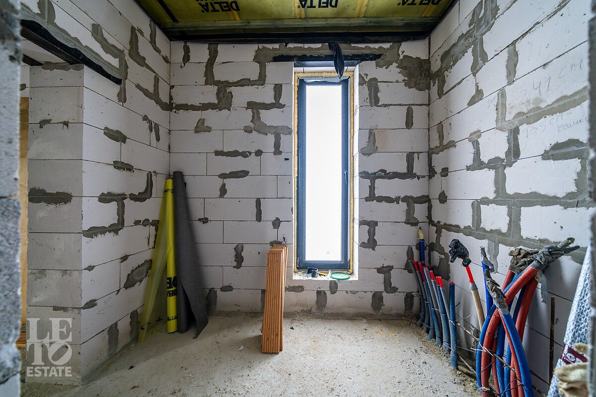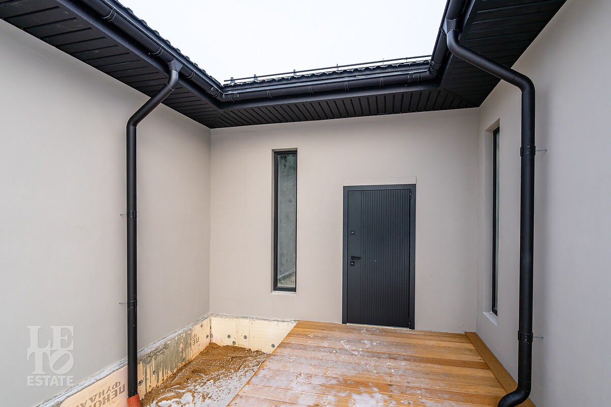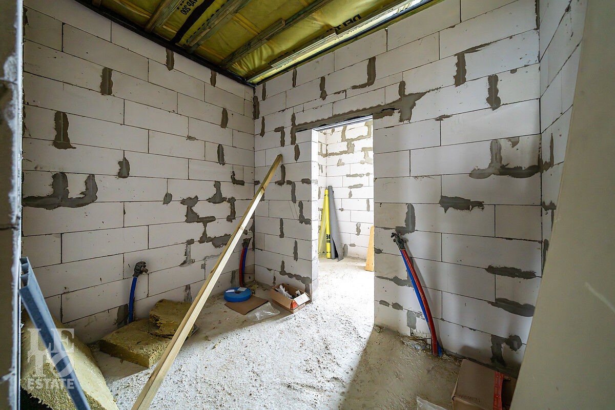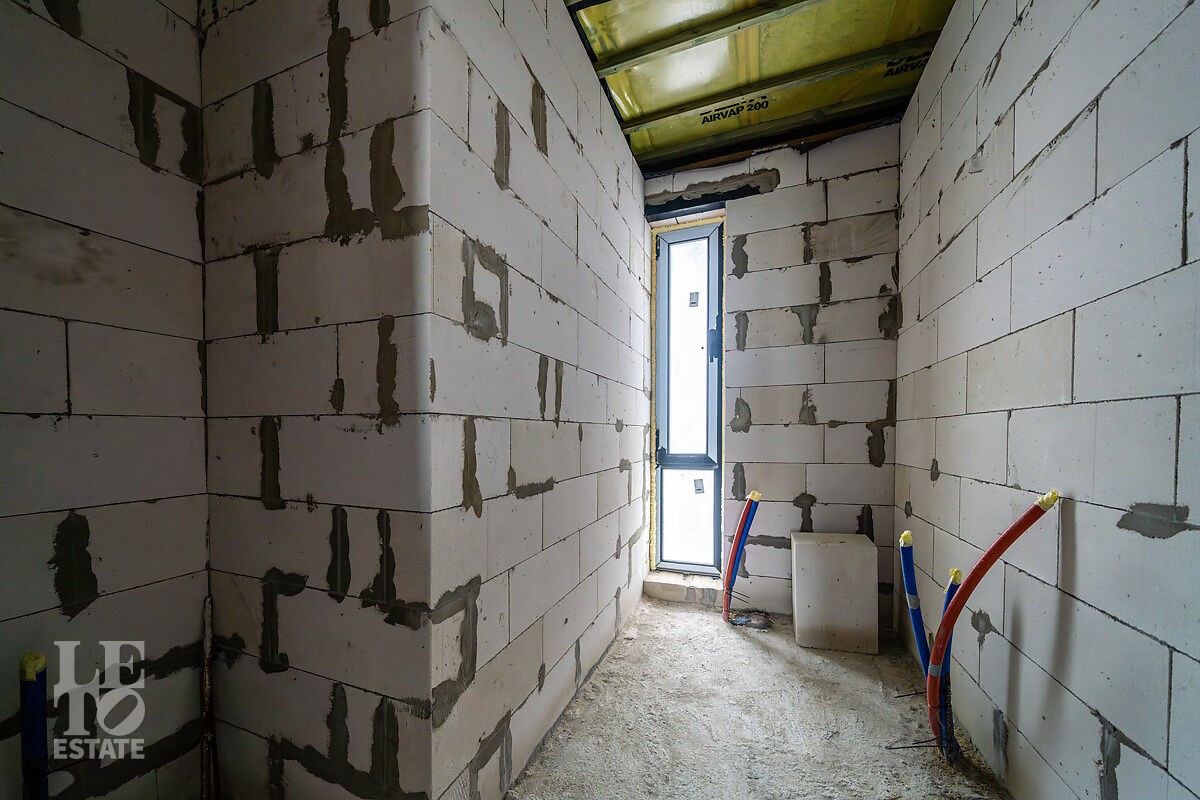 Новый дом построен из блоков с высокими потолками, толщина стен 40 см., матовая кровля фирмы Grand Line, профнастил для кровель 0,45 мм. Продумана планировка и расстановка мебели для комфортного проживания. Во всём доме заложен тёплый пол, грамотно разделённый на секции, также сделаны дополнительные выводы для батарей в каждой комнате. Дом с тёплым гаражом, установлены автоматические ворота с дистанционным управлением. По периметру сделан дренаж. Все центральные коммуникации: газоснабжение, электричество, водопровод и канализация проходят по границе участка.