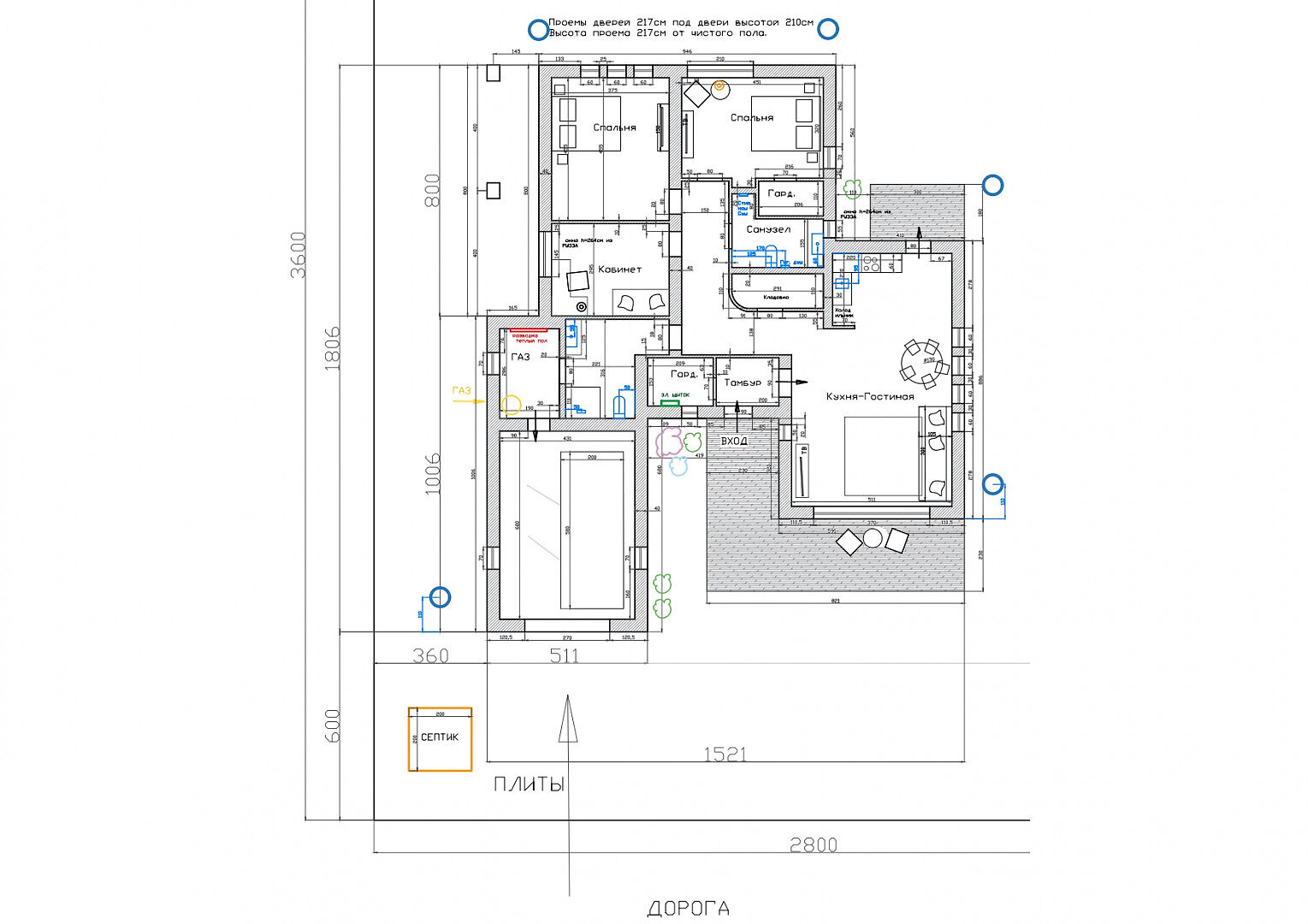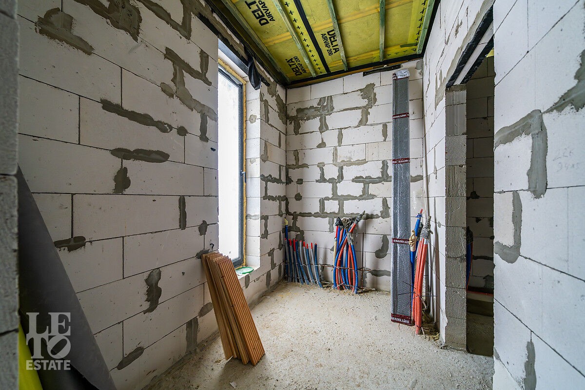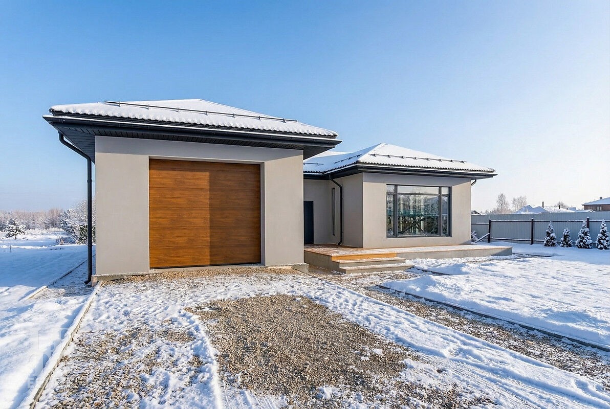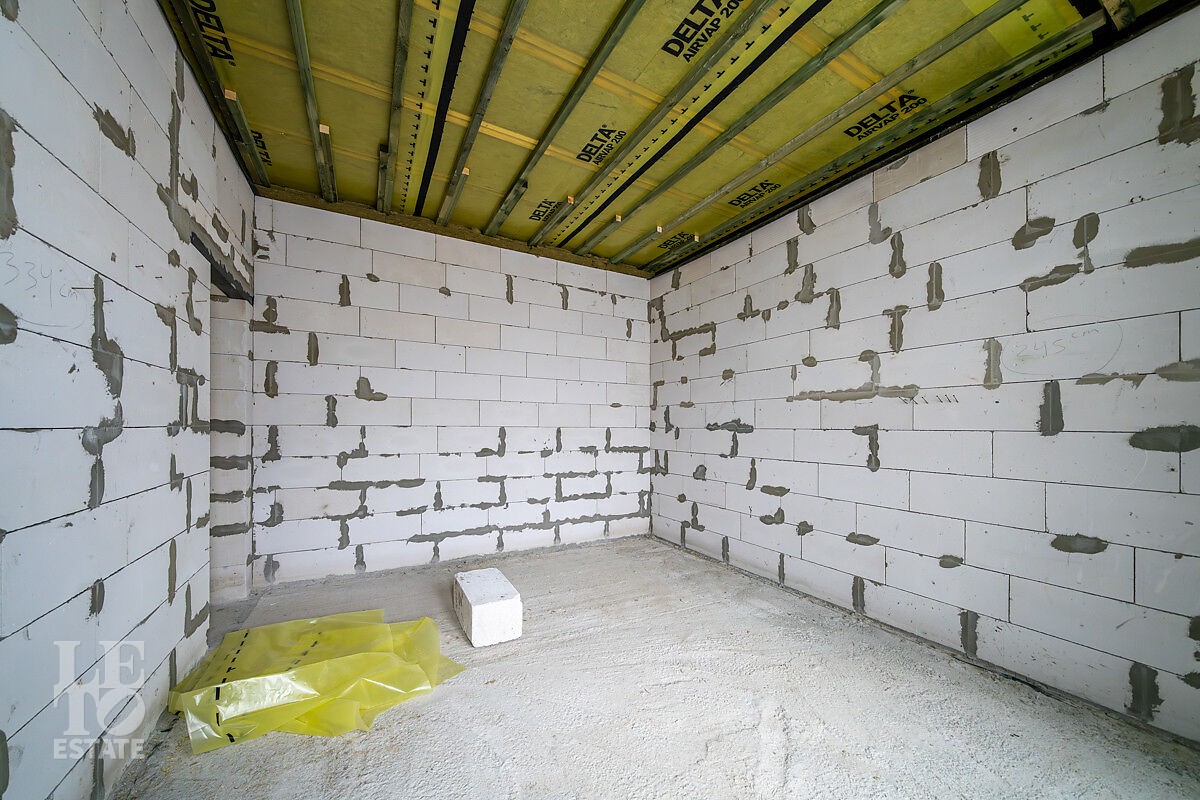 Новый дом построен из блоков с высокими потолками, толщина стен 40 см., матовая кровля фирмы Grand Line, профнастил для кровель 0,45 мм. Продумана планировка и расстановка мебели для комфортного проживания. Во всём доме заложен тёплый пол, грамотно разделённый на секции, также сделаны дополнительные выводы для батарей в каждой комнате. Дом с тёплым гаражом, установлены автоматические ворота с дистанционным управлением. По периметру сделан дренаж. Все центральные коммуникации: газоснабжение, электричество, водопровод и канализация проходят по границе участка.