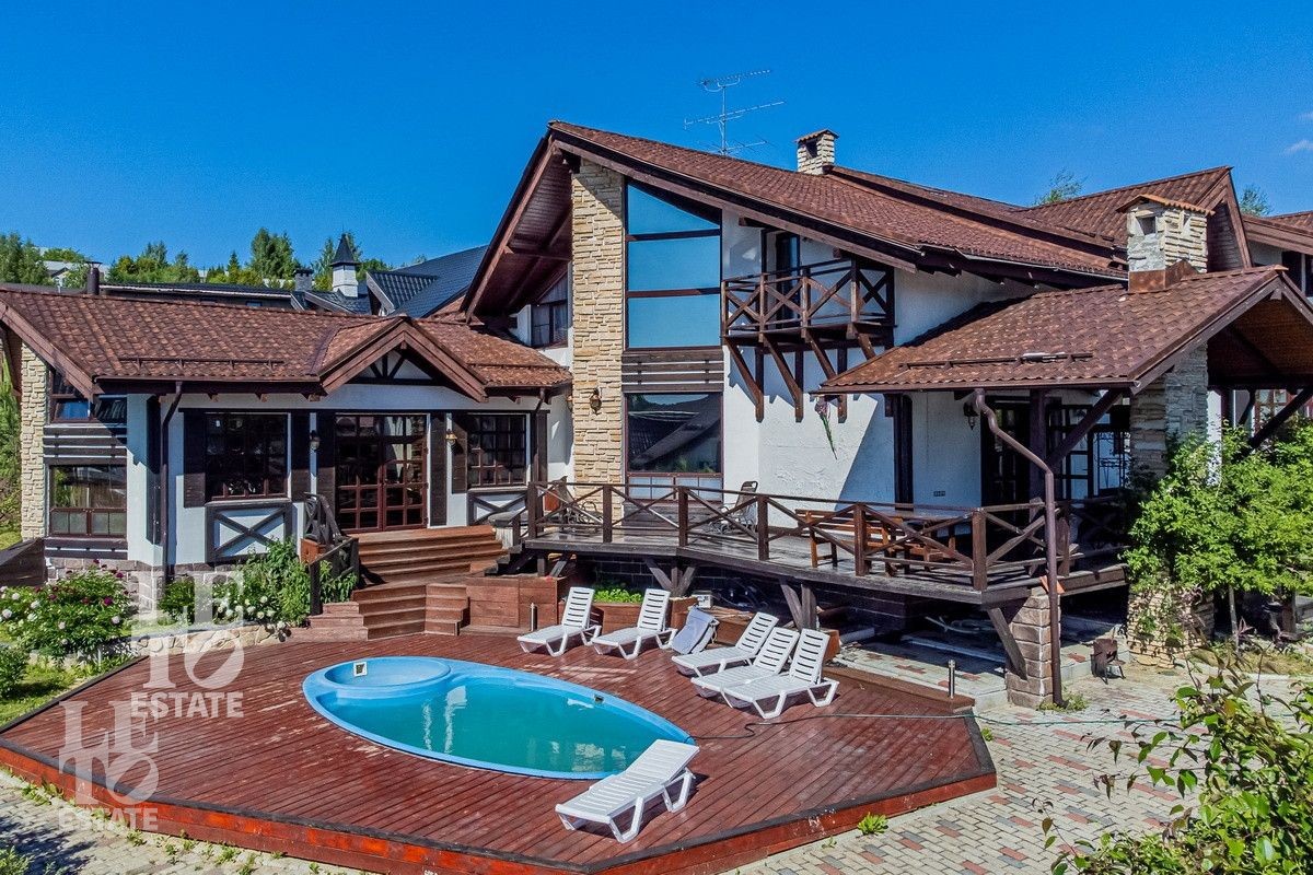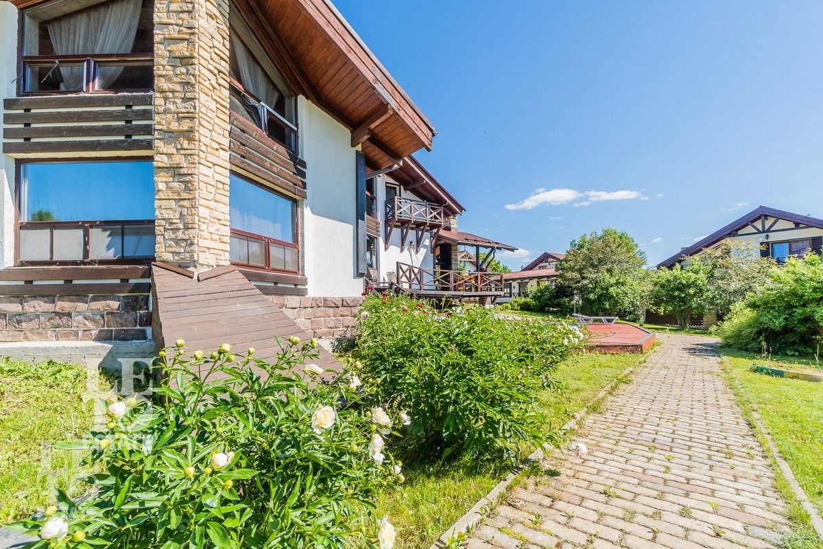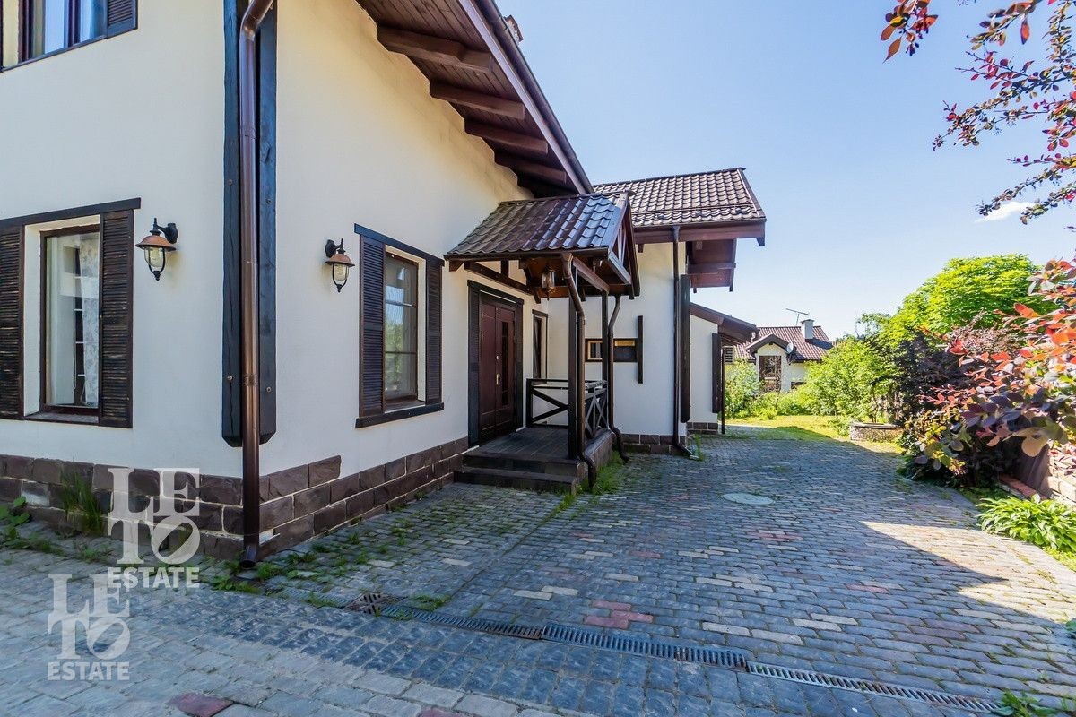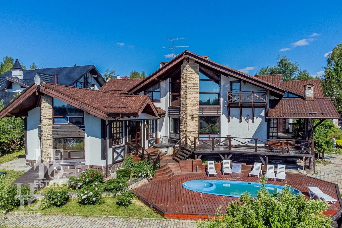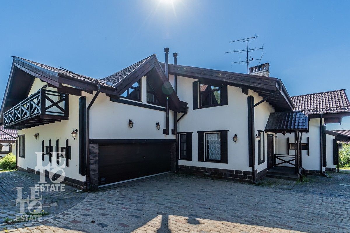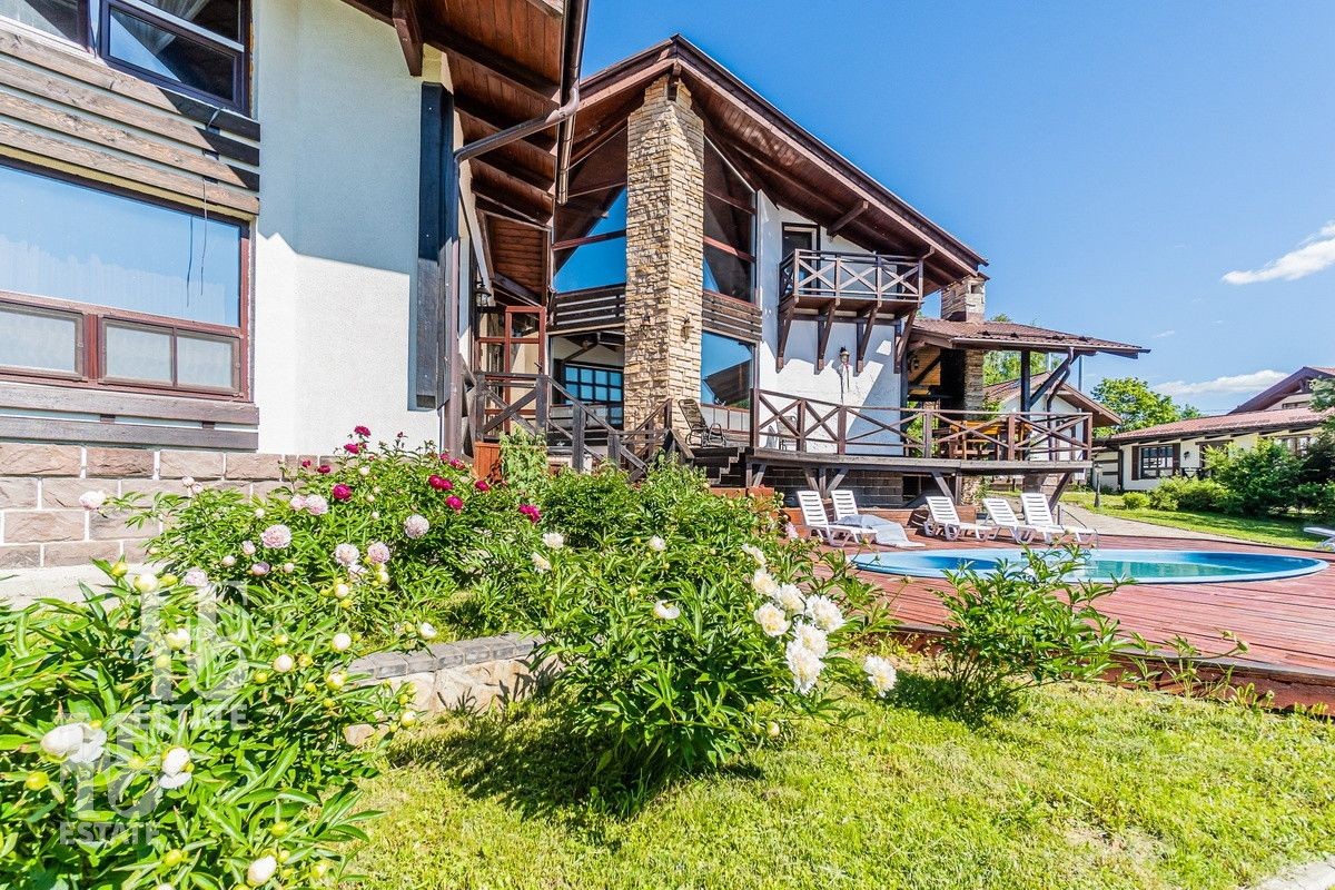 Вашему вниманию представляется современный полностью готовый дом в стиле шале общей площадью 550 м2. Расположен на благоустроенном участке 22 сотки. Помимо основного дома на участке расположены: баня площадью 100 м2, дом охраны площадью 80 м2, 2 хозяйственных блока для хранения техники, беседка с зоной BBQ, а также уличная джакузи. На участке выполнен ландшафтный дизайн, дренаж, автополив, установлено декоративное освещение, дорожки вымощены брусчаткой.