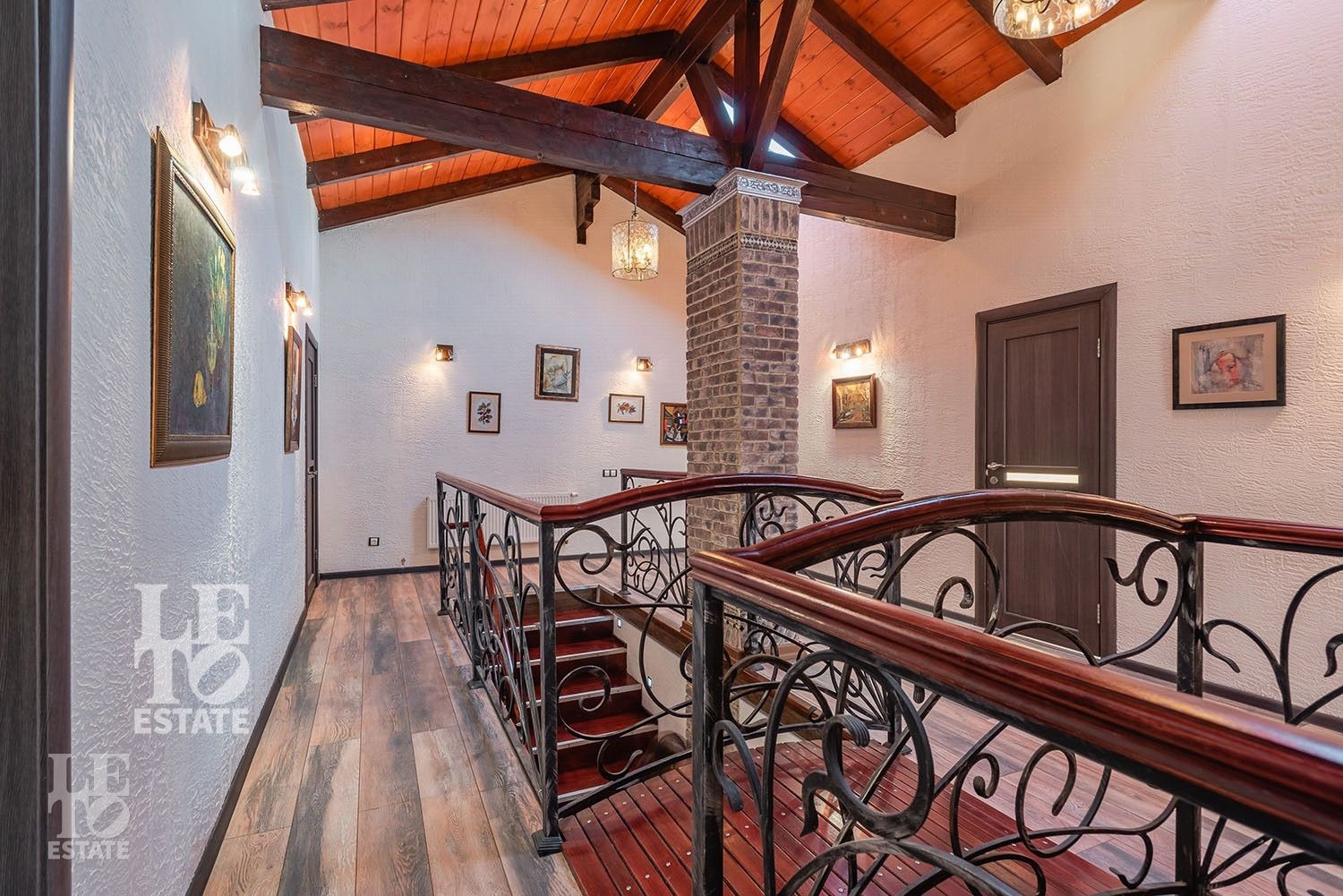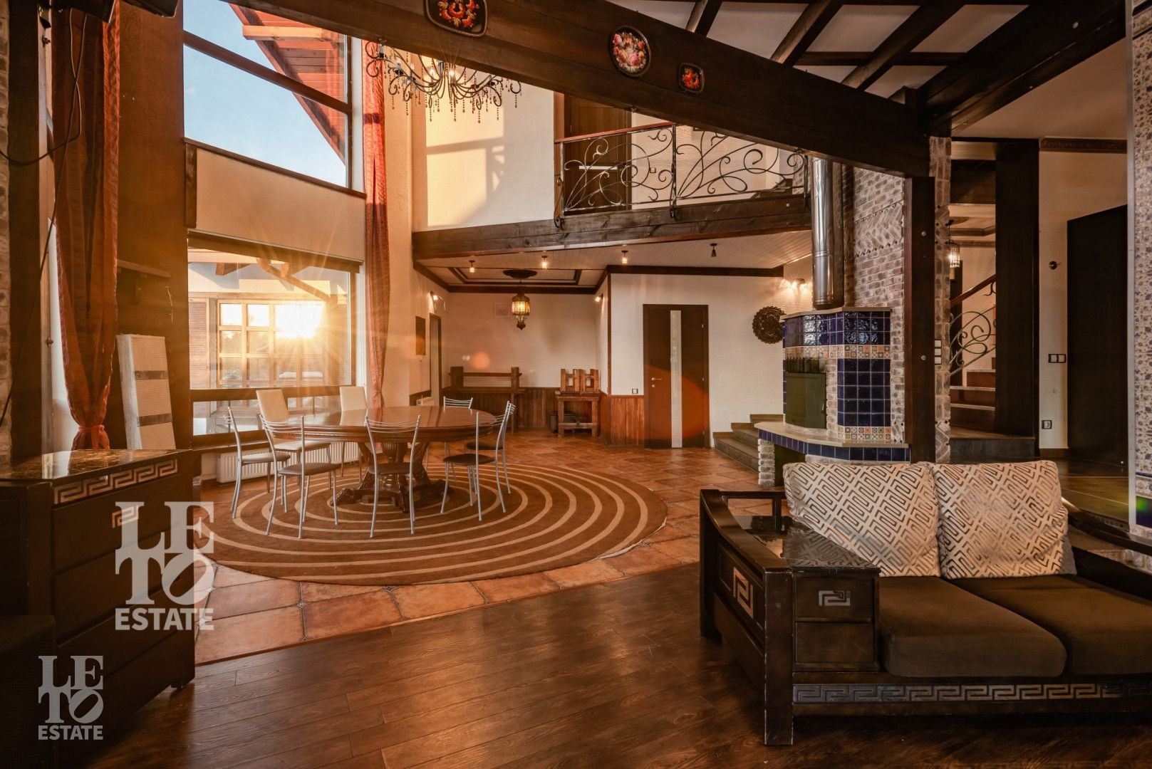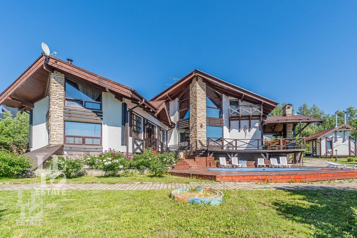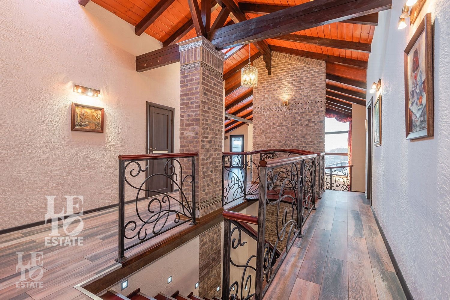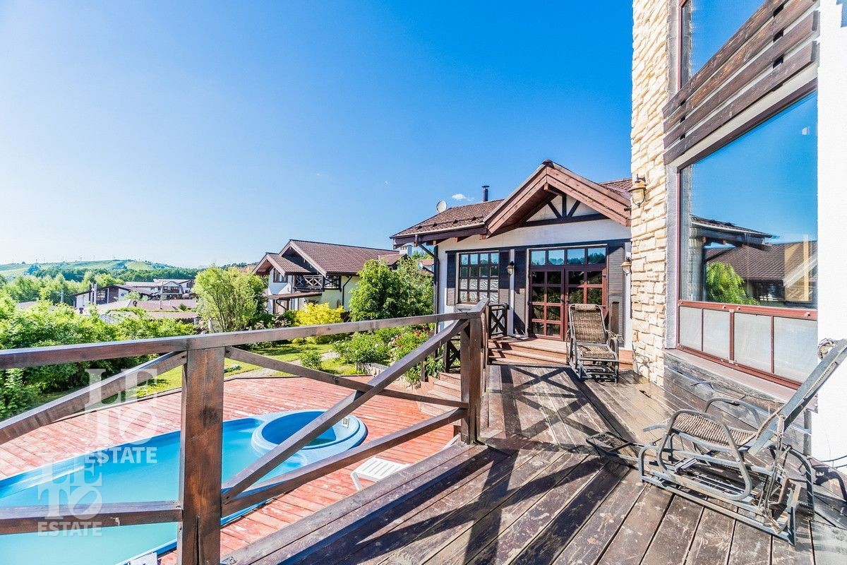 Вашему вниманию представляется современный полностью готовый дом в стиле шале общей площадью 550 м2. Расположен на благоустроенном участке 22 сотки. Помимо основного дома на участке расположены: баня площадью 100 м2, дом охраны площадью 80 м2, 2 хозяйственных блока для хранения техники, беседка с зоной BBQ, а также уличная джакузи. На участке выполнен ландшафтный дизайн, дренаж, автополив, установлено декоративное освещение, дорожки вымощены брусчаткой.