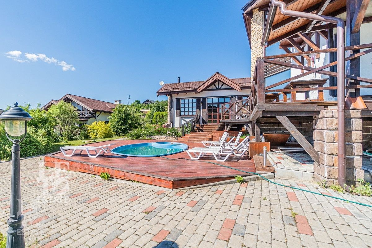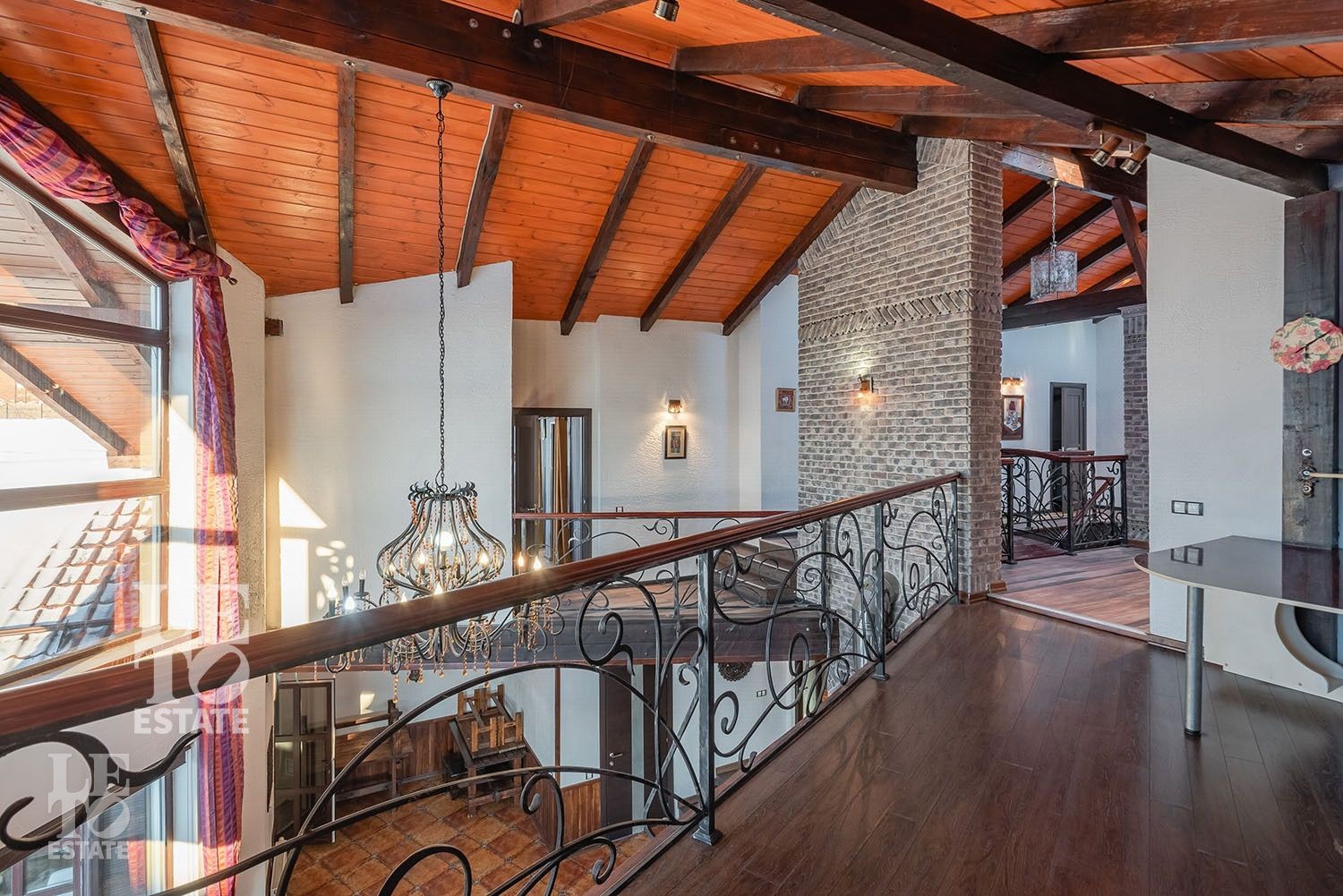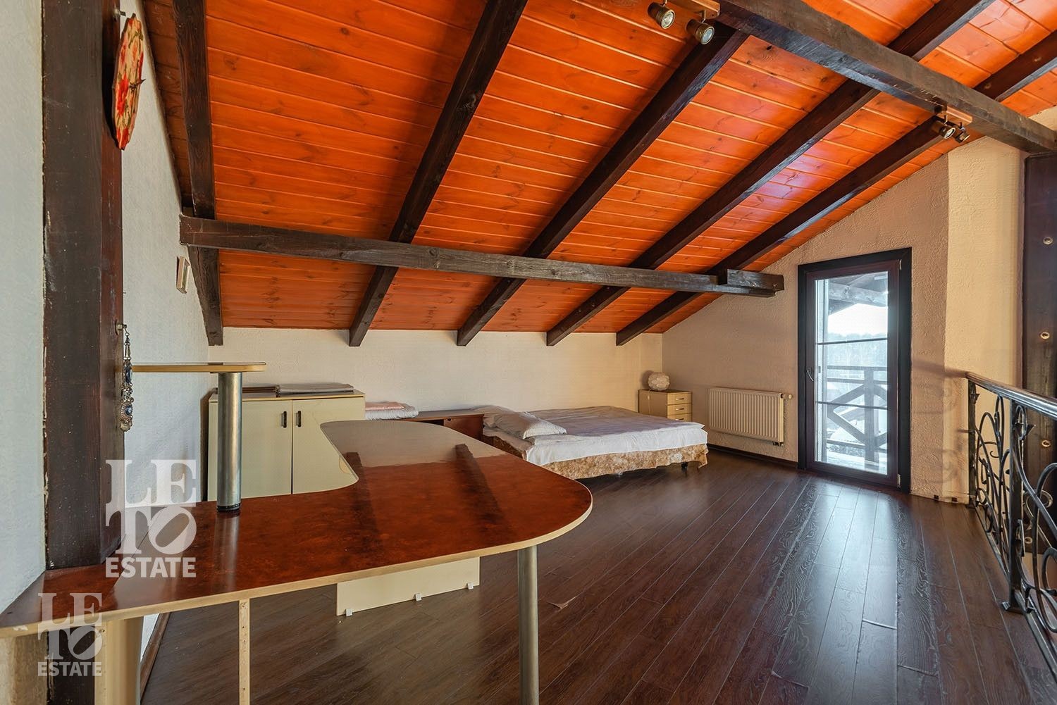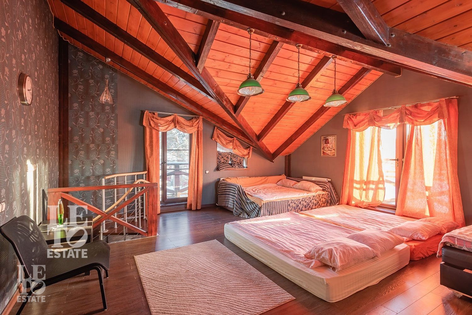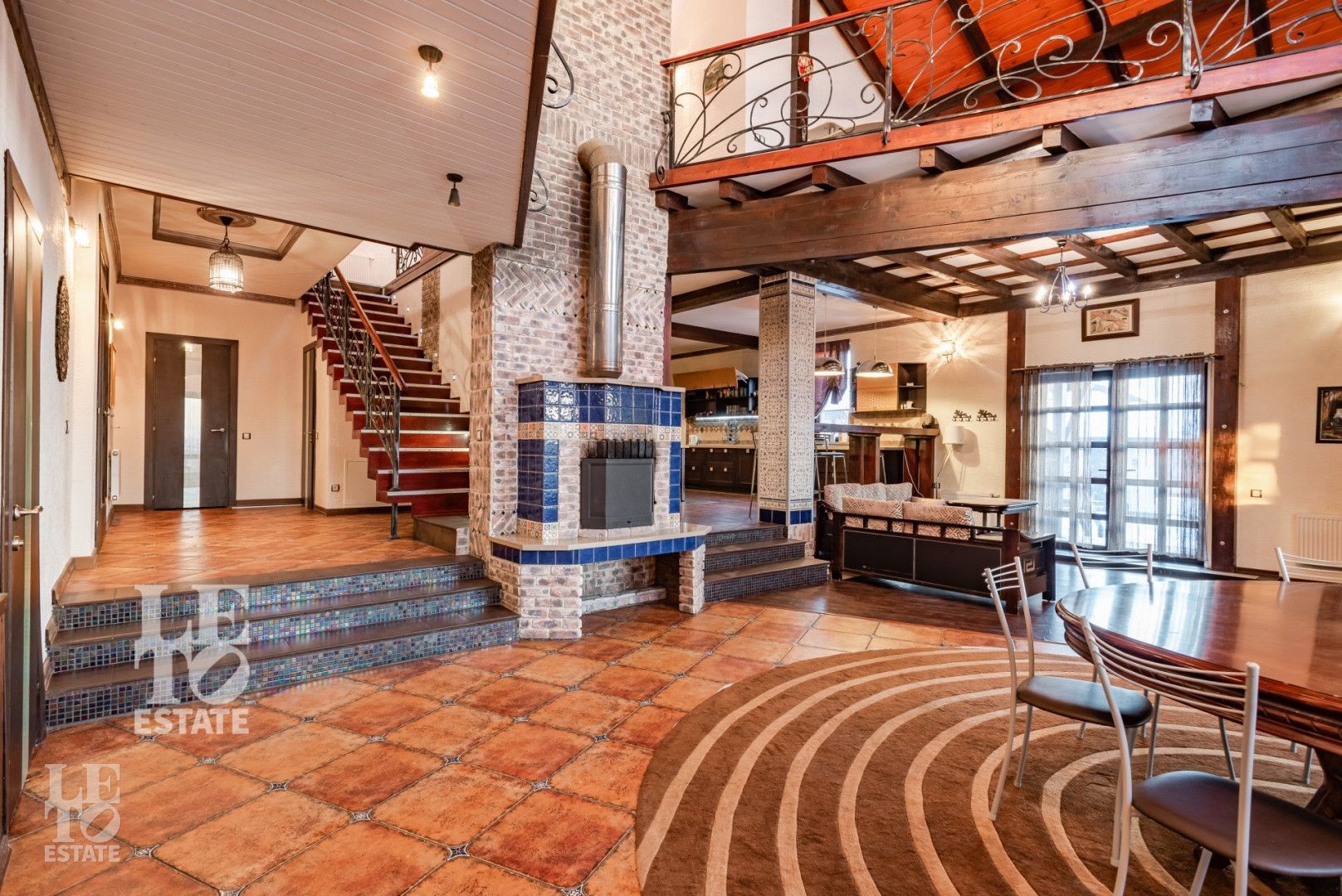 Вашему вниманию представляется современный полностью готовый дом в стиле шале общей площадью 550 м2. Расположен на благоустроенном участке 22 сотки. Помимо основного дома на участке расположены: баня площадью 100 м2, дом охраны площадью 80 м2, 2 хозяйственных блока для хранения техники, беседка с зоной BBQ, а также уличная джакузи. На участке выполнен ландшафтный дизайн, дренаж, автополив, установлено декоративное освещение, дорожки вымощены брусчаткой.