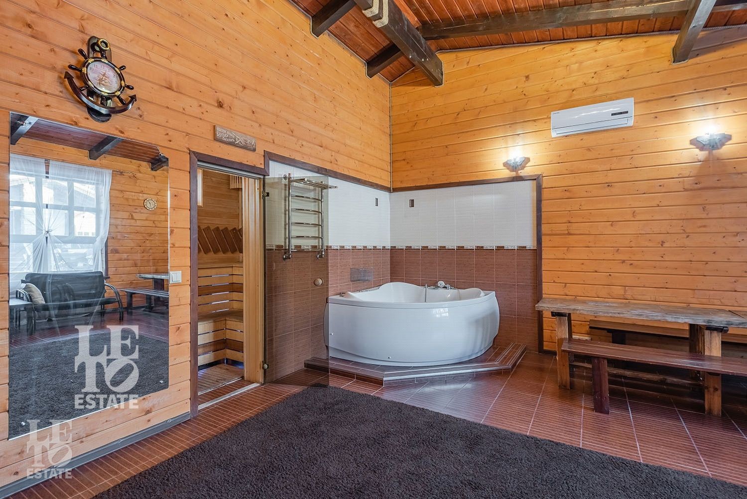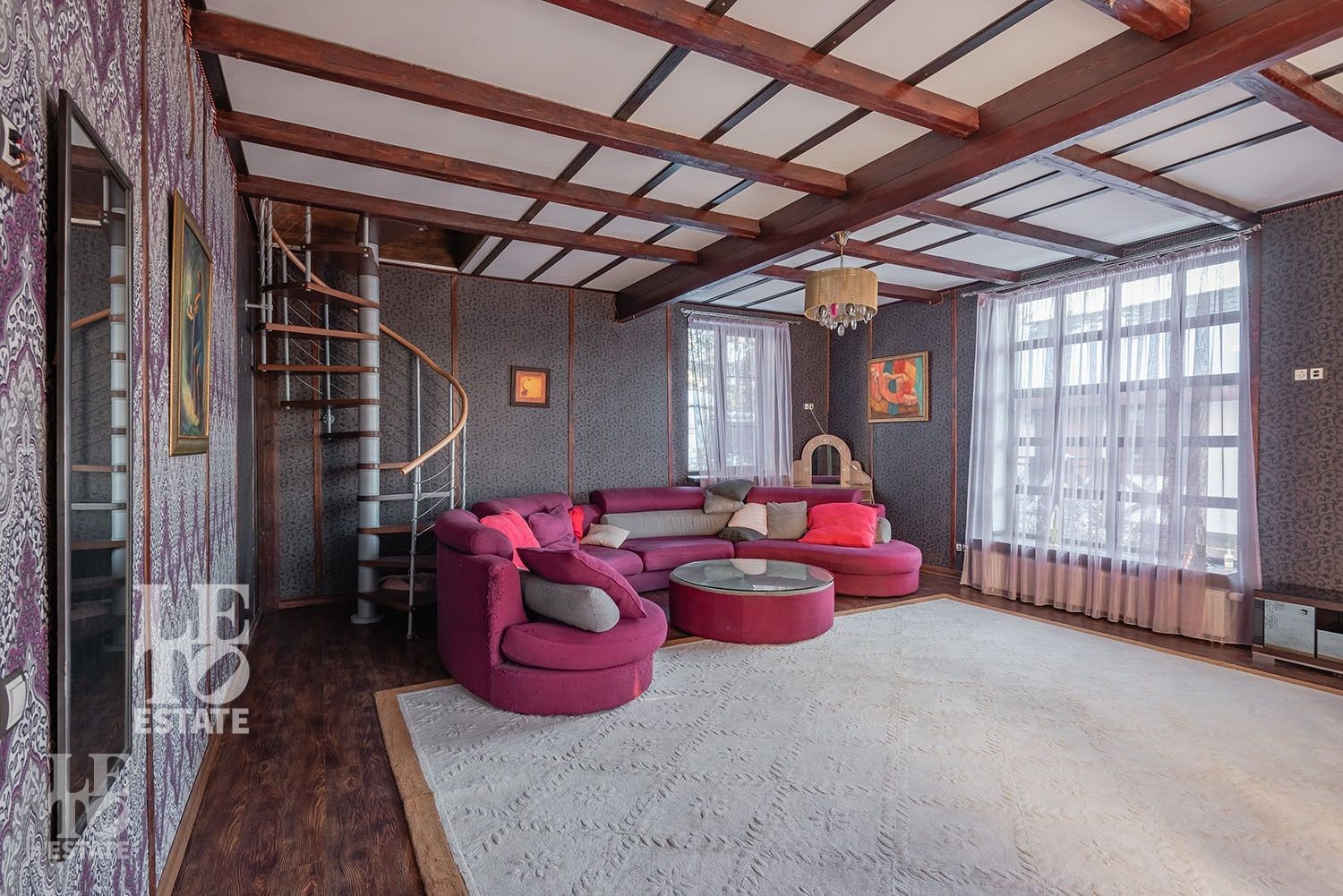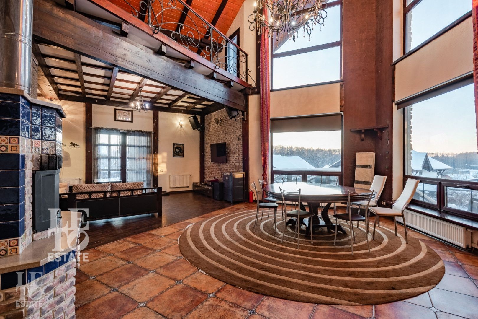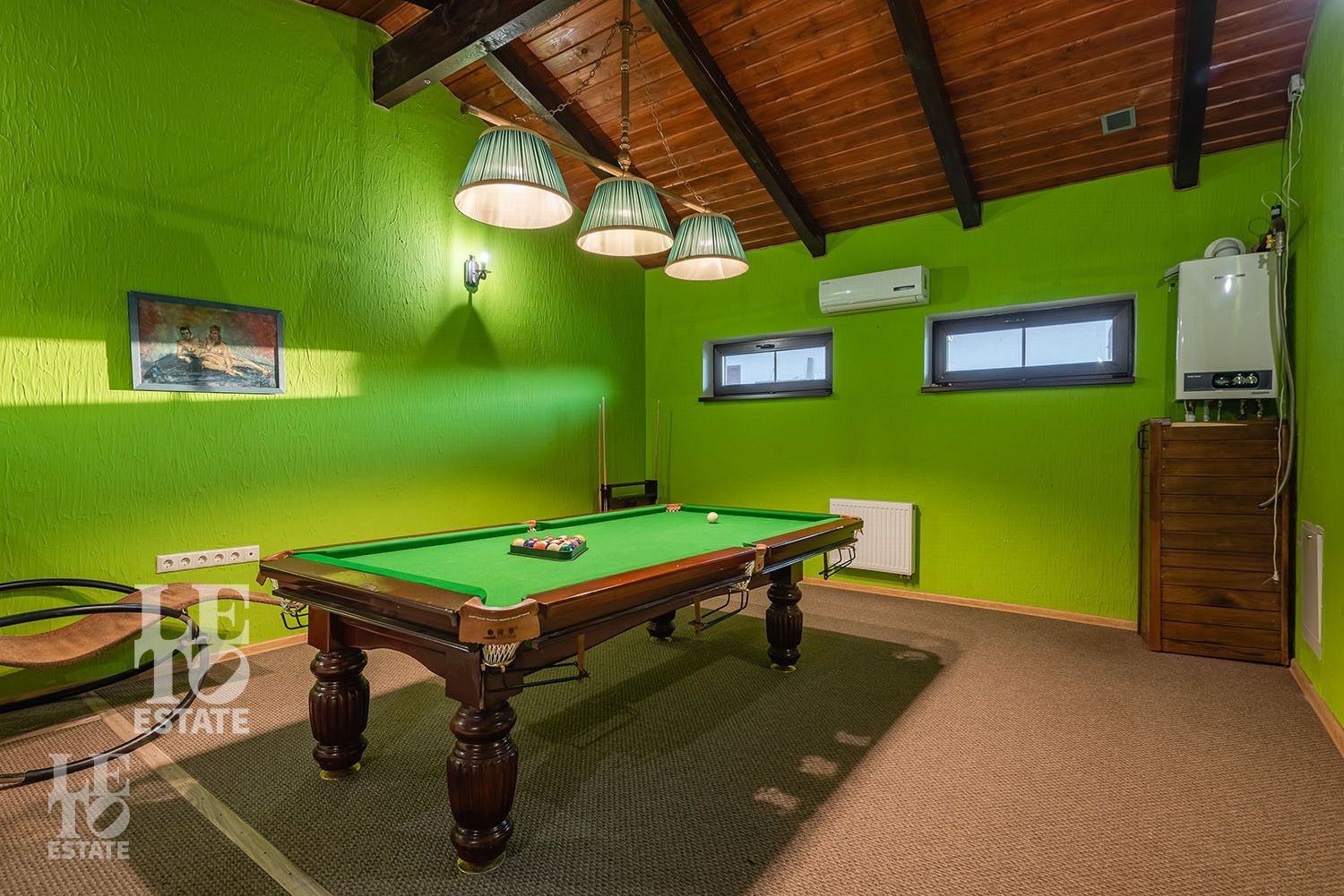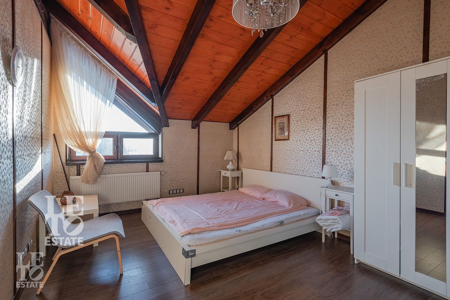 Вашему вниманию представляется современный полностью готовый дом в стиле шале общей площадью 550 м2. Расположен на благоустроенном участке 22 сотки. Помимо основного дома на участке расположены: баня площадью 100 м2, дом охраны площадью 80 м2, 2 хозяйственных блока для хранения техники, беседка с зоной BBQ, а также уличная джакузи. На участке выполнен ландшафтный дизайн, дренаж, автополив, установлено декоративное освещение, дорожки вымощены брусчаткой.