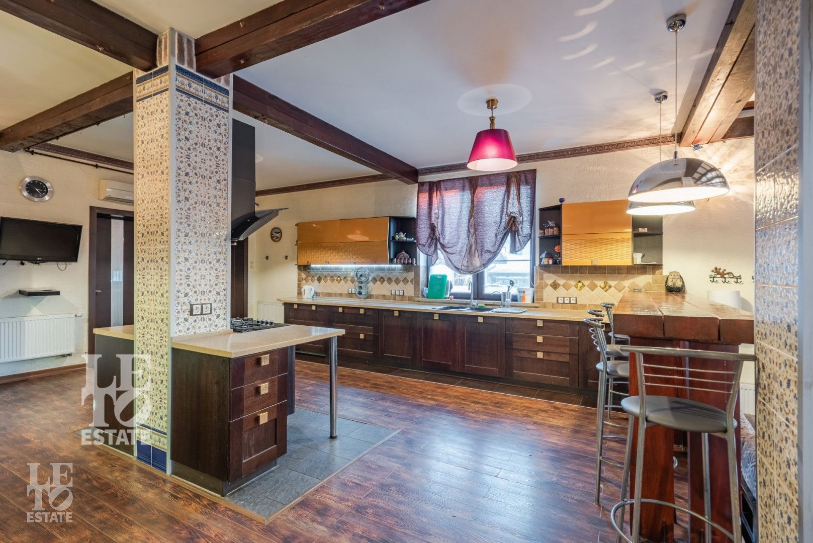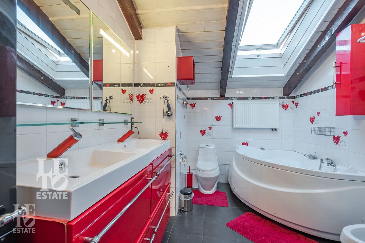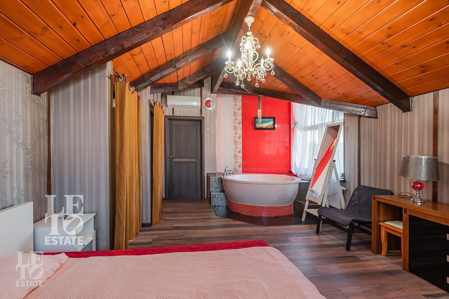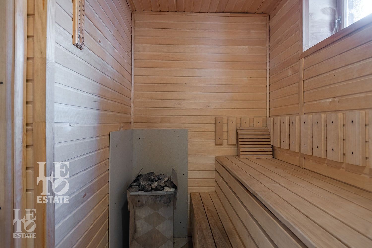 Вашему вниманию представляется современный полностью готовый дом в стиле шале общей площадью 550 м2. Расположен на благоустроенном участке 22 сотки. Помимо основного дома на участке расположены: баня площадью 100 м2, дом охраны площадью 80 м2, 2 хозяйственных блока для хранения техники, беседка с зоной BBQ, а также уличная джакузи. На участке выполнен ландшафтный дизайн, дренаж, автополив, установлено декоративное освещение, дорожки вымощены брусчаткой.