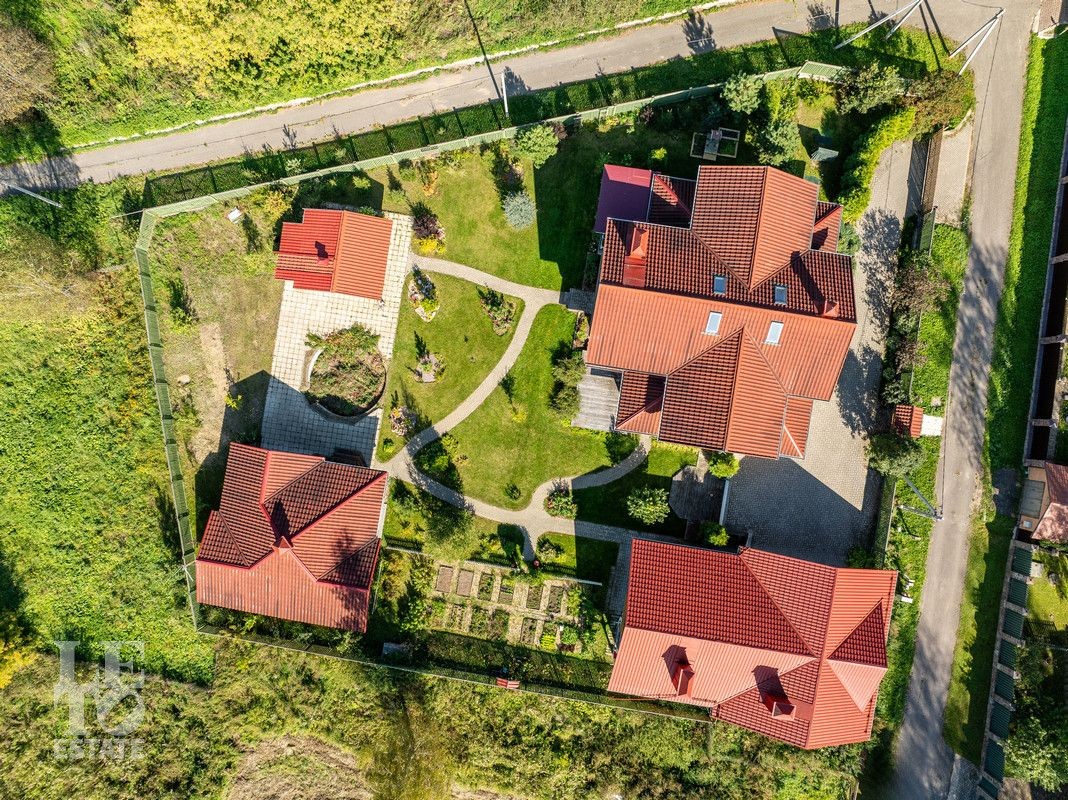 Основной дом: Цоколь: кладовая. Первый этаж: прихожая, санузел, гардеробная , гостевая комната, гостиная, кухня- столовая с террасой, санузел . Второй этаж: мастер-спальня с санузлом , 4 спальни, санузел.