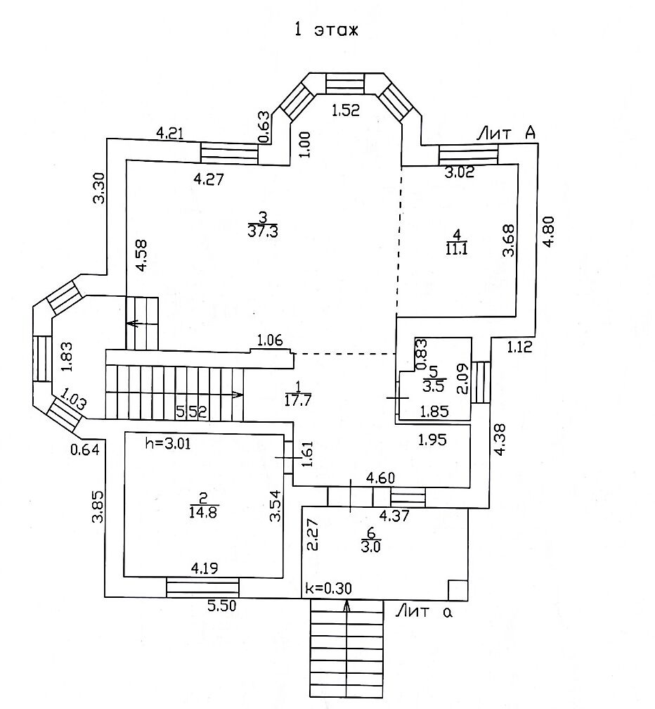 Цокольный этаж : котельная и 5 свободных помещений с выходом на участок;